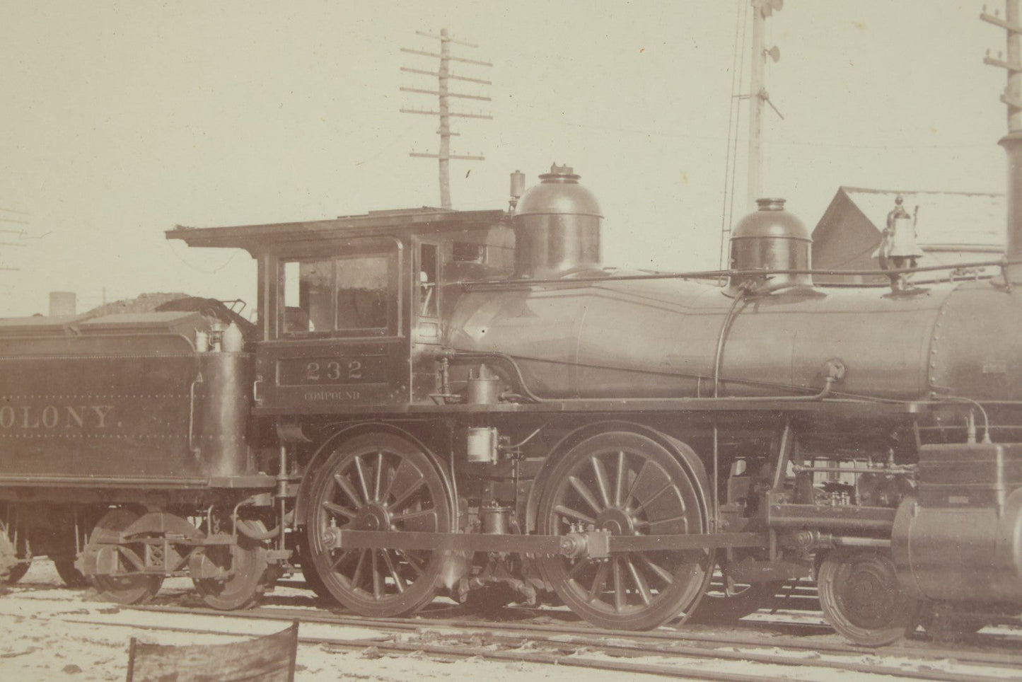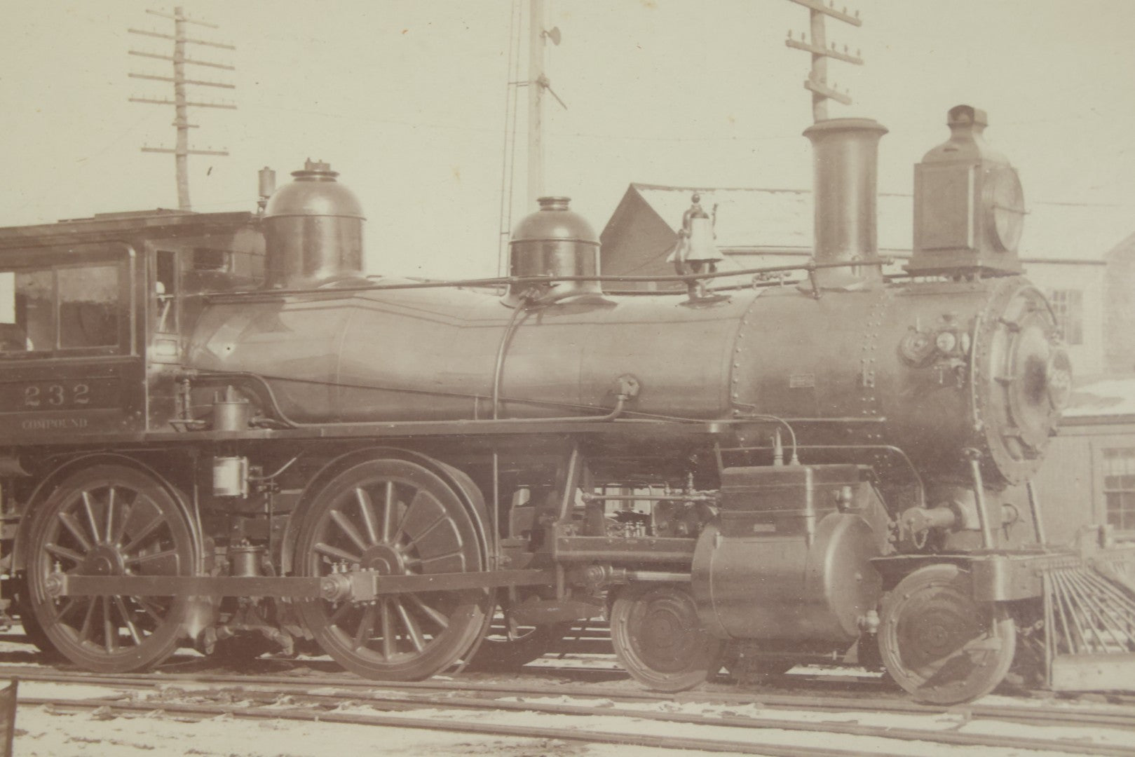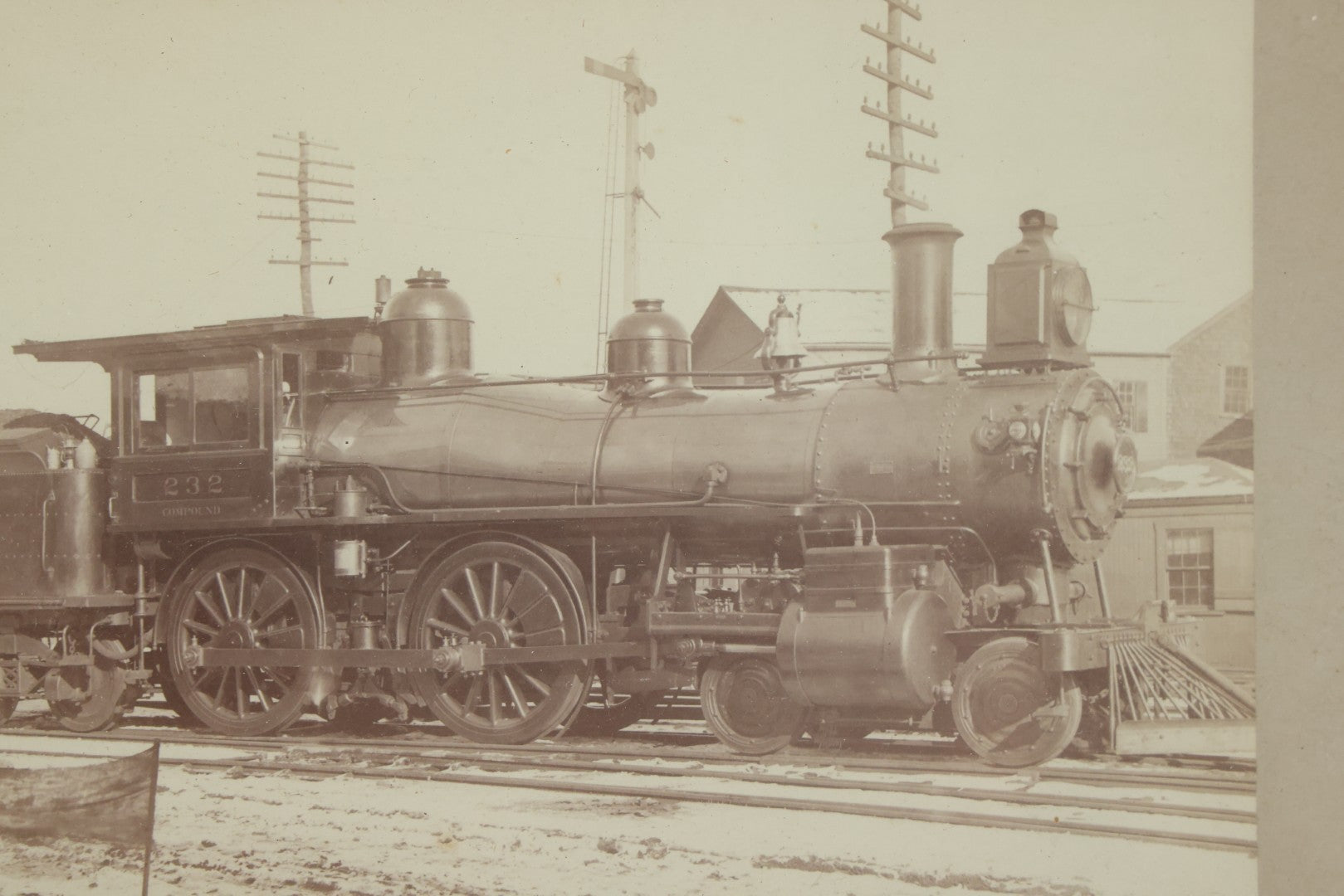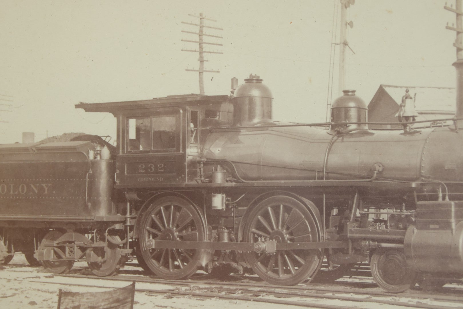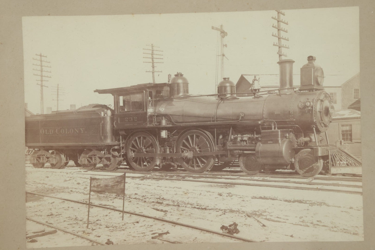 Lot 053 - Antique Boarded Photograph Of Locomotive No. 232, Old Colony Railroad, In Frame, 15-1/4" x 13-1/8"