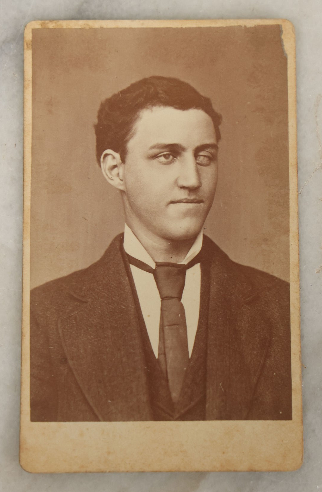 Your absentee bid for Lot 049 - Antique Carte De Visite C.D.V. Photograph Of A Man With An Unknown Eye Disease, W.H. Wilson, Photographer, Batavia, New York, Identified Bigelow On Verso was successfully submitted—thank you for bidding with us!