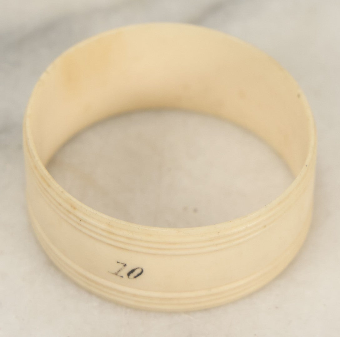 Lot 051 - Antique Carved Bone Scrimshaw Napkin Ring, Numbered "10", Decorative Tableware