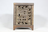This little still bank is in the shape of a safe with ornate adornments throughout. It is marked, "Pat. June 2, 1896" and has a great patina to the cast iron.The bank has a small door that opens to access the money inside. The door is unlocked, but no key is included.