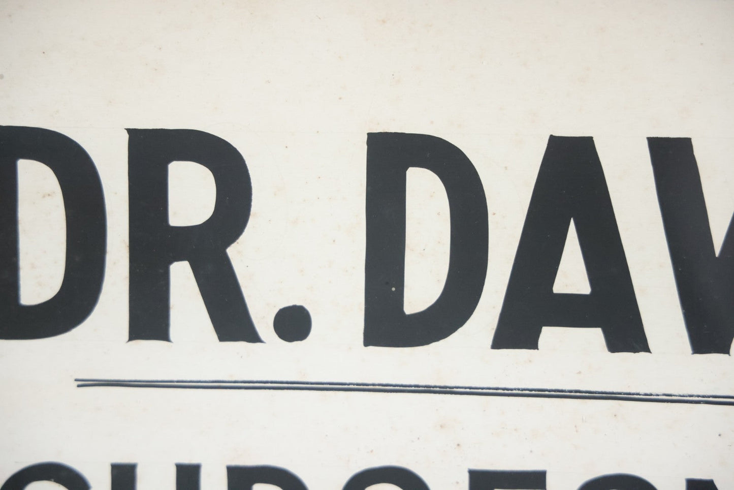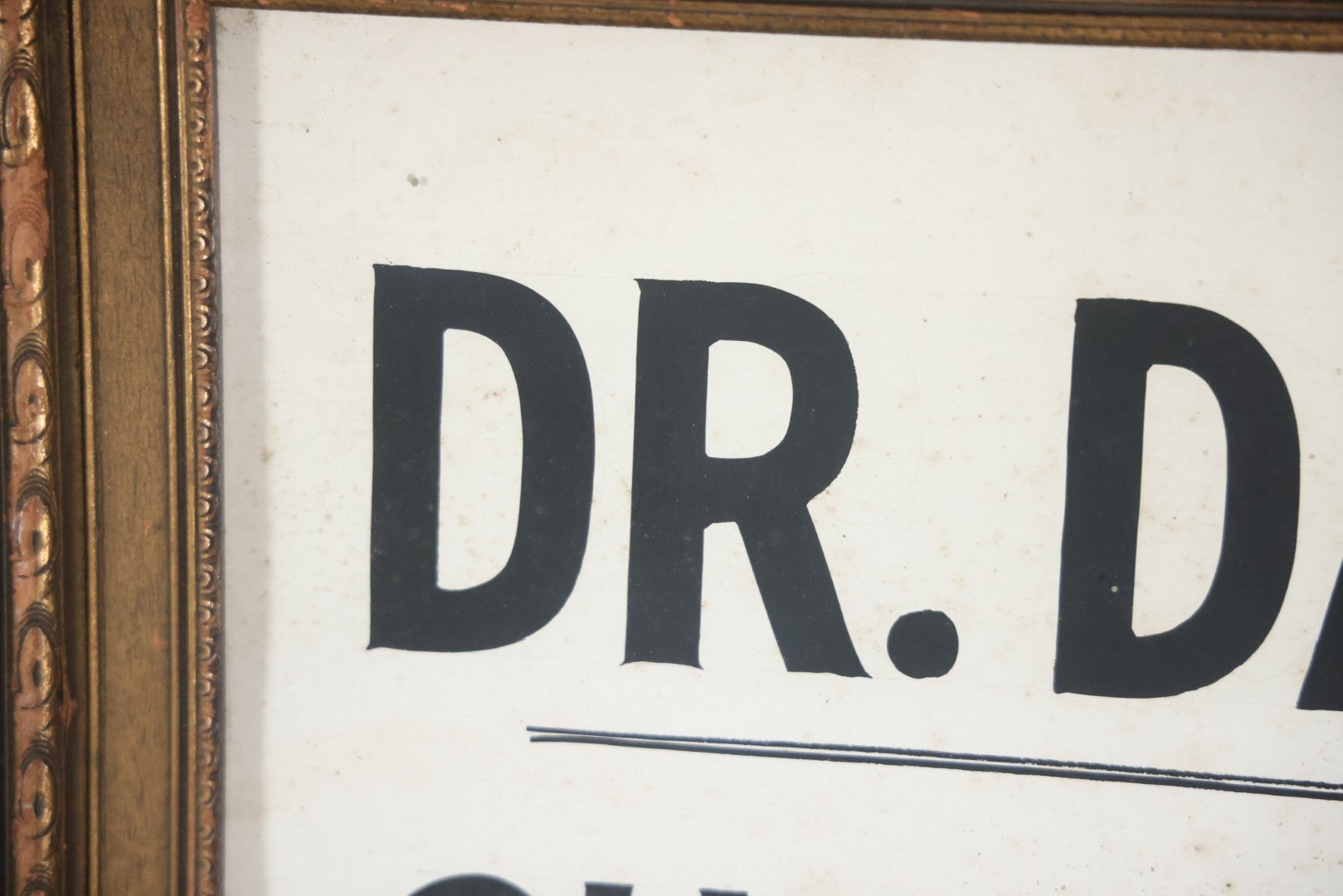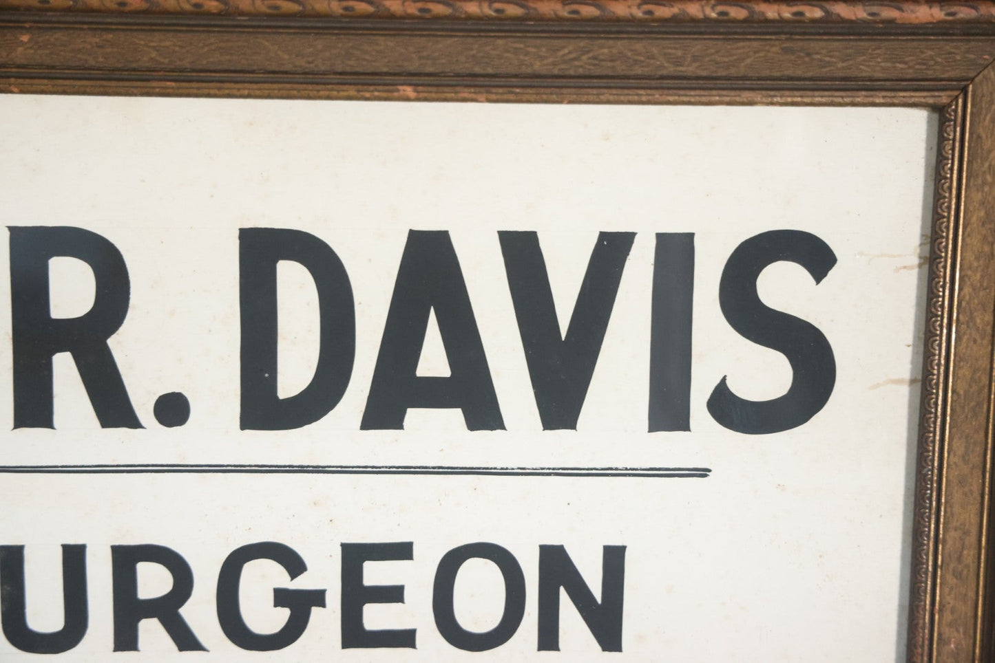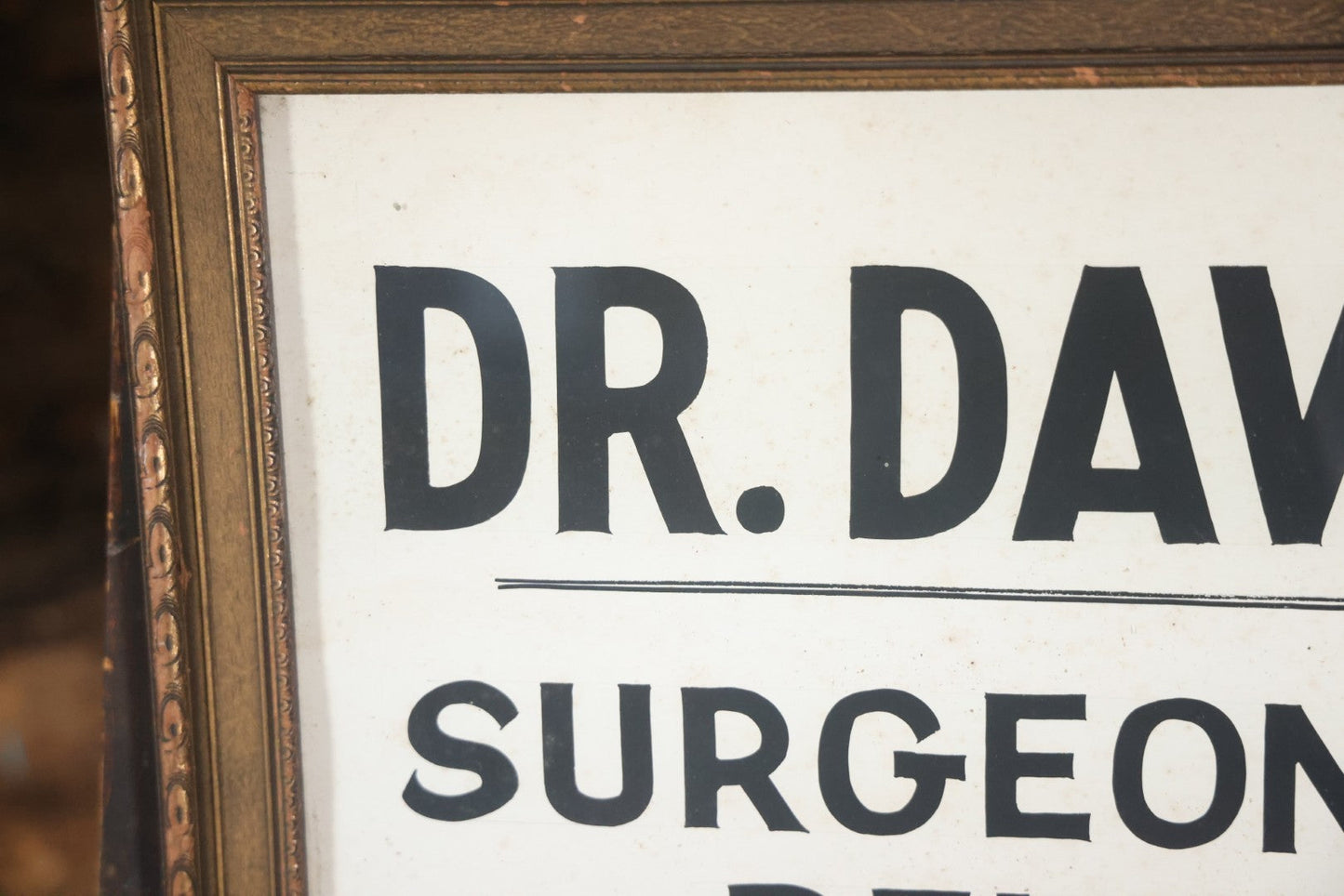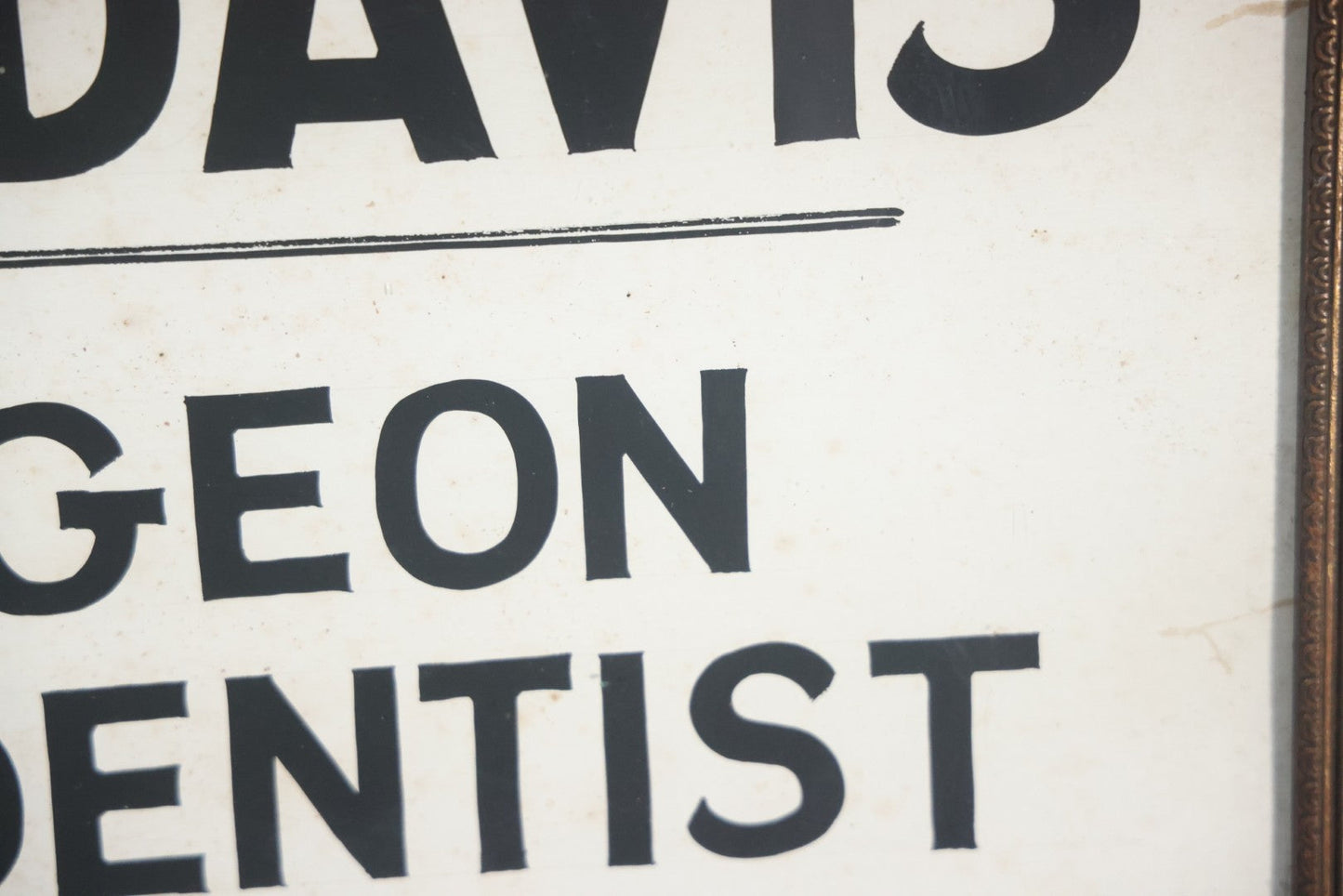 Antique Dr. Davis Surgeon Dentist Hand Painted Sign On Paper, In Frame, 18-1/2" x 14-1/2"