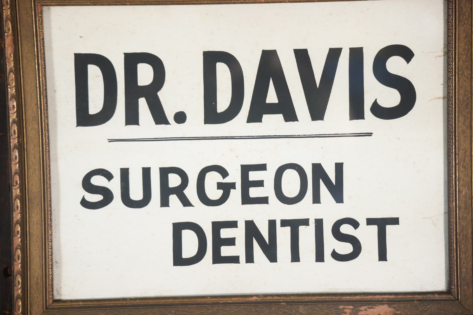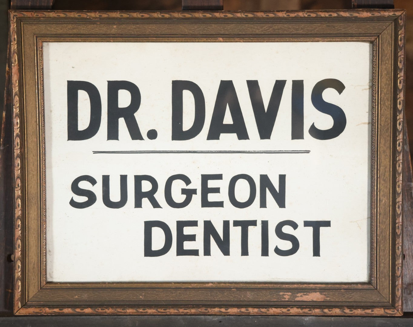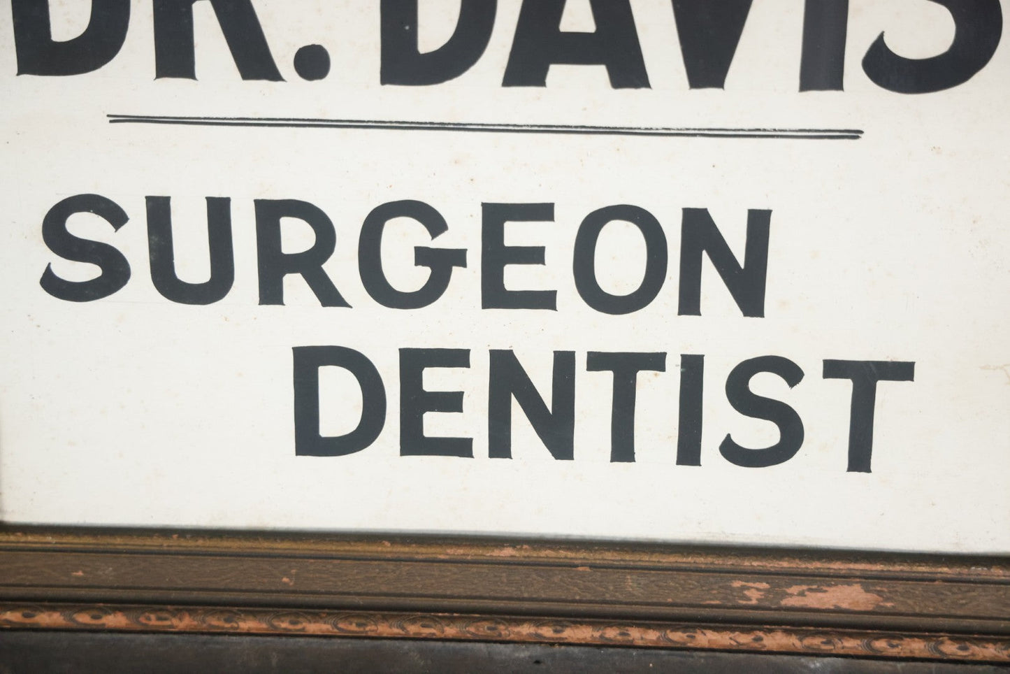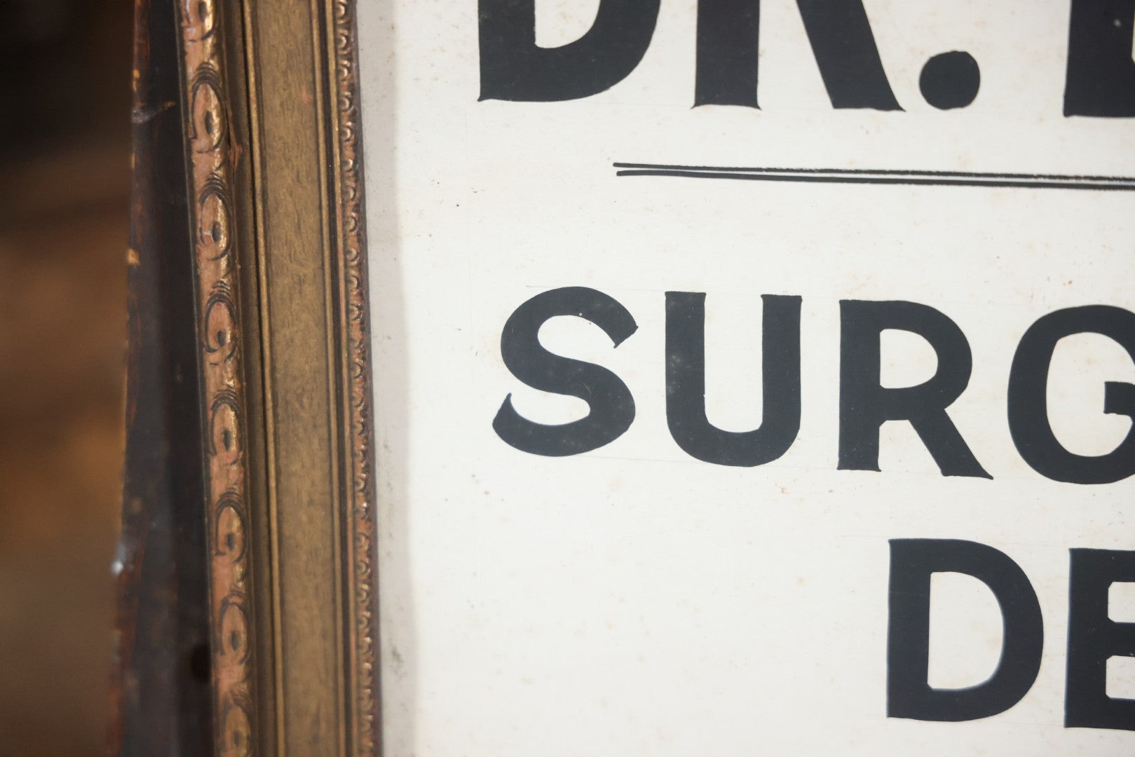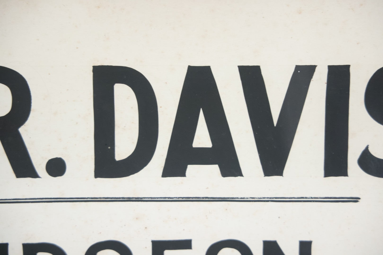 Antique Dr. Davis Surgeon Dentist Hand Painted Sign On Paper, In Frame, 18-1/2" x 14-1/2"