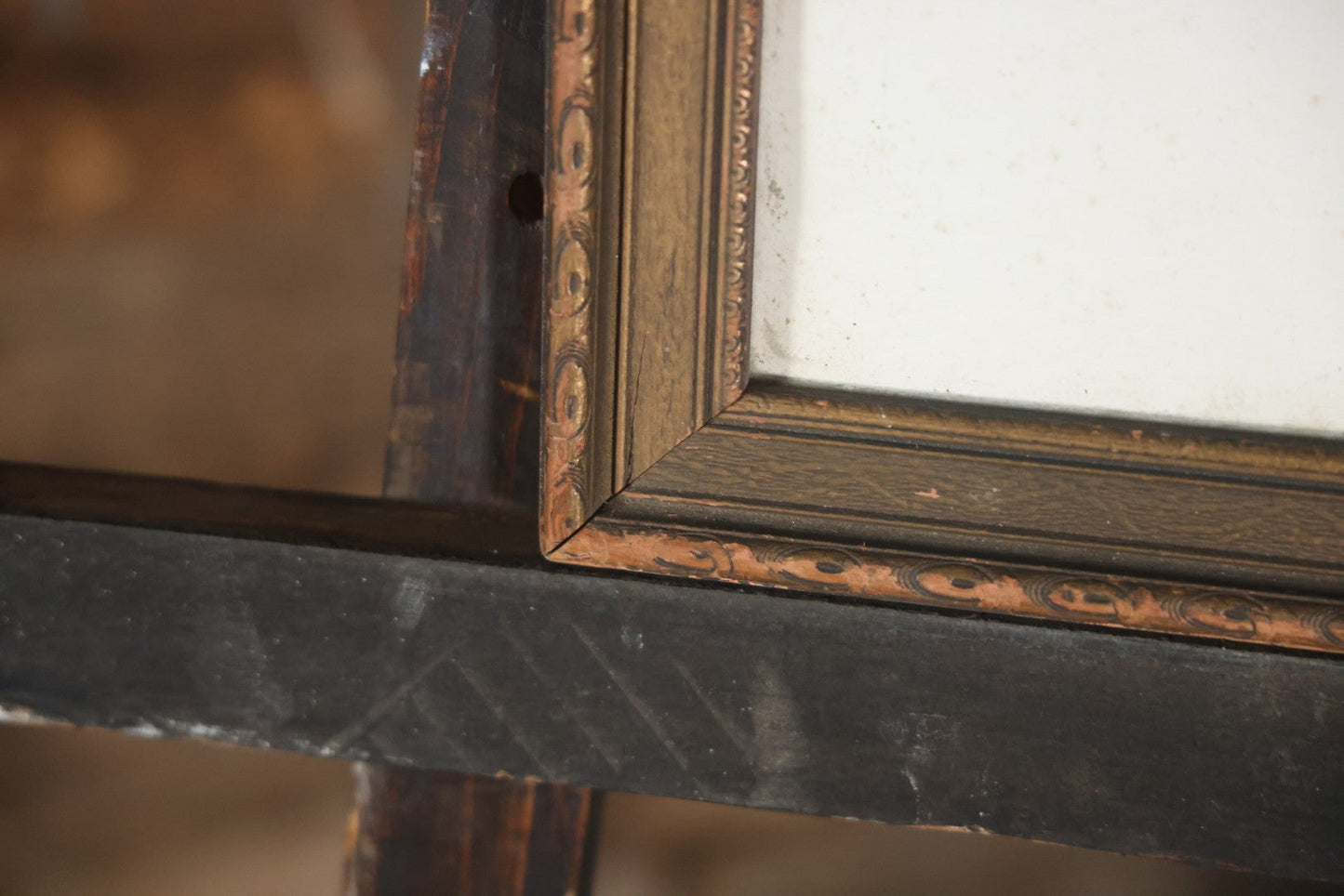 As found in frame. Nails added to frame for support. Wire hanger added in house.