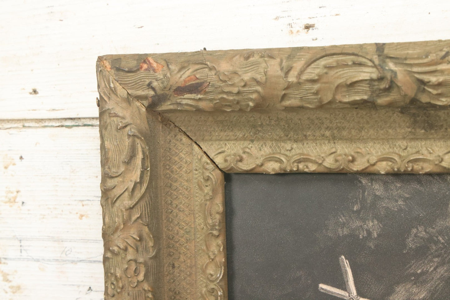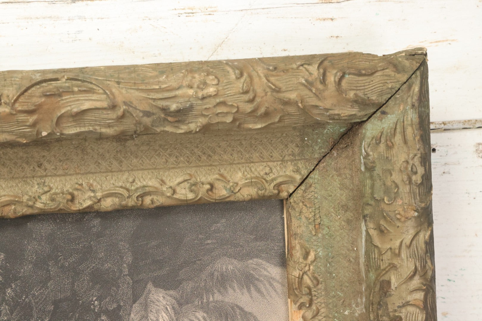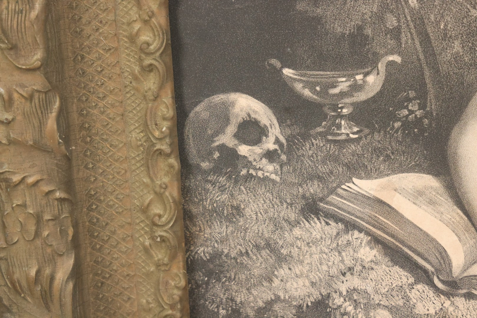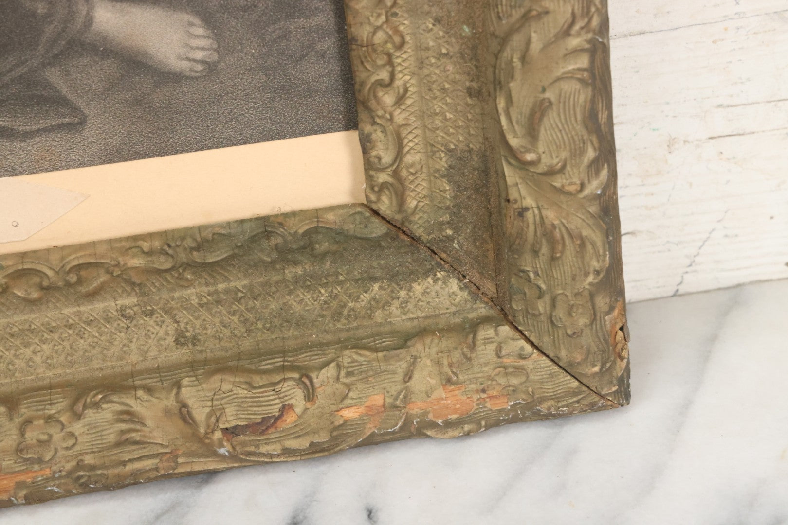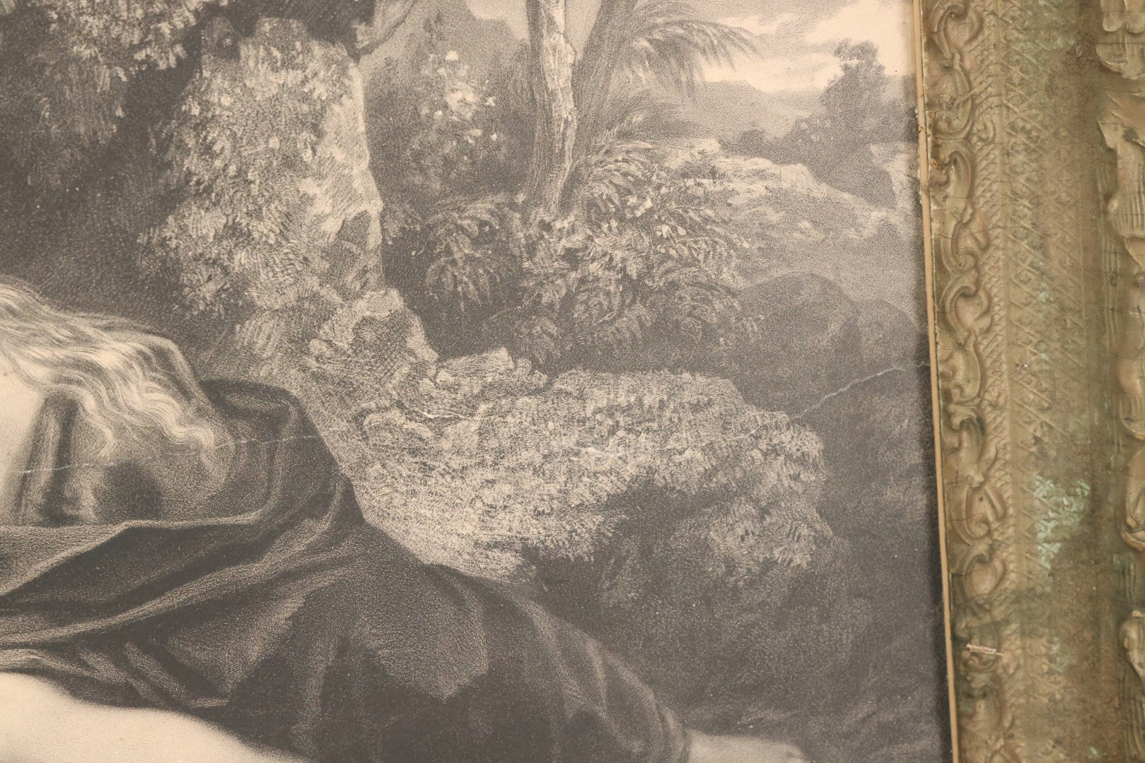 Lot 002 - Antique Engraving Print Of "Magdalena Die Büsserin" (Magdalena, The Penitent), Featuring A Nude Mary Magdalene In Contemplation Beside A Skull, In Ornate Frame, 26" x 22"