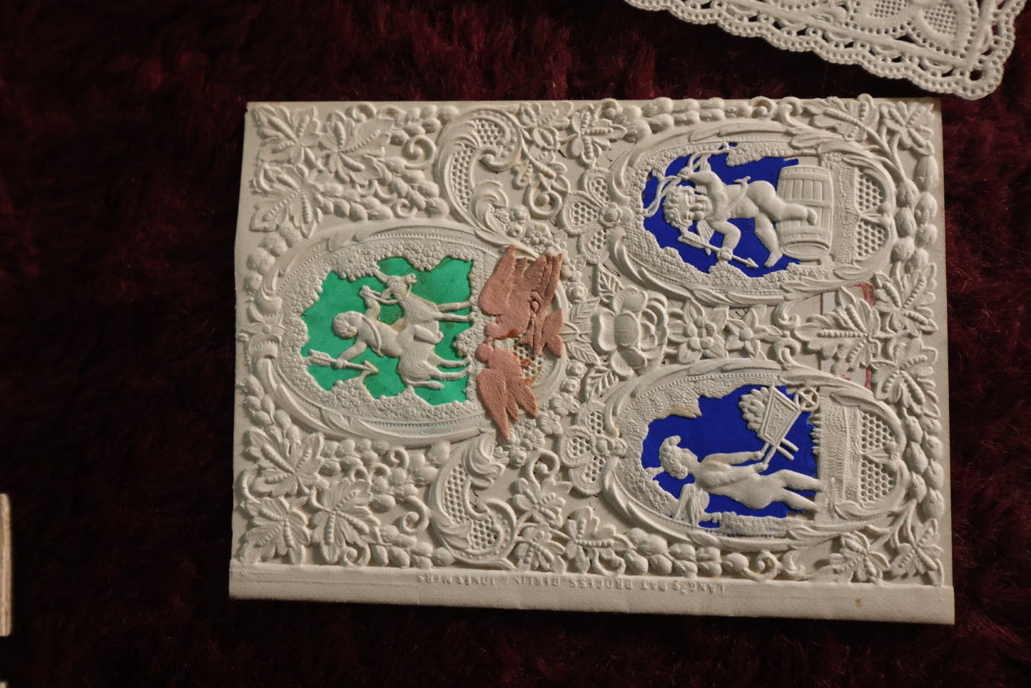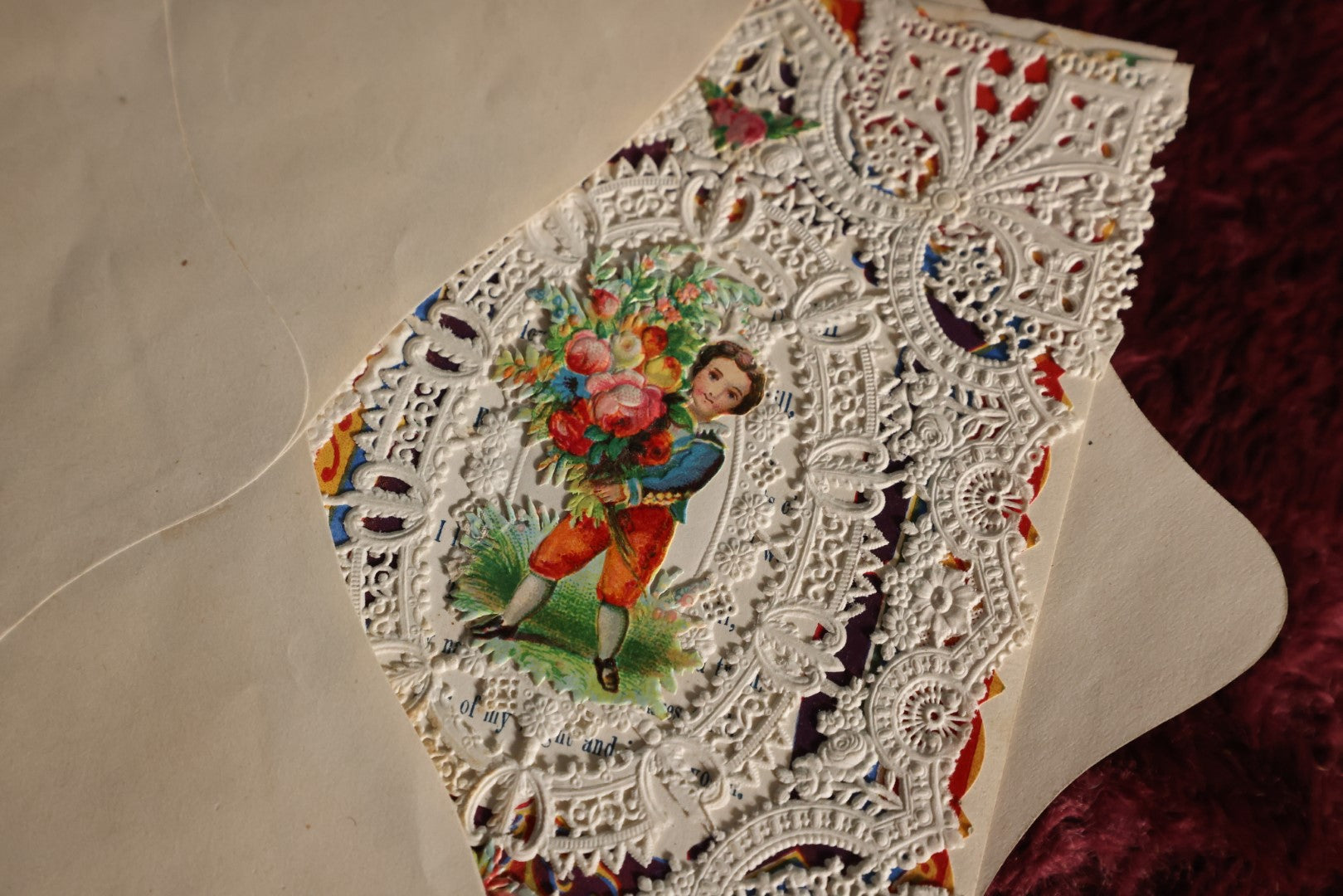 Lot 081 - Antique Ephemera Lot With Many Lace Paper Pieces, Envelopes, Cards, Paper Dolls, And More, Approximately 15 Pieces