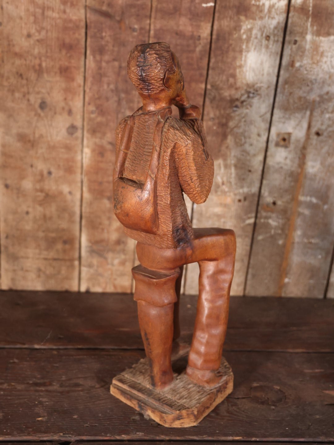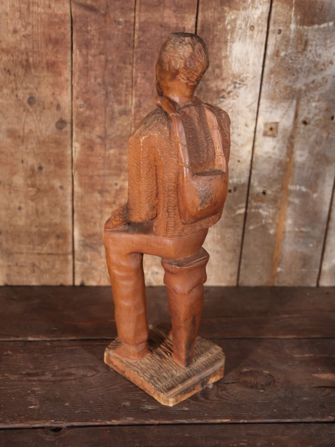 Antique Folk Art Carving Of Thinking Man, Seated