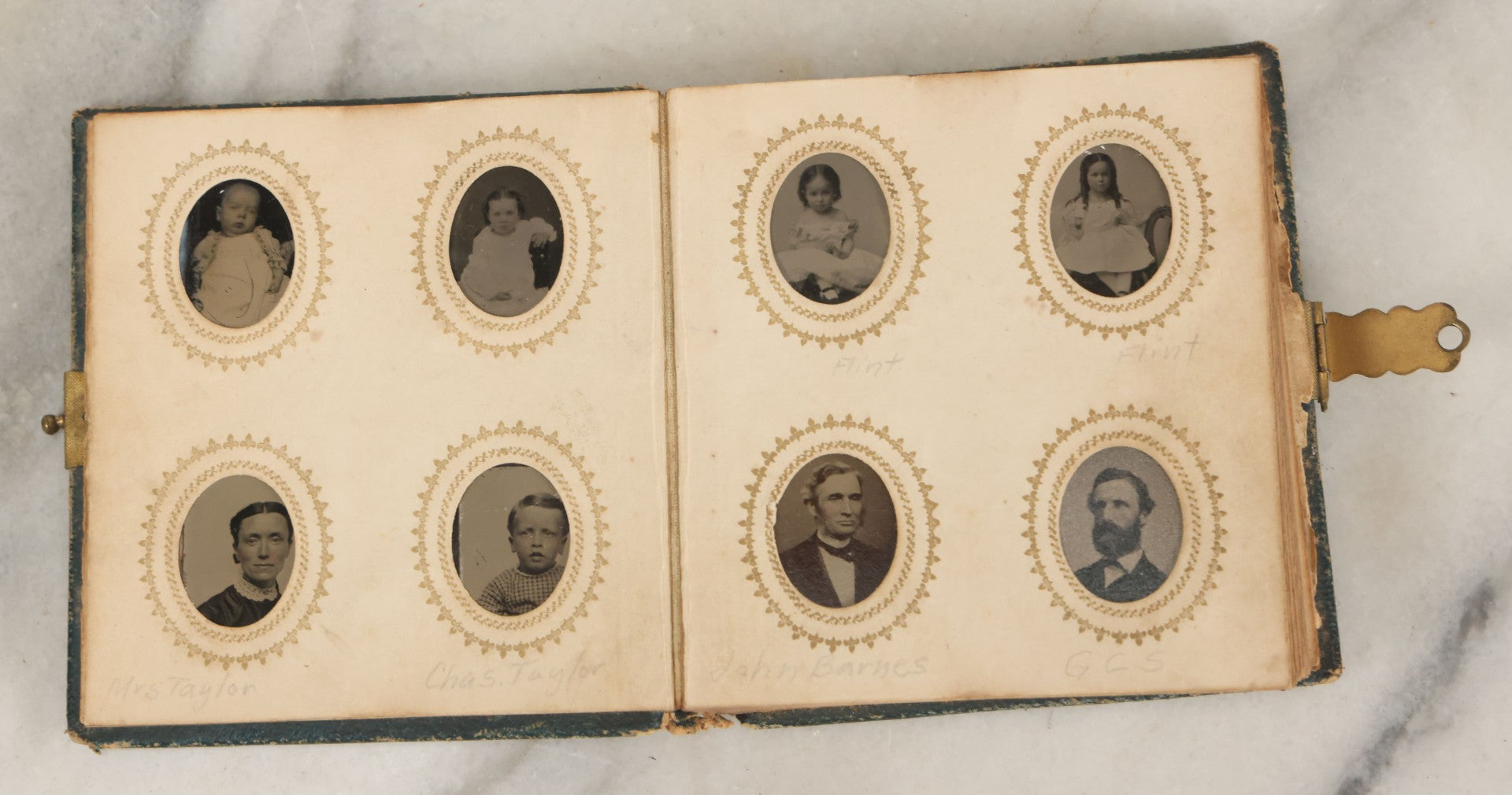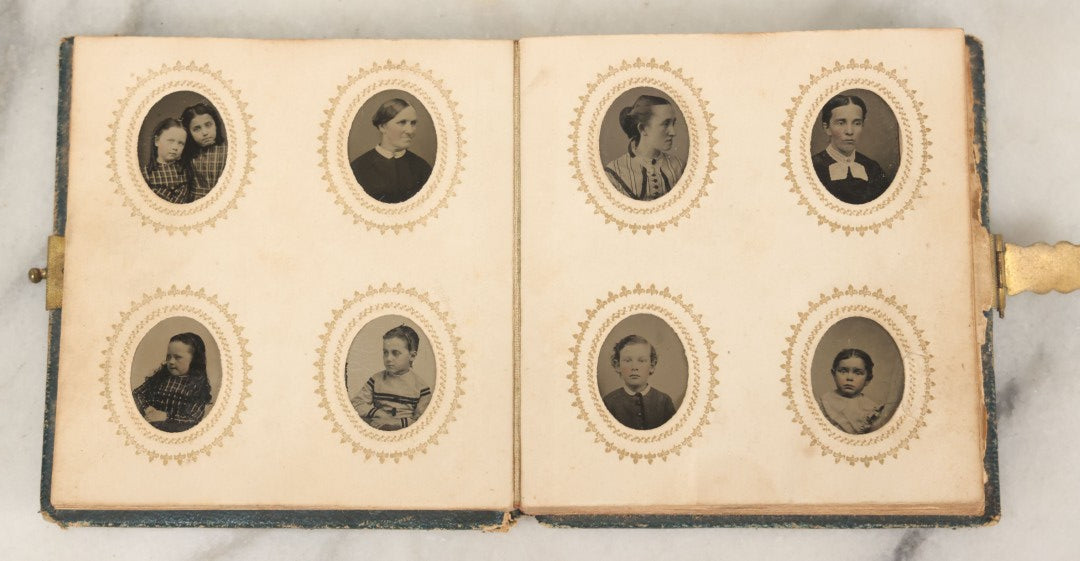 Your absentee bid for Lot 080 - Antique Green Gem Tintype Photograph Album Containing 70+ Photos, Including Twin Girls, Many Identified (All Pages Pictured) was successfully submitted—thank you for bidding with us!
