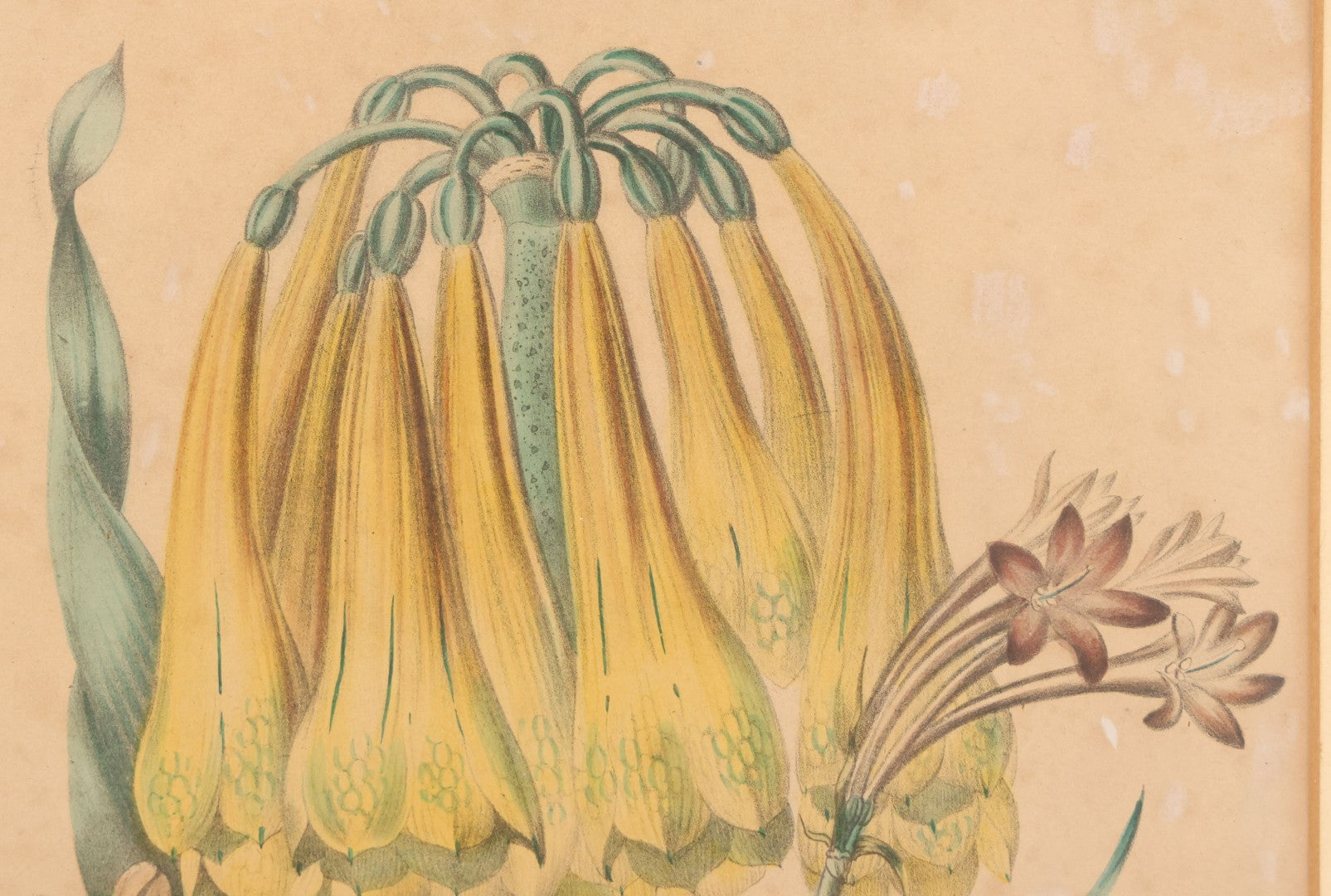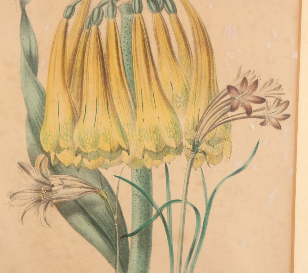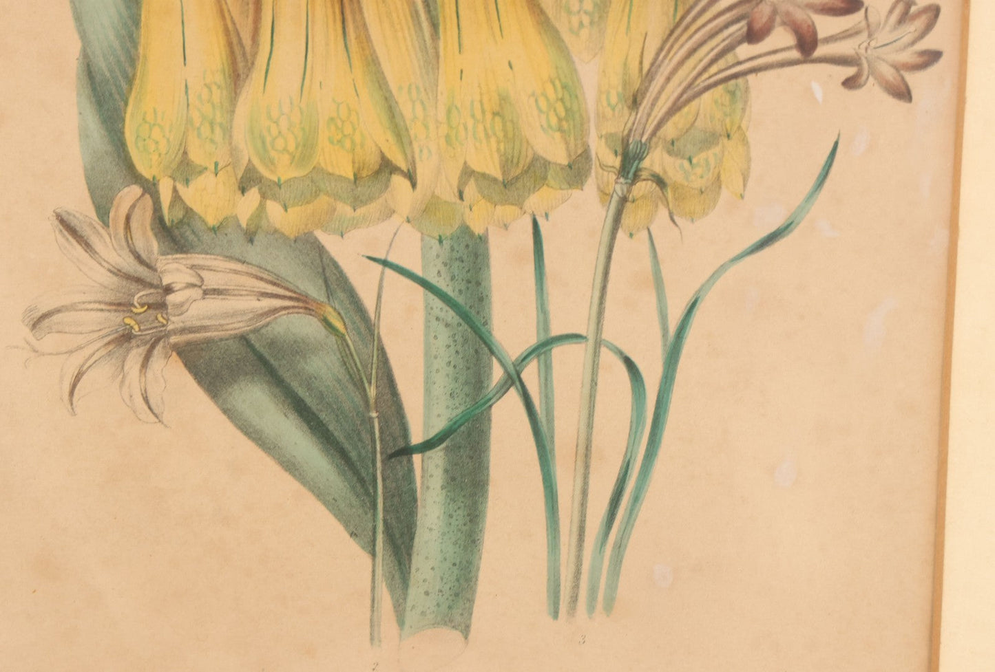 Lot 035 - Antique Hand Colored Botanical Lithograph Print Of Cyrtanthus Obliquus (Knysna Lily), Cyrtanthus Uniflorus (Fire Lily), And Cyrtanthus Odorus (Fragrant Vlei Lily), Day & Haghe Lithographers, London, 14-7/8" x 19-1/8"