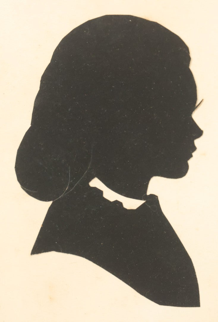 Your absentee bid for Lot 095 - Antique Hand Cut Paper Silhouette Of A Young Girl In A Deep Oval Frame, 11-3/8 x 13-3/8" was successfully submitted—thank you for bidding with us!