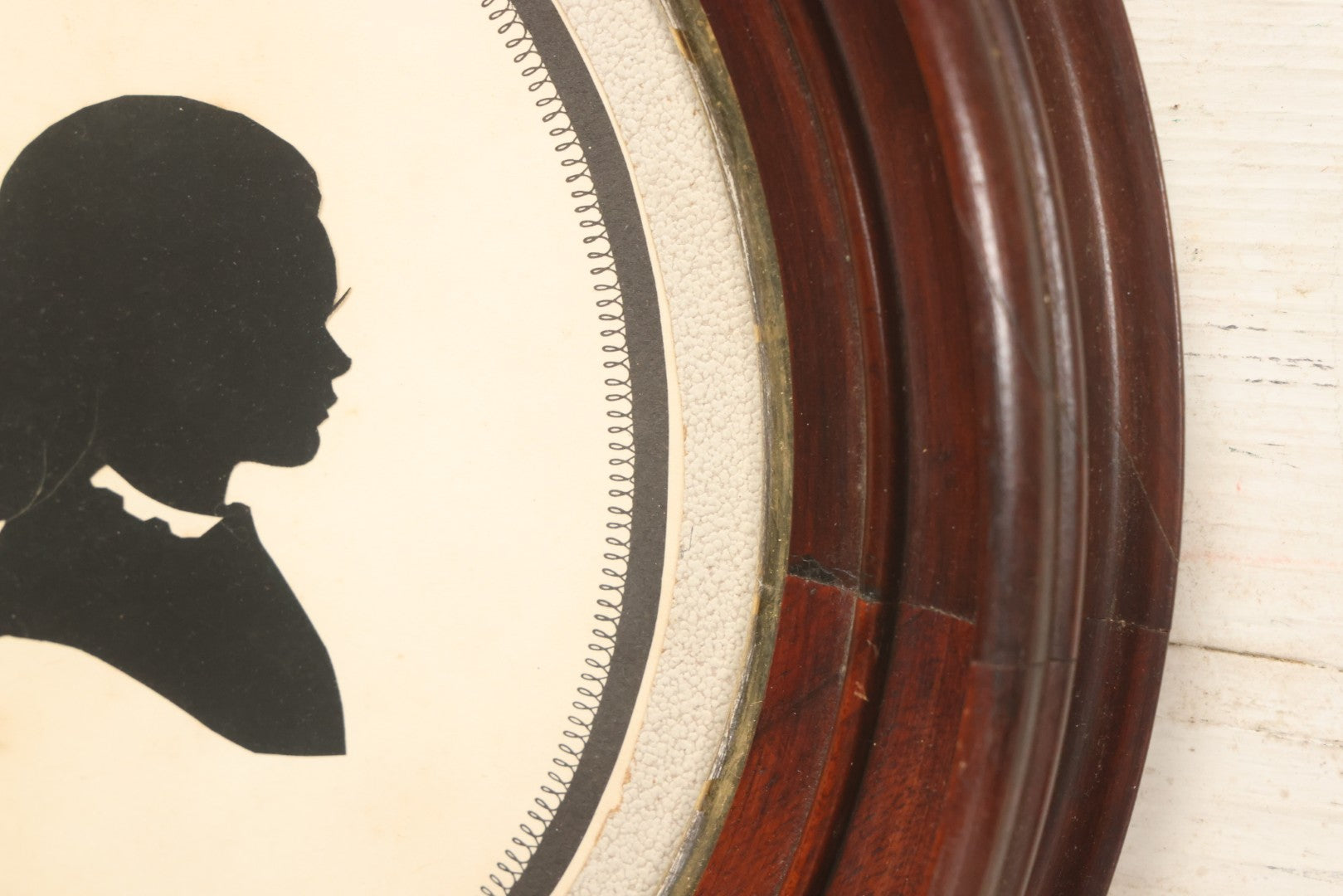 Lot 095 - Antique Hand Cut Paper Silhouette Of A Young Girl In A Deep Oval Frame, 11-3/8 x 13-3/8"