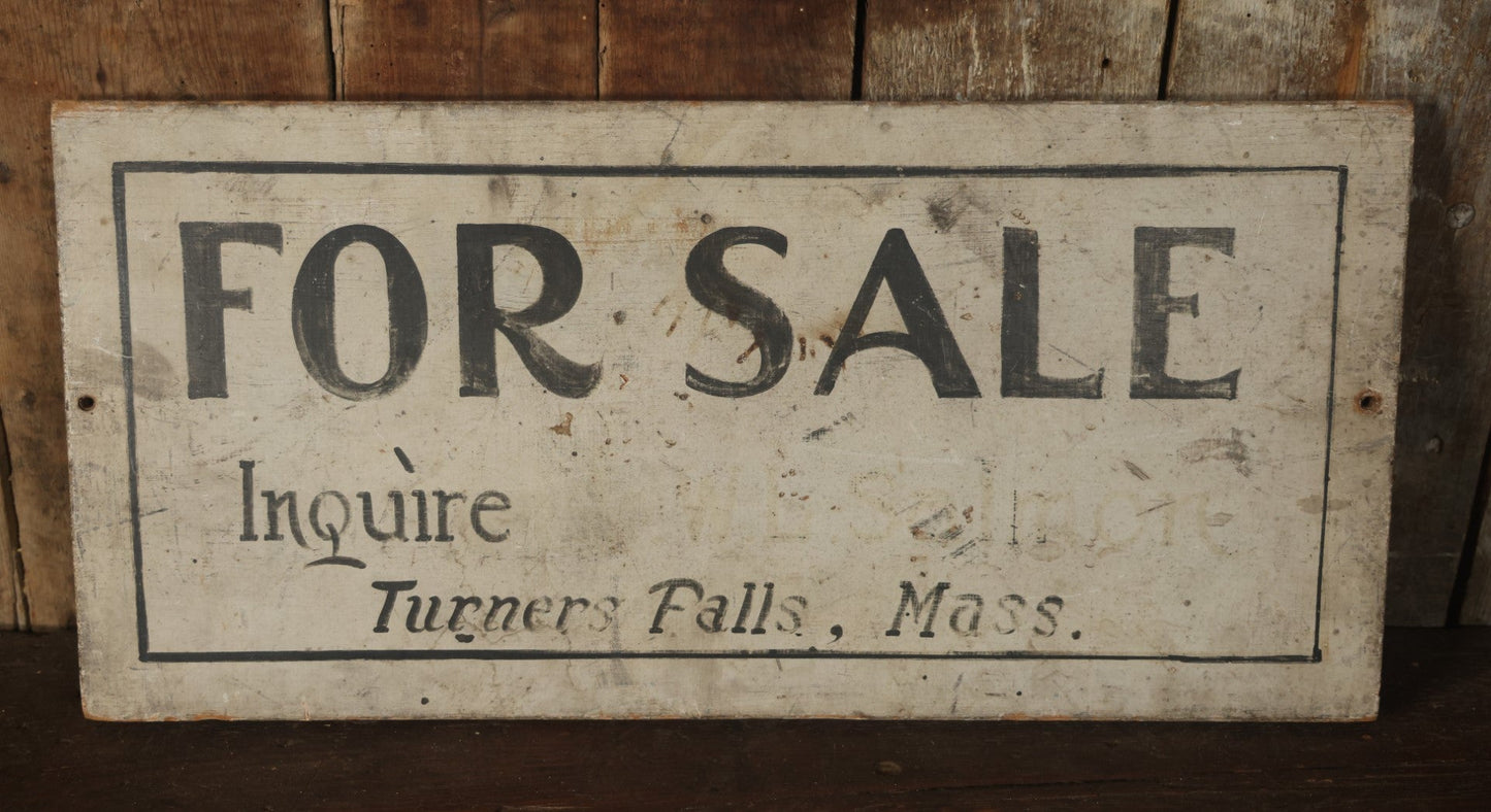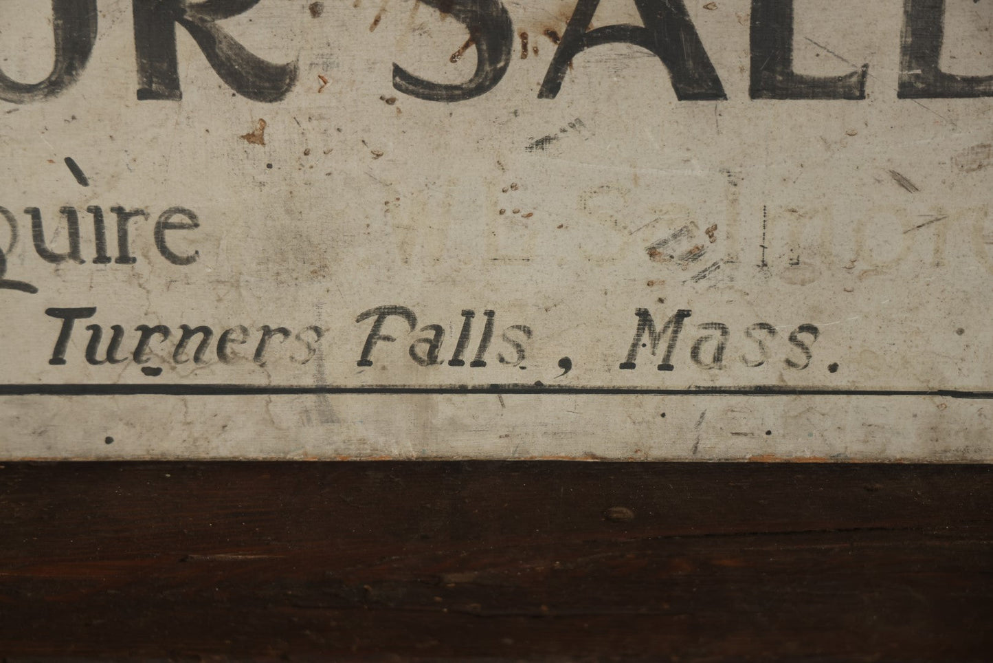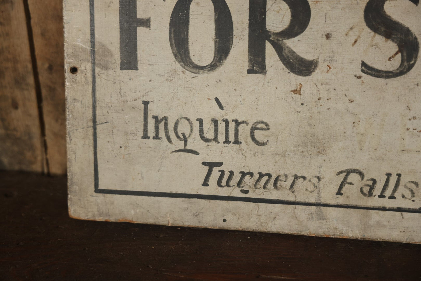 Antique Hand Painted Wood "For Sale - Inquire" Sign, From Turners Falls, Massachusetts, Single Sided