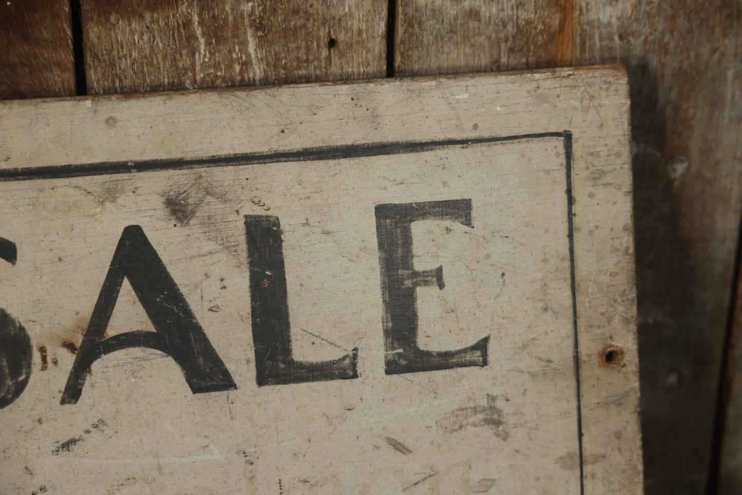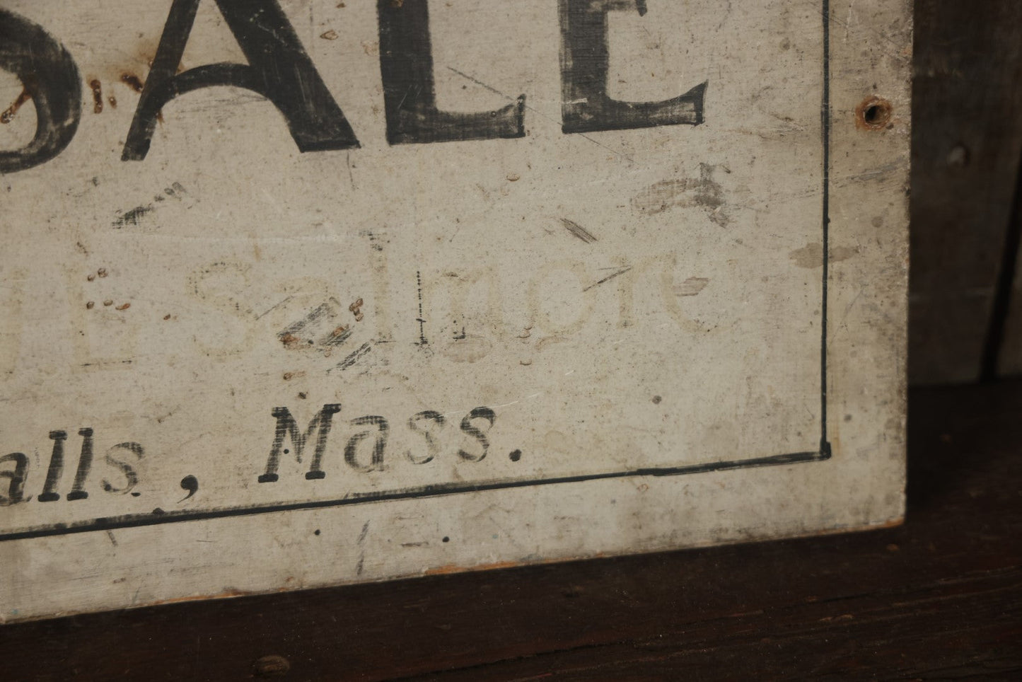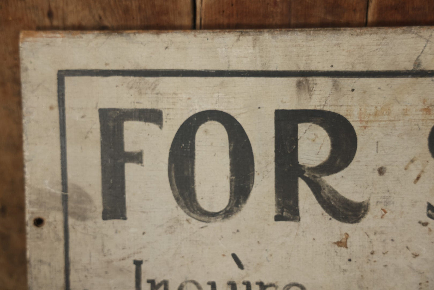 Antique Hand Painted Wood "For Sale - Inquire" Sign, From Turners Falls, Massachusetts, Single Sided