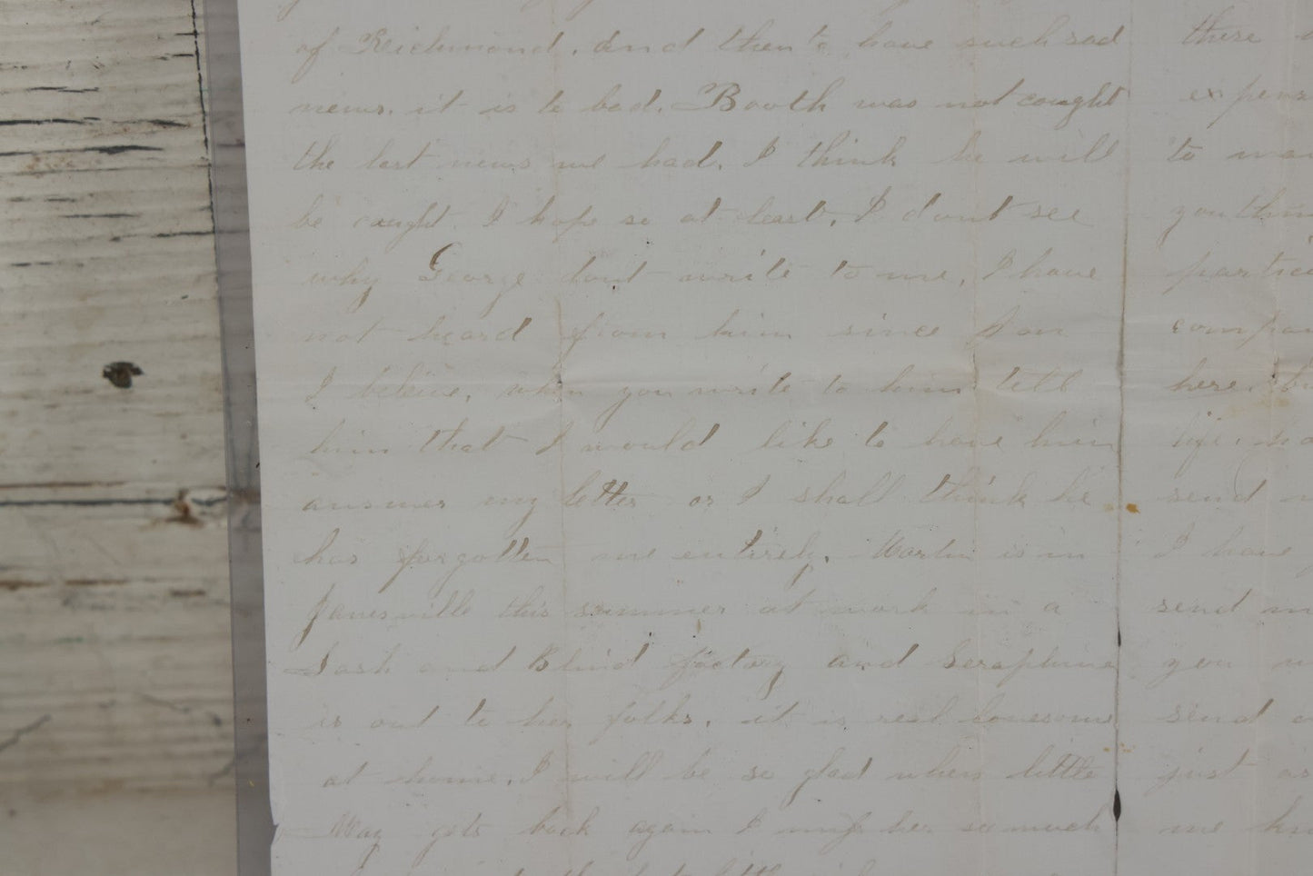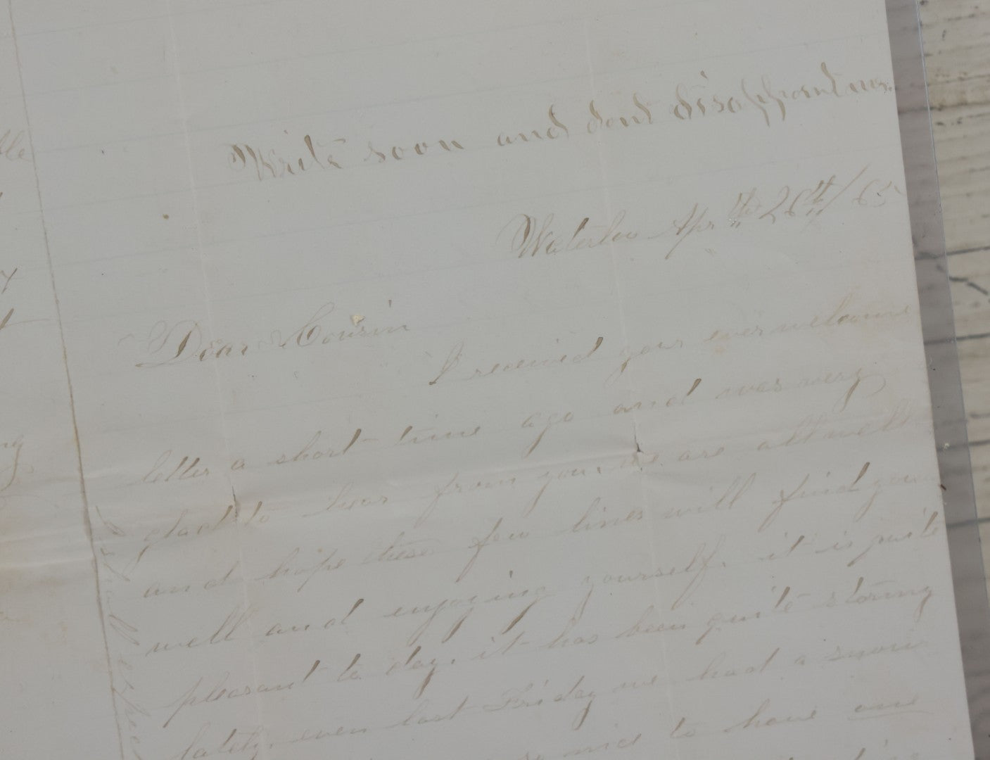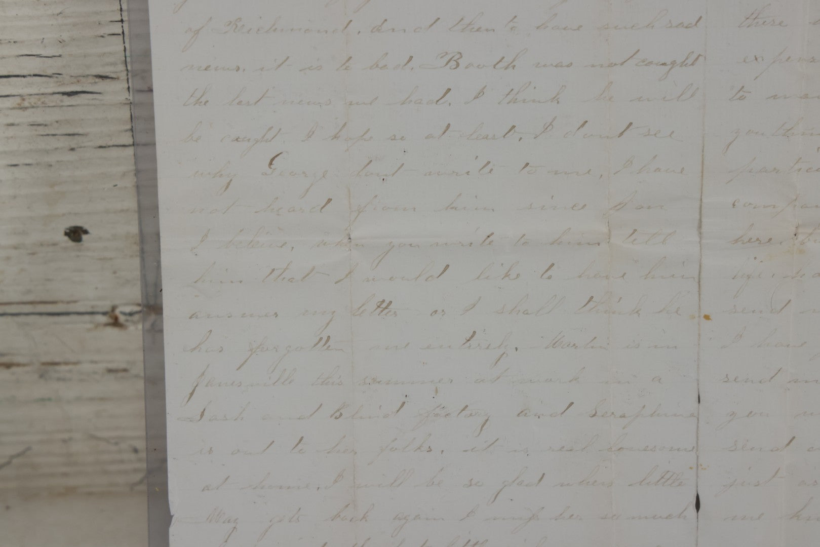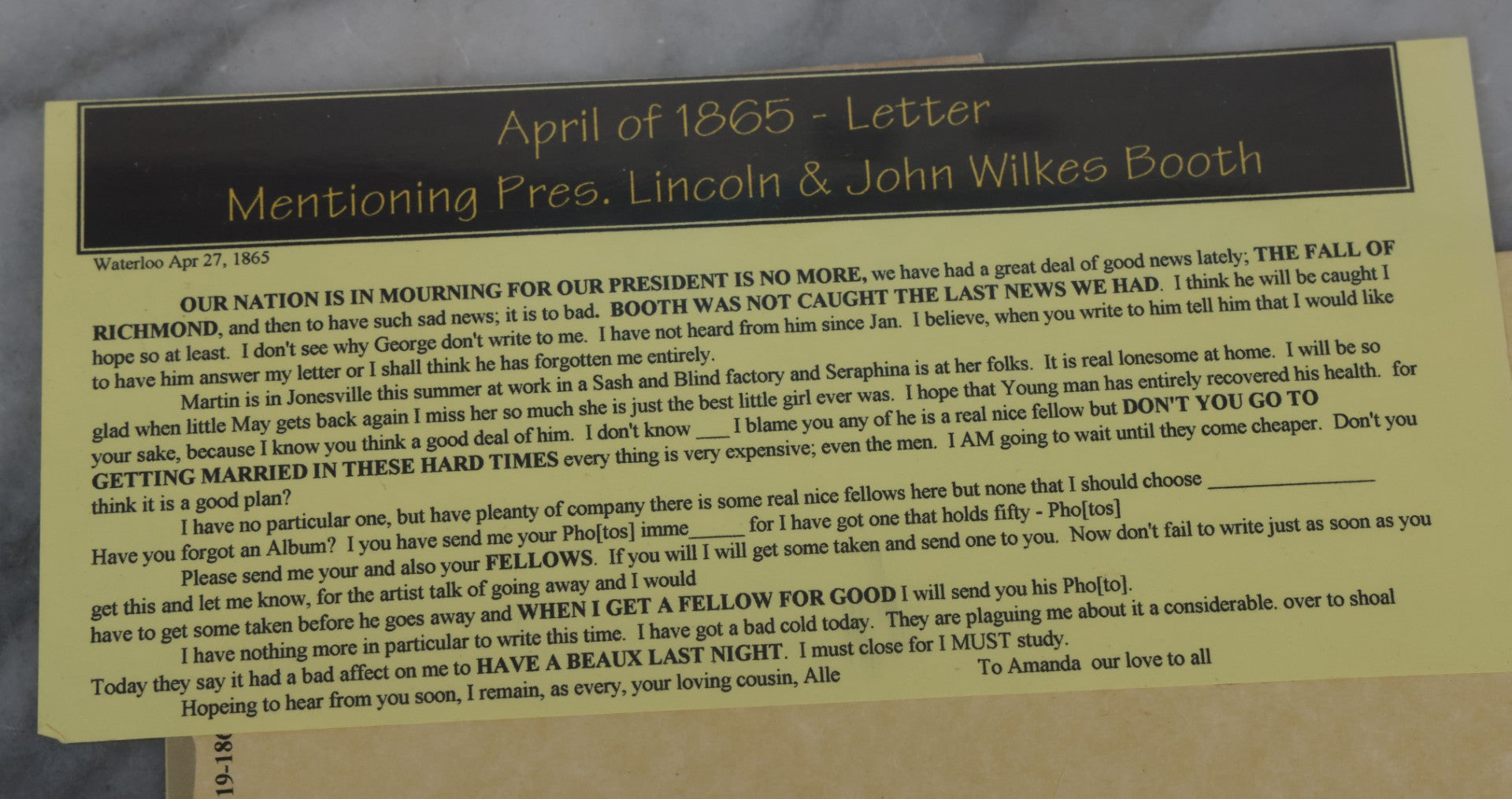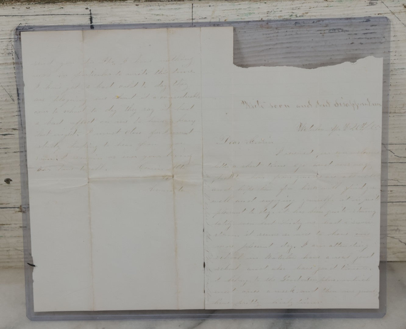 Lot 081 - Antique Handwritten Letter Dated April 26, 1865, Waterloo, New York, Mentioning The Assassination Of President Abraham Lincoln By John Wilkes Booth, With C.O.A. And Transcription, Note Loss To Upper Portion Of Paper, Includes Envelope