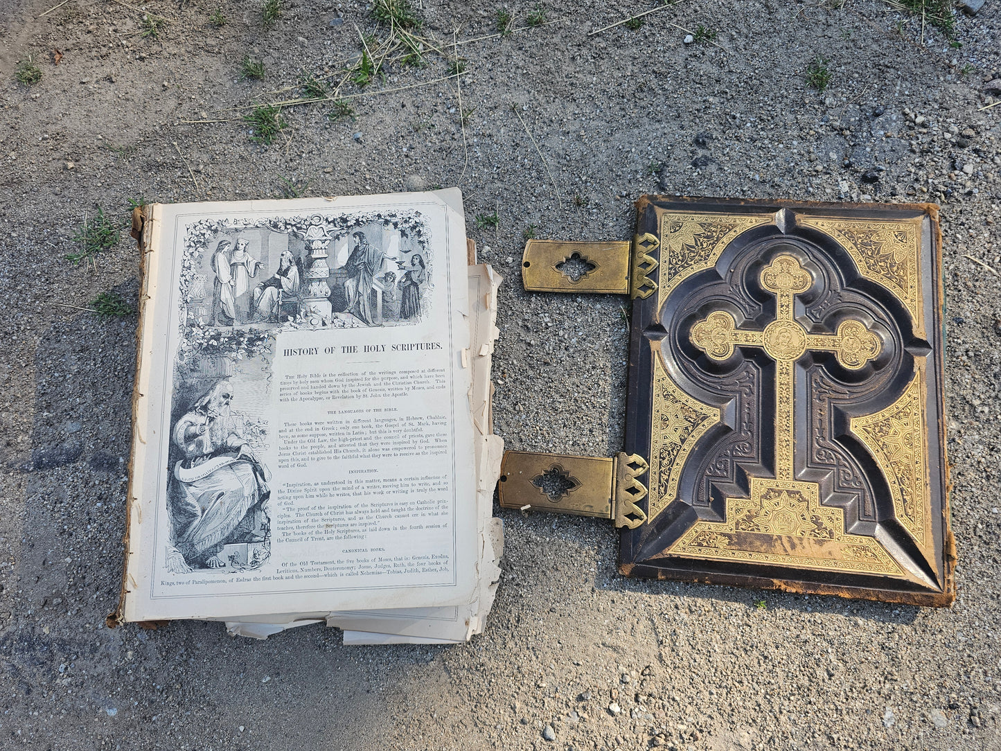 Antique Illustrated Family Bible - Craft Grade - Good for Scrapbooking, Framing, Etc - Missing Front Cover