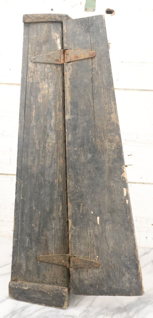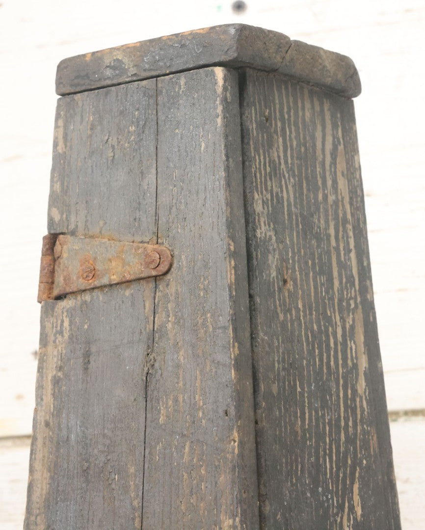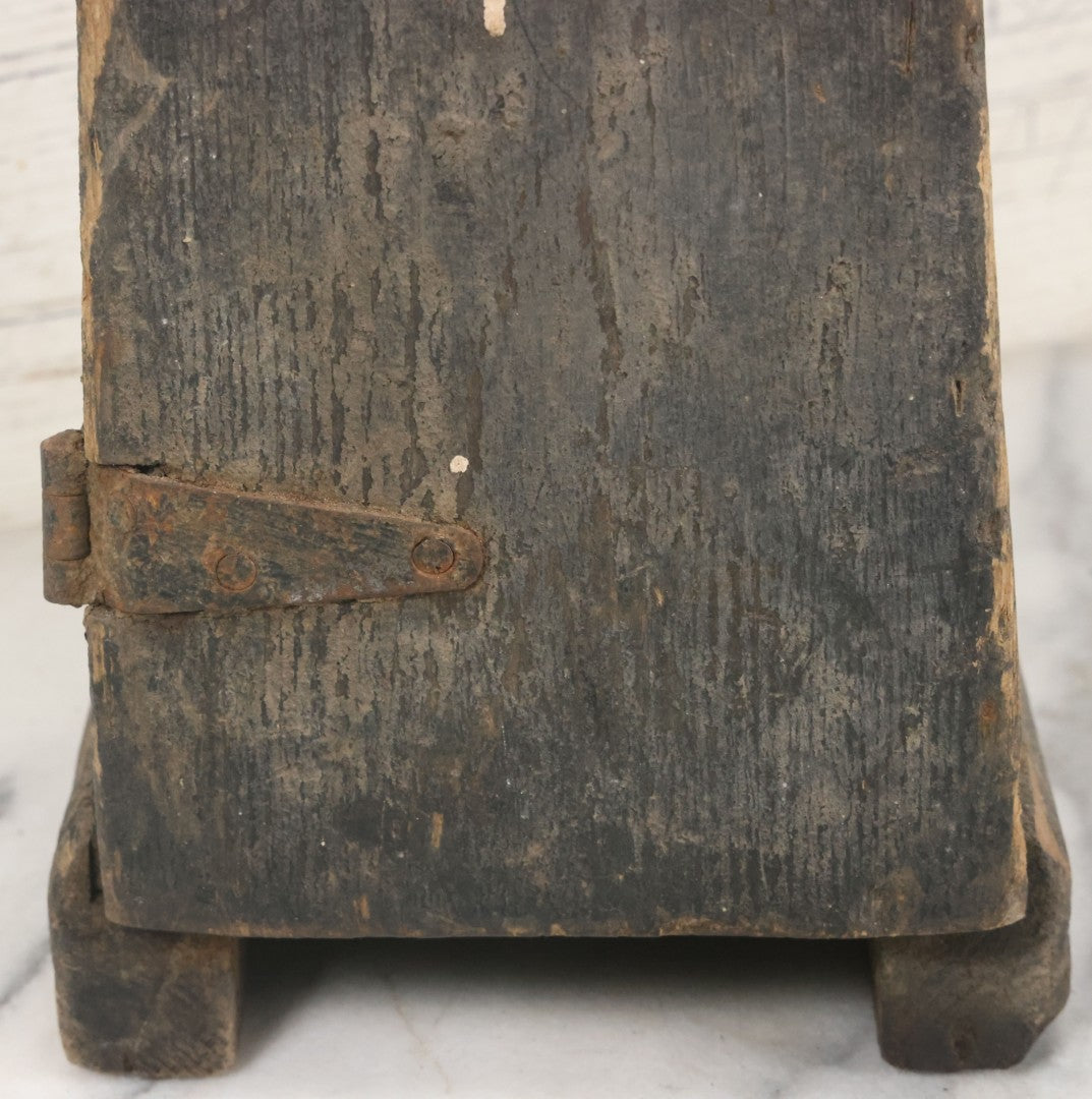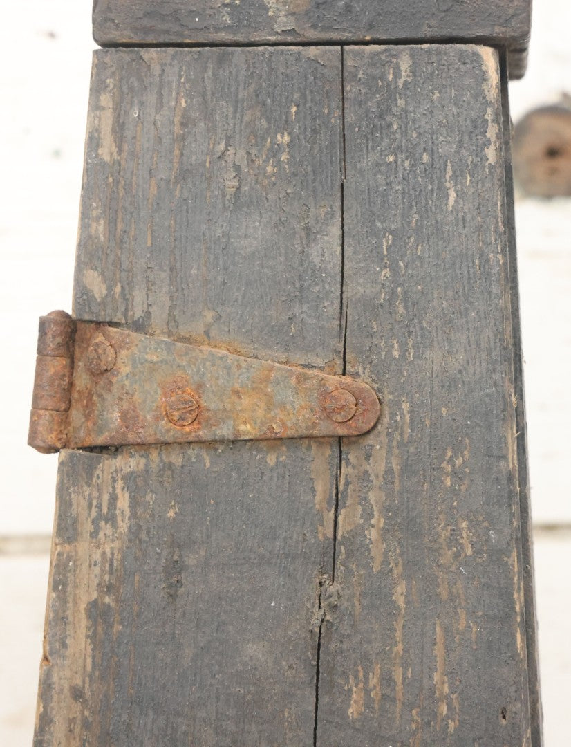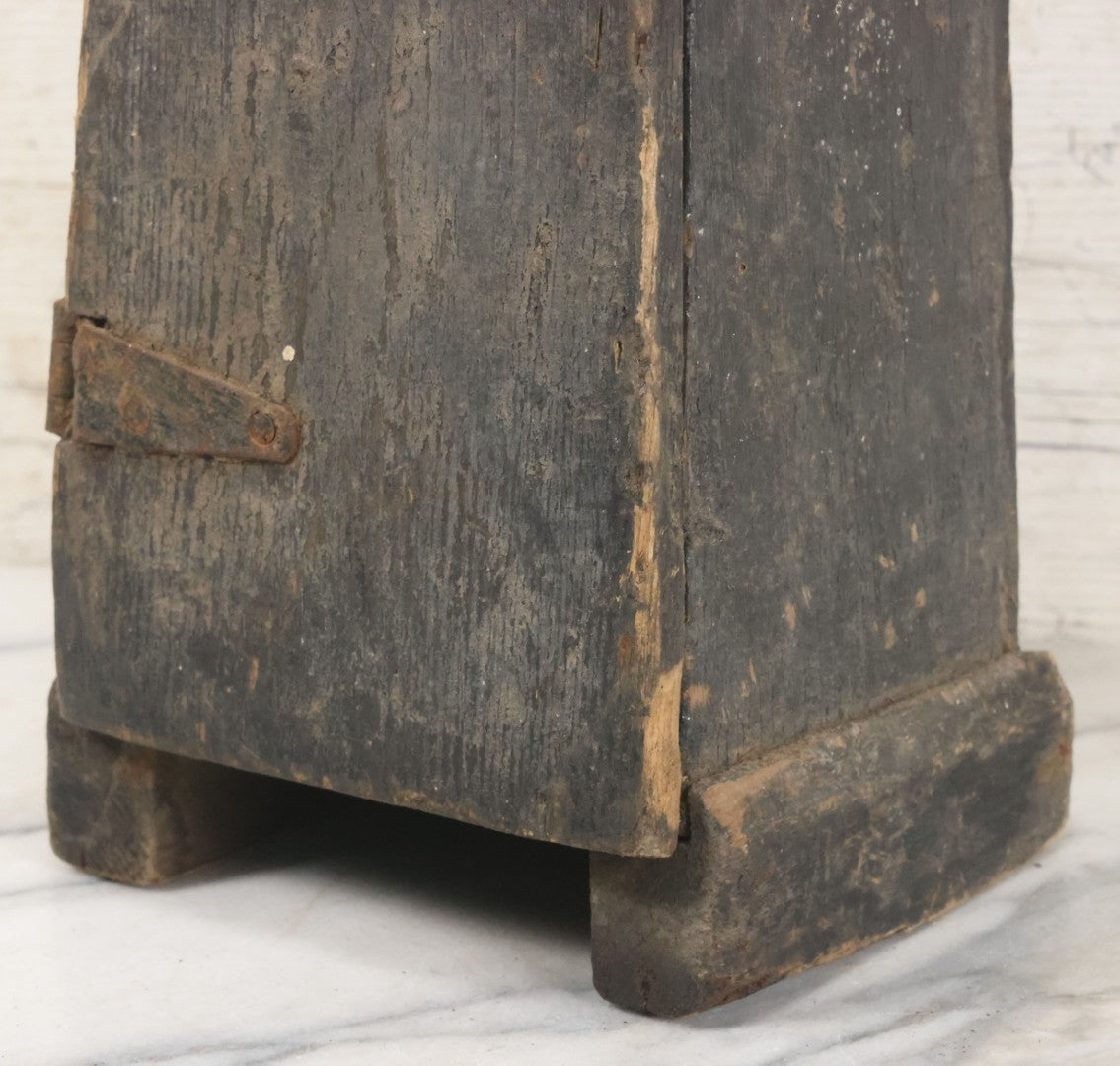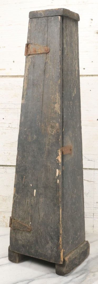 Your absentee bid for Lot 006 - Antique Industrial Salvage Decor Graduated Cast Iron Gear Tapered Wooden Storage Box, With Dividing Shelves And Contents, With Hinged Door, As Found, Dimensions In Description was successfully submitted—thank you for bidding with us!