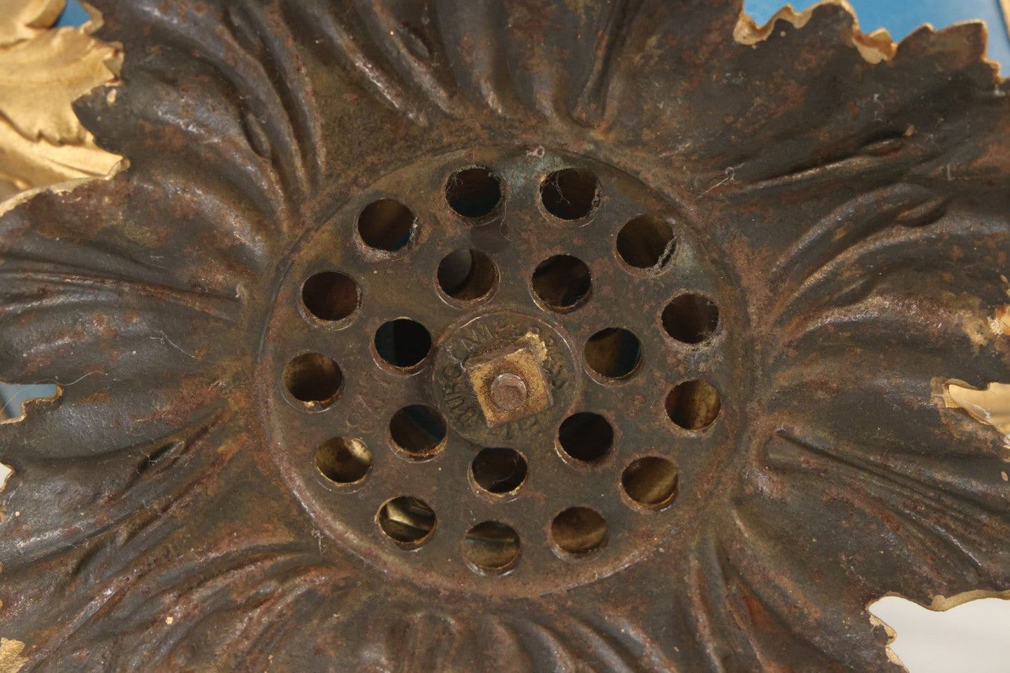 Your absentee bid for Lot 003 - Antique Kerosene Oil Lamp With Painted Blue Tin Font, Dove Head Motif, And Hand Painted Globe With Floral Motif By Pittsburgh Lamp And Brass, Made In America, Note Cracked And Repaired Section Of Globe, 19" High was successfully submitted—thank you for bidding with us!