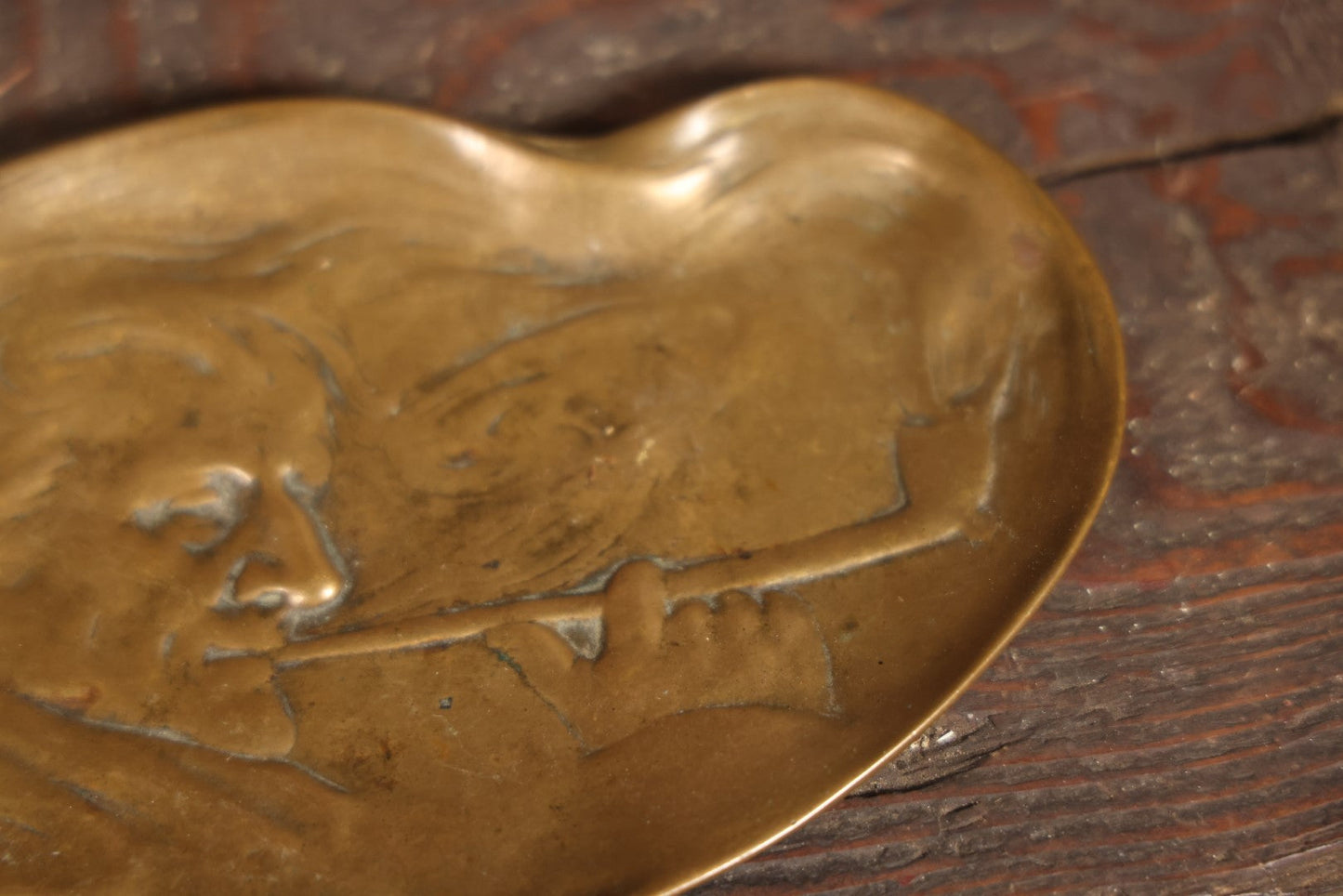 Antique Metamorphic Cast Metal Tray With Man Smoking Pipe, Surrounded By Smoke, Marked E.F. Caldwell & Co., Inc., 6313