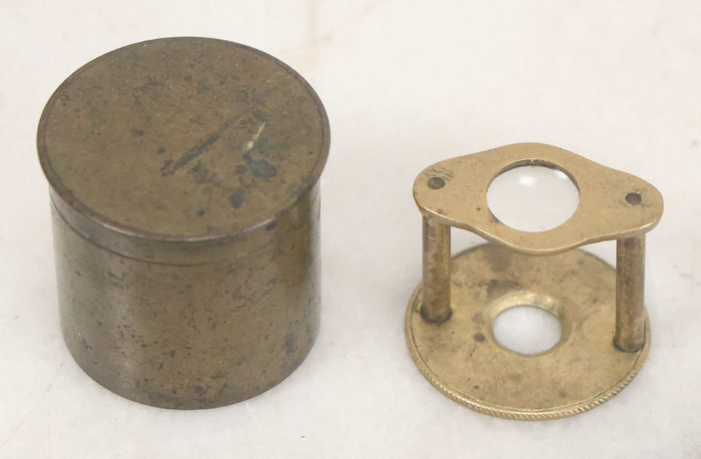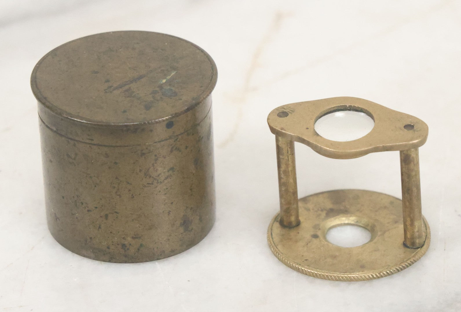 Lot 036 - Antique Miniature Brass Jewelers Loupe With Custom Brass Carrying Case, Note Some Warping To Hardware, Useable Condition