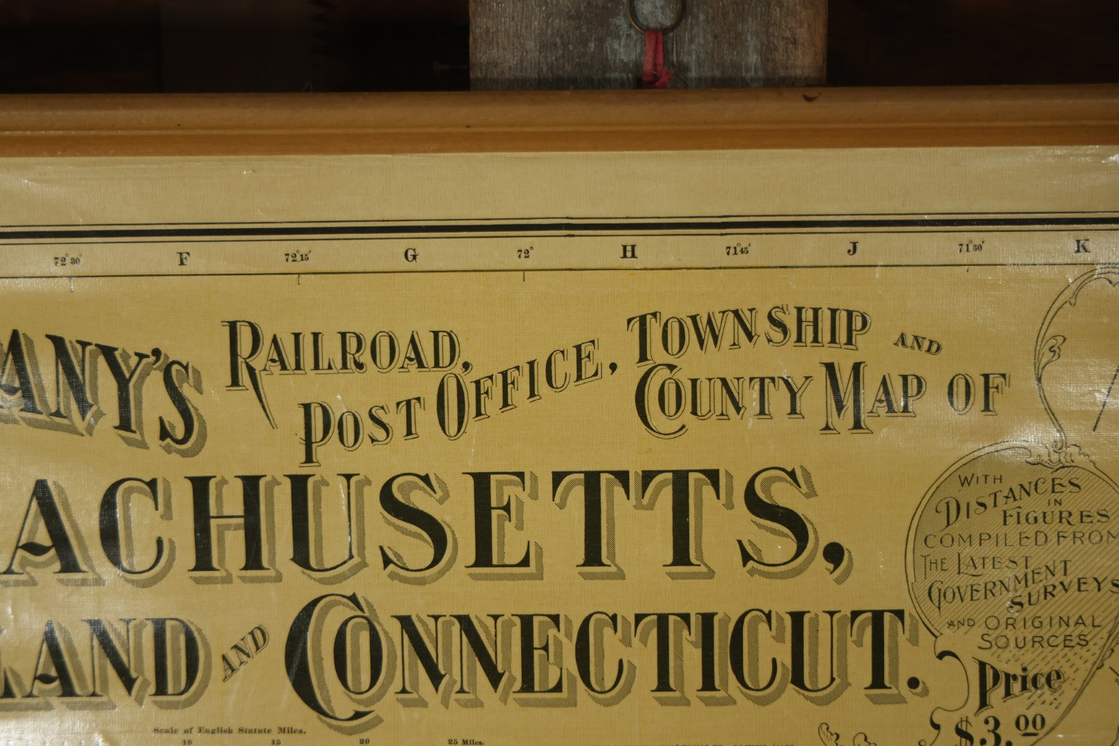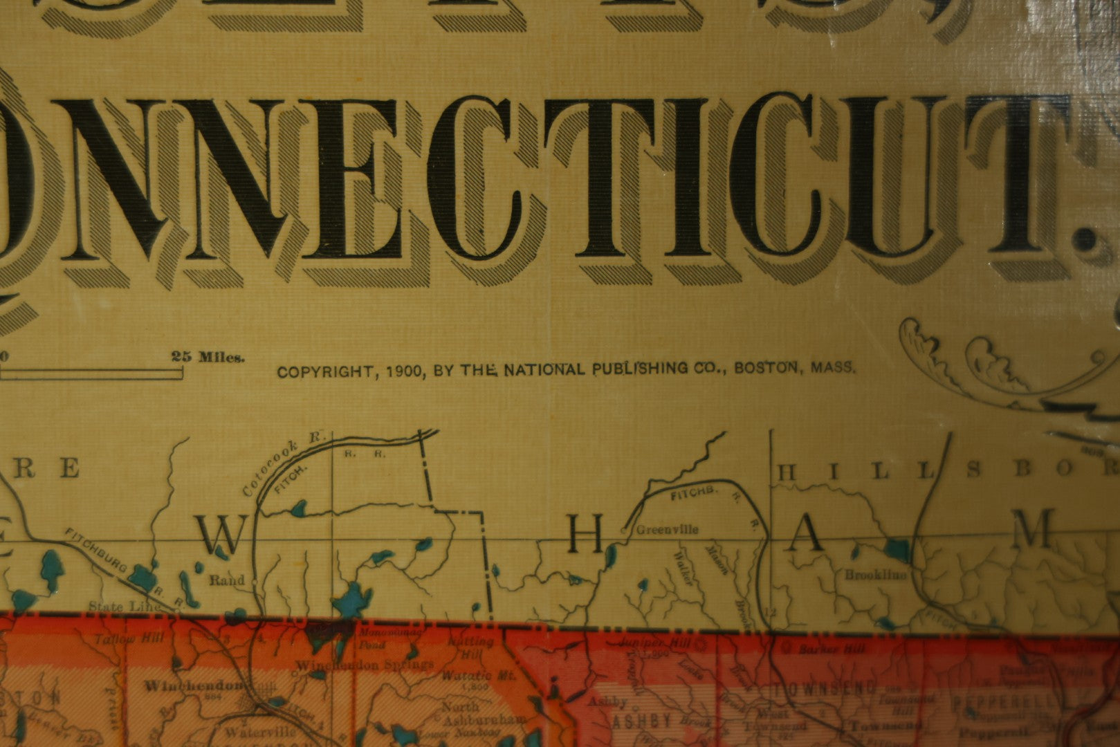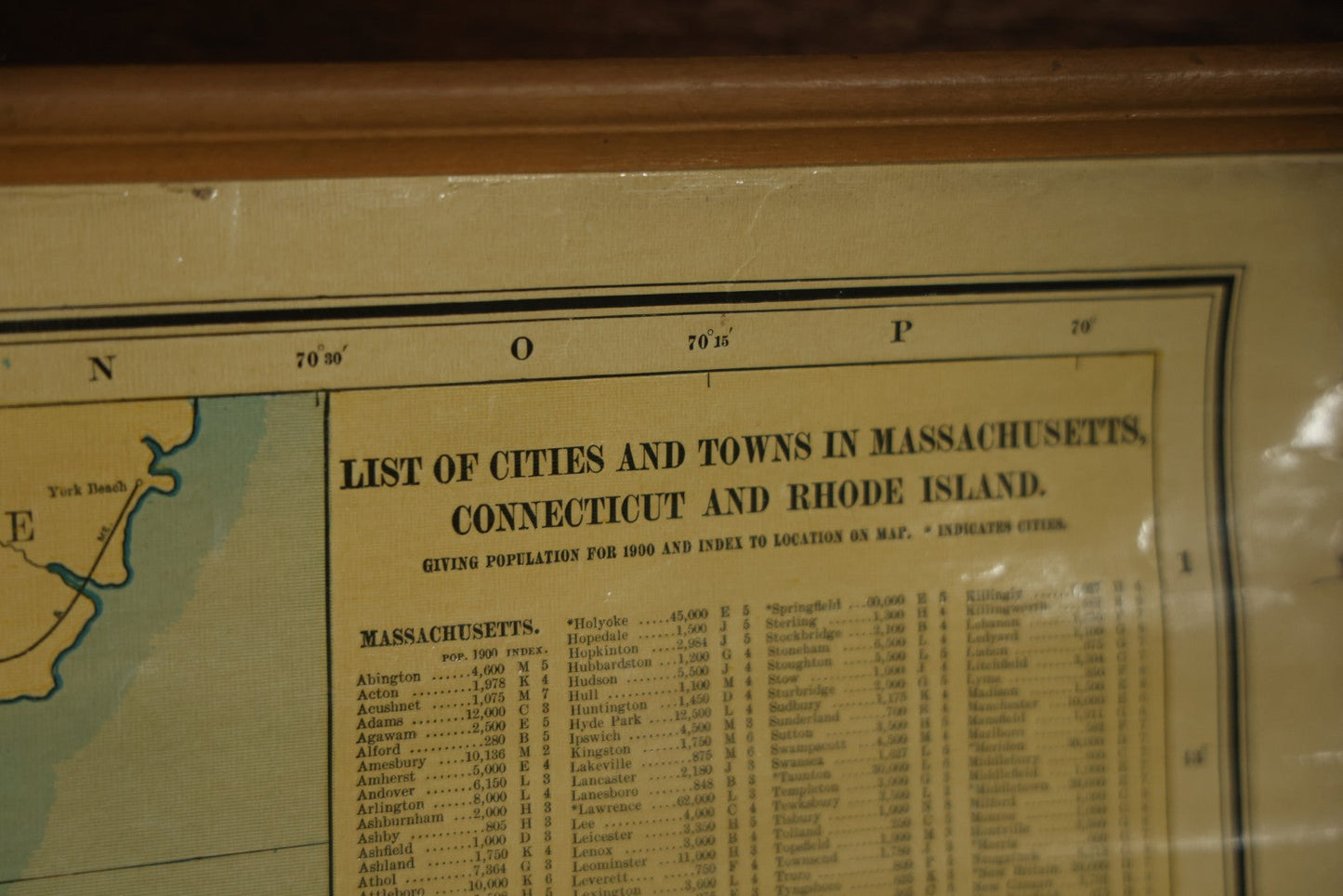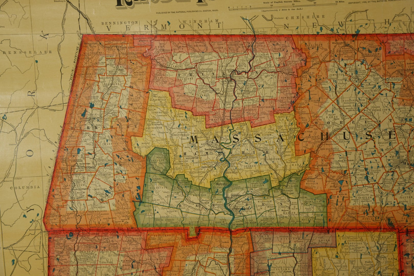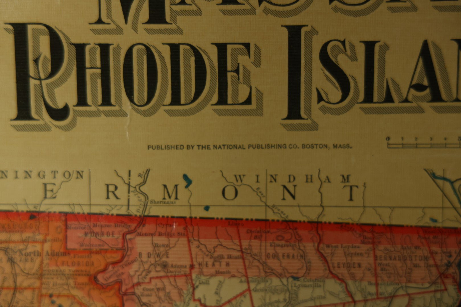 Antique National Publishing Company's Railroad, Post Office, Township And County Map Of Massachusetts, Rhode Island, And Connecticut For 1901, Roll Up Map, Copyright 1900 By The National Publishing Co., Boston, Massachusetts, 38-3/4" x 36"