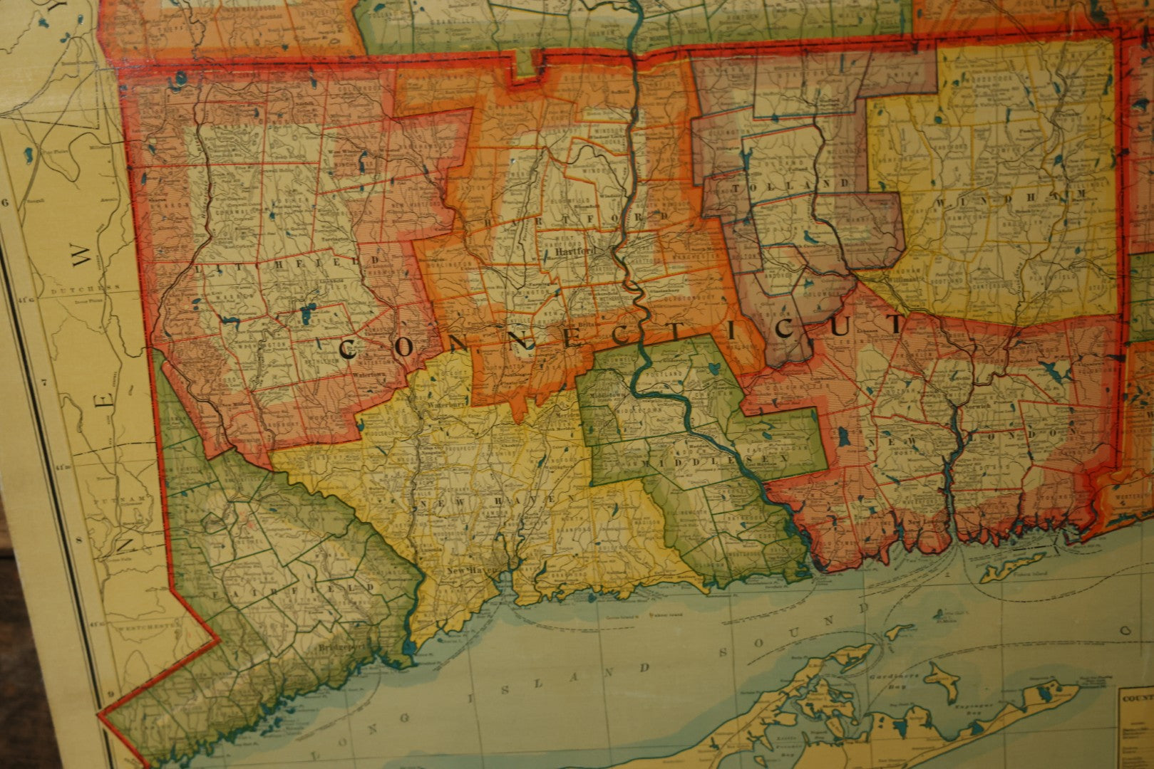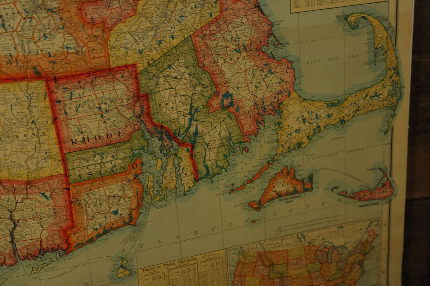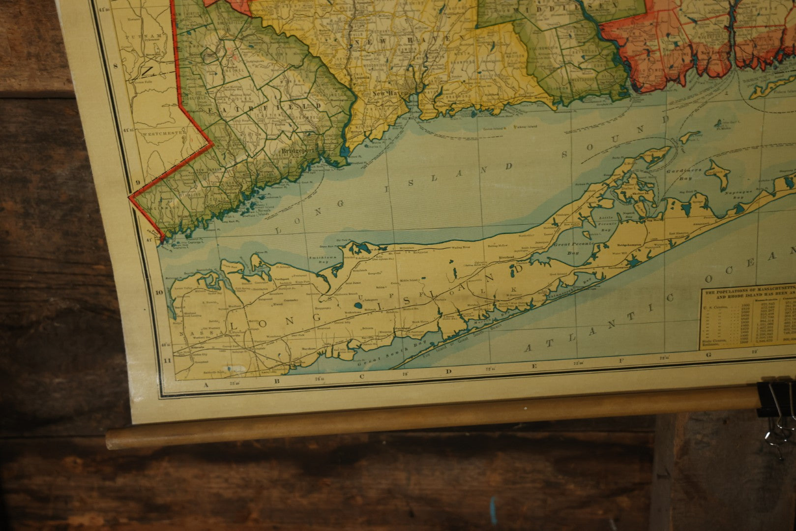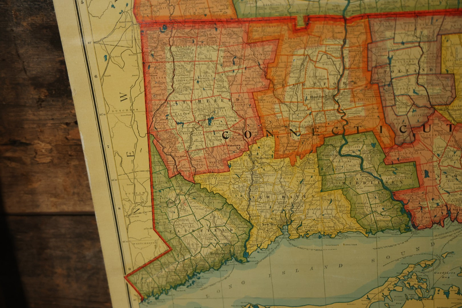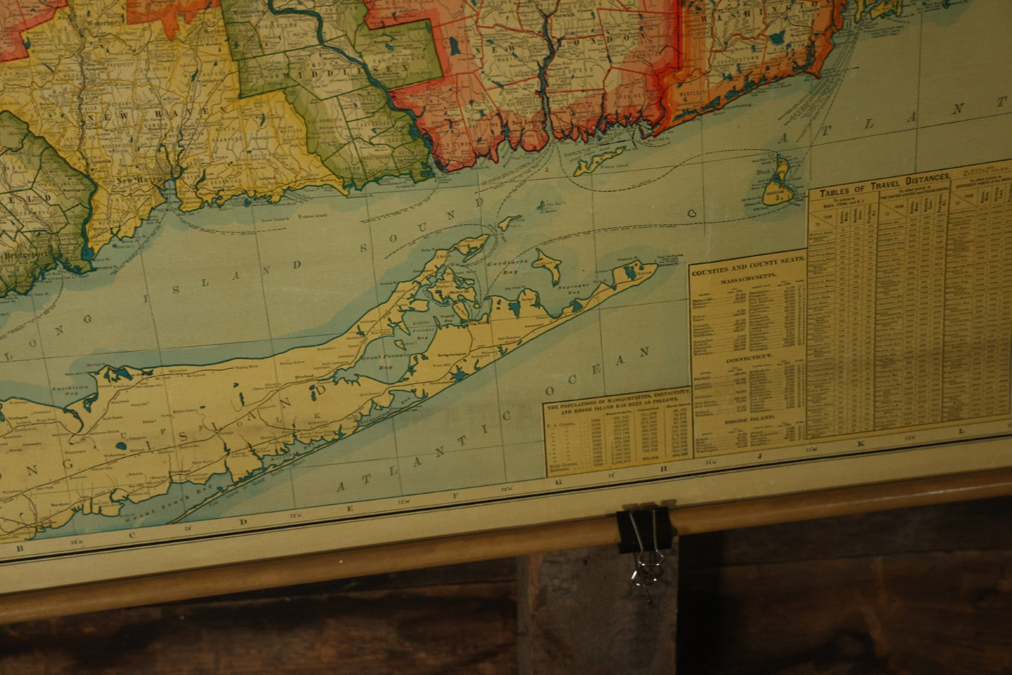 Antique National Publishing Company's Railroad, Post Office, Township And County Map Of Massachusetts, Rhode Island, And Connecticut For 1901, Roll Up Map, Copyright 1900 By The National Publishing Co., Boston, Massachusetts, 38-3/4" x 36"