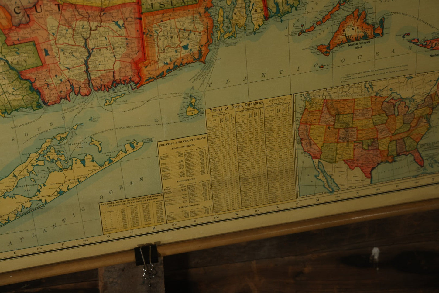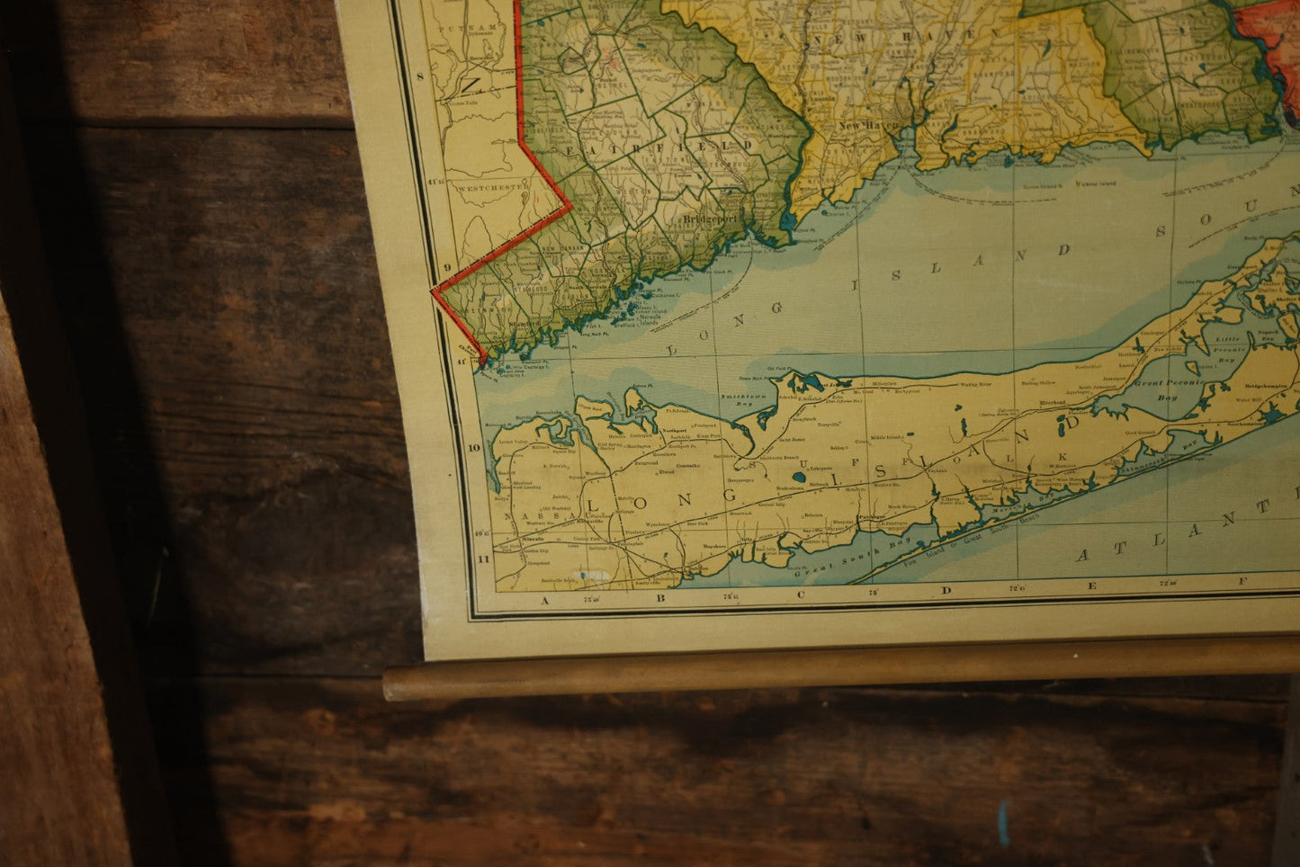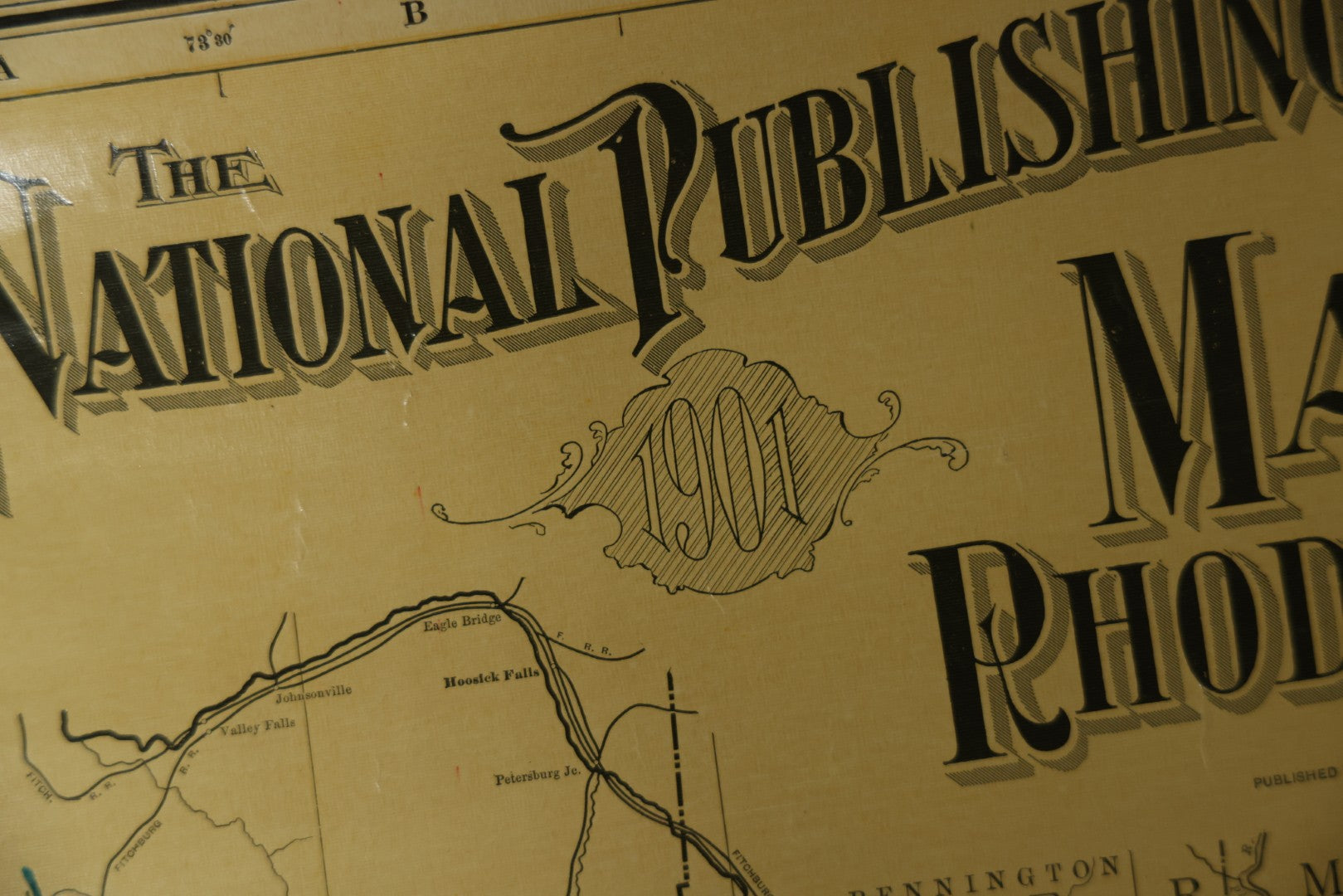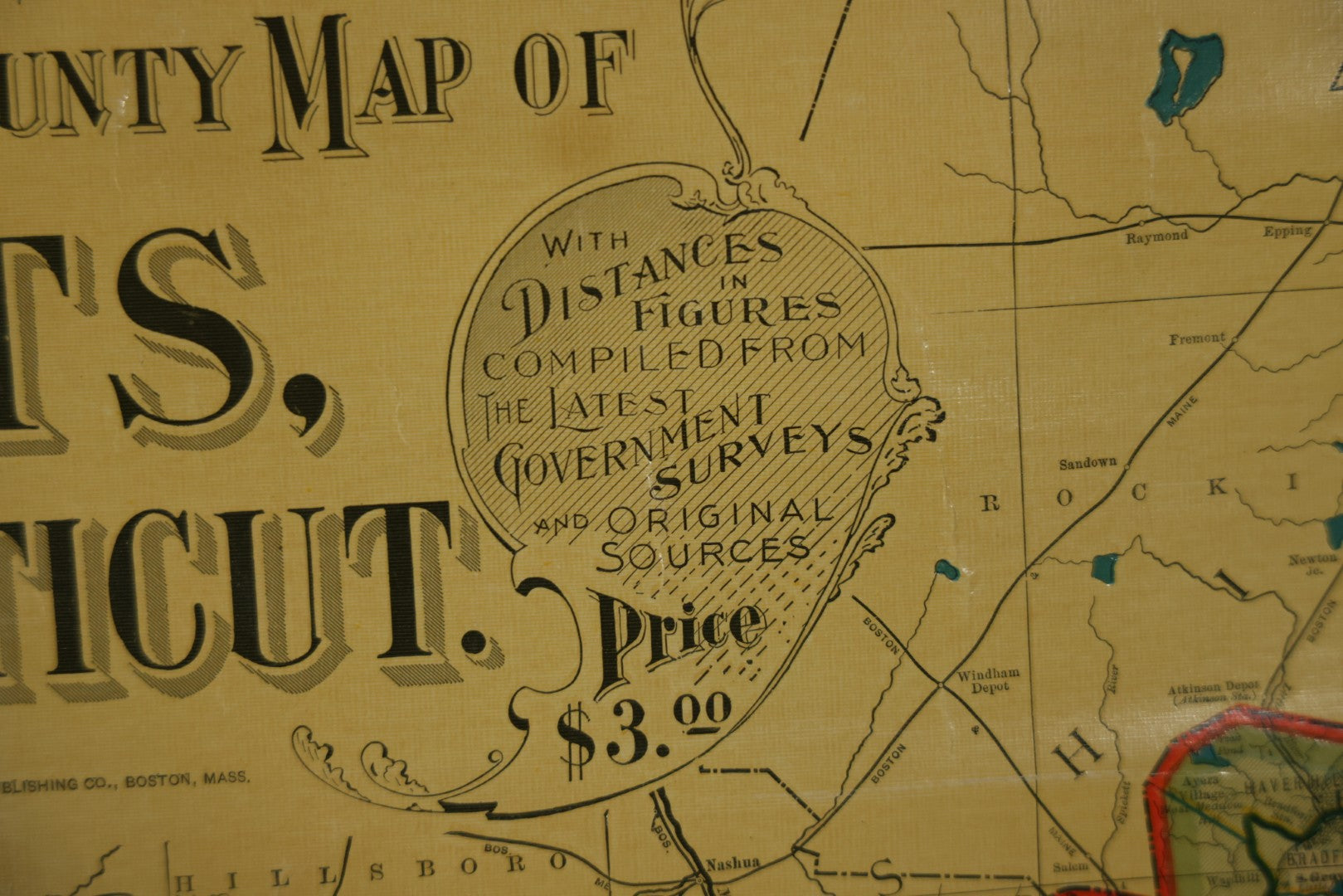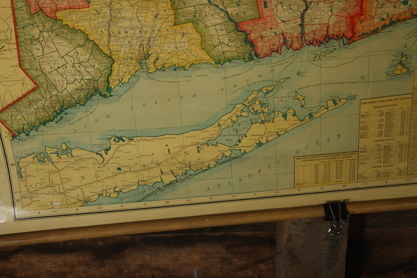 Antique National Publishing Company's Railroad, Post Office, Township And County Map Of Massachusetts, Rhode Island, And Connecticut For 1901, Roll Up Map, Copyright 1900 By The National Publishing Co., Boston, Massachusetts, 38-3/4" x 36"