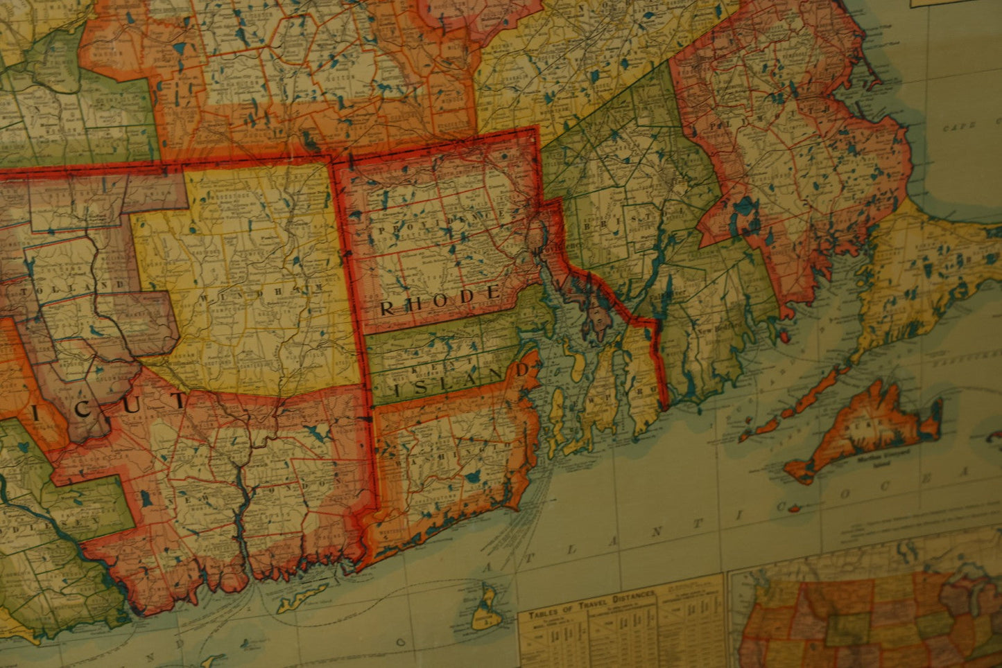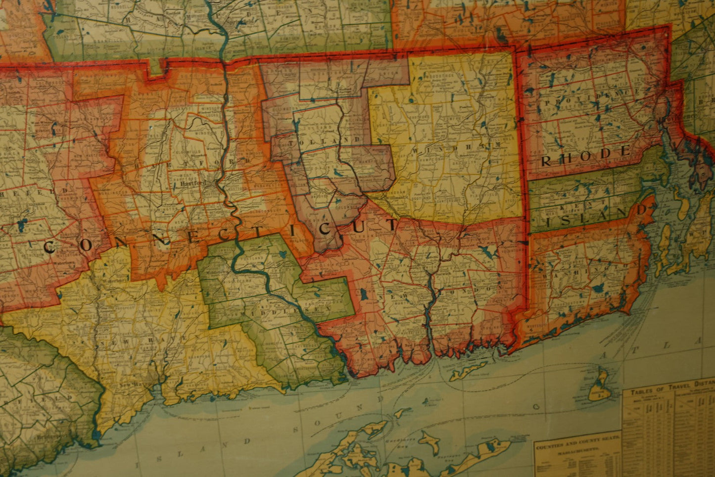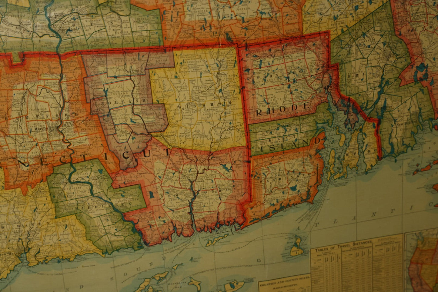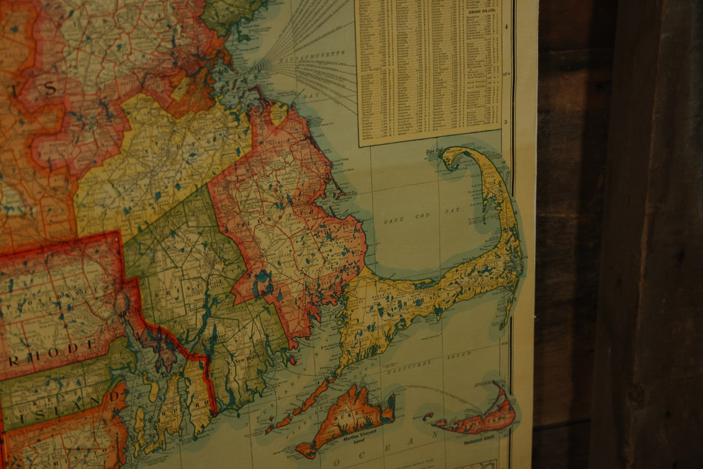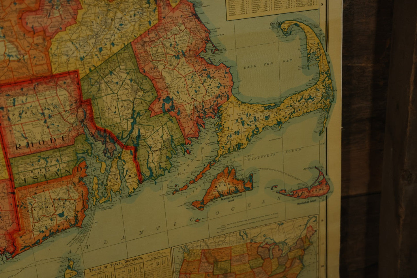 Antique National Publishing Company's Railroad, Post Office, Township And County Map Of Massachusetts, Rhode Island, And Connecticut For 1901, Roll Up Map, Copyright 1900 By The National Publishing Co., Boston, Massachusetts, 38-3/4" x 36"