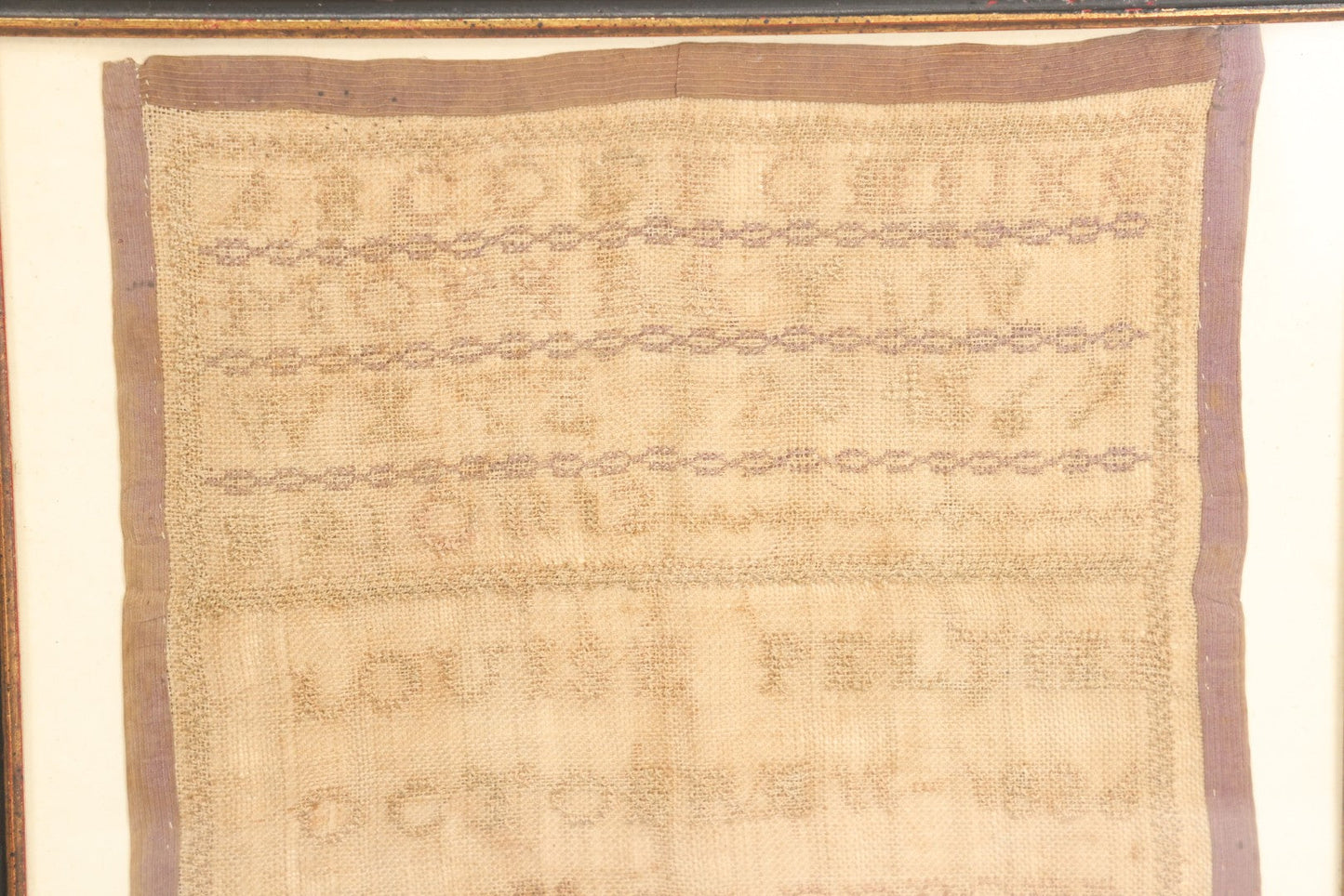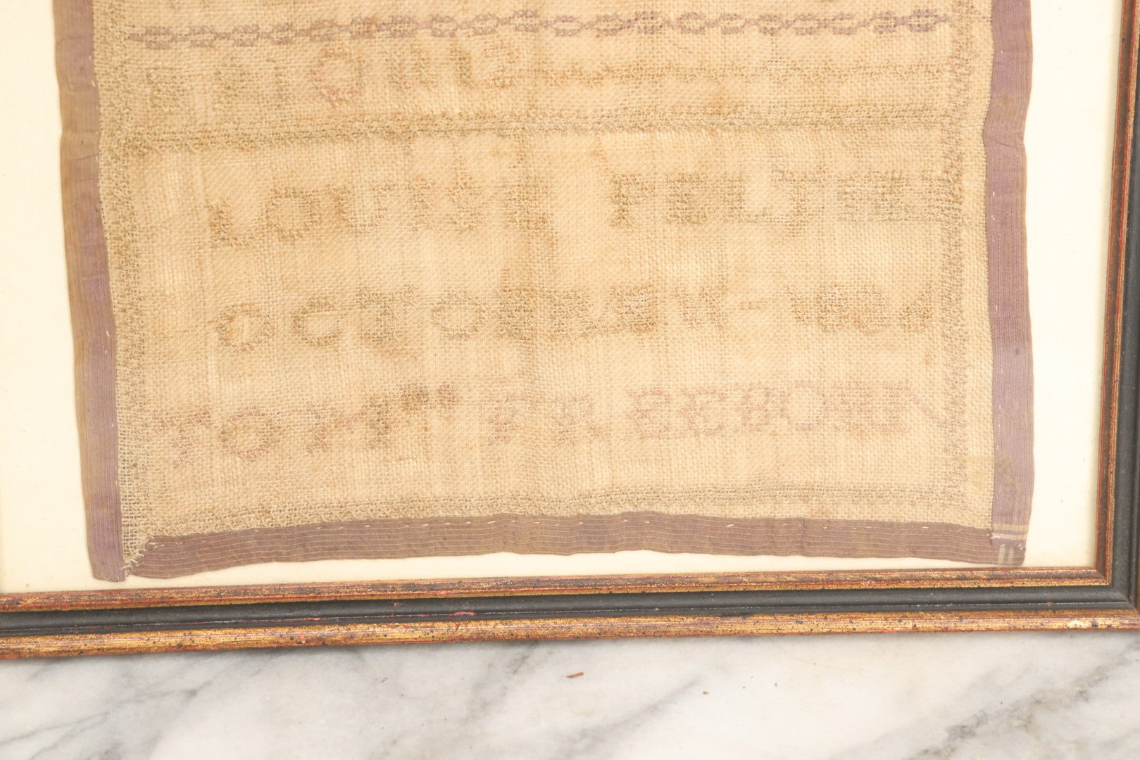 Lot 003 - Antique Needlework Sampler With Letters And Numbers, Signed Louise Peltier, Tom Freeborn, Dated 1836, In Frame, 11-1/2" x 9-7/8"