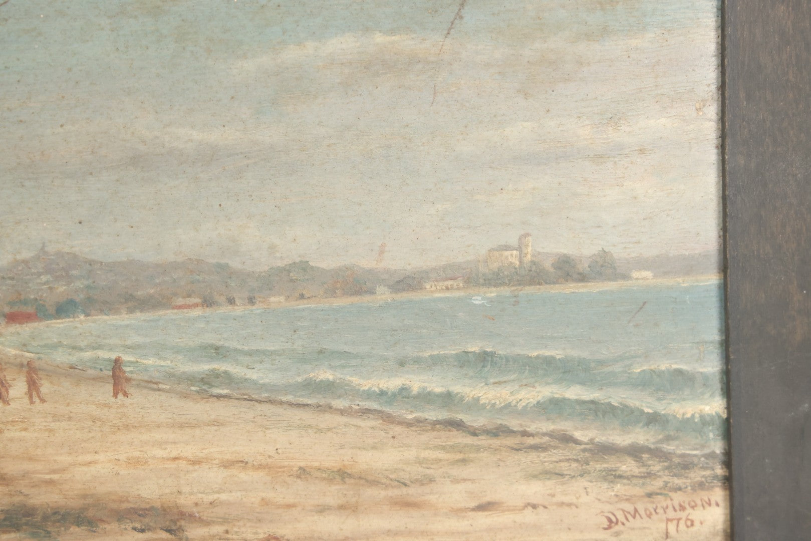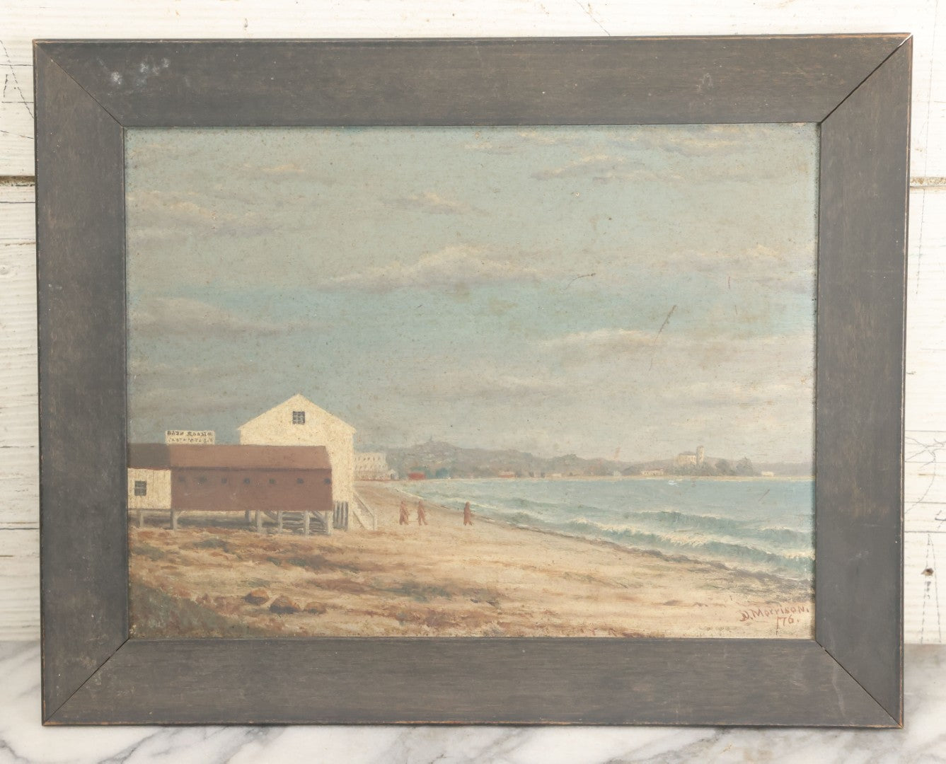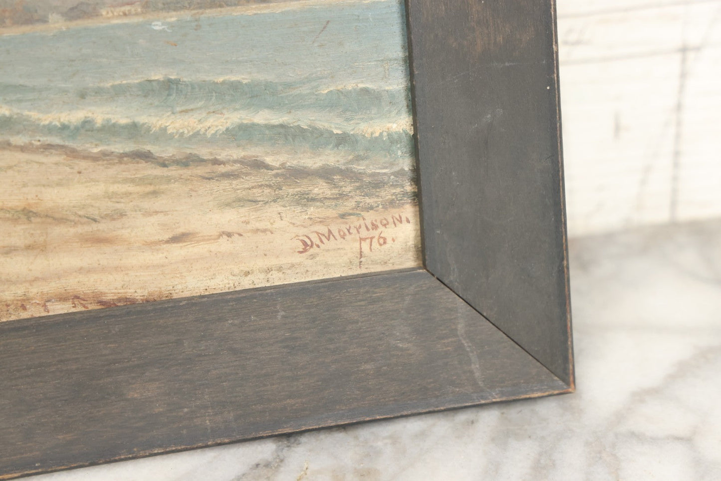 Lot 004 - Antique Painting On Board Of Revere Beach, Revere Massachusetts, Artist Signed D. Morrison, Dated 1876, In Frame, 14-1/2" x 11-1/2"