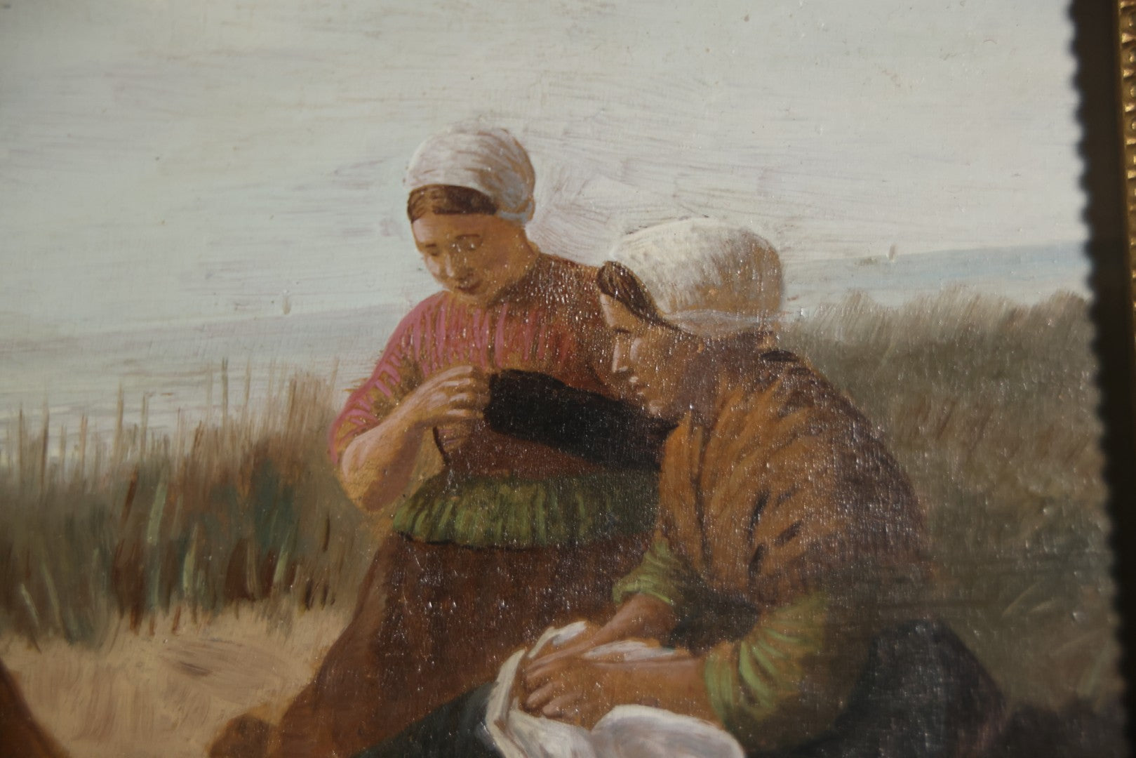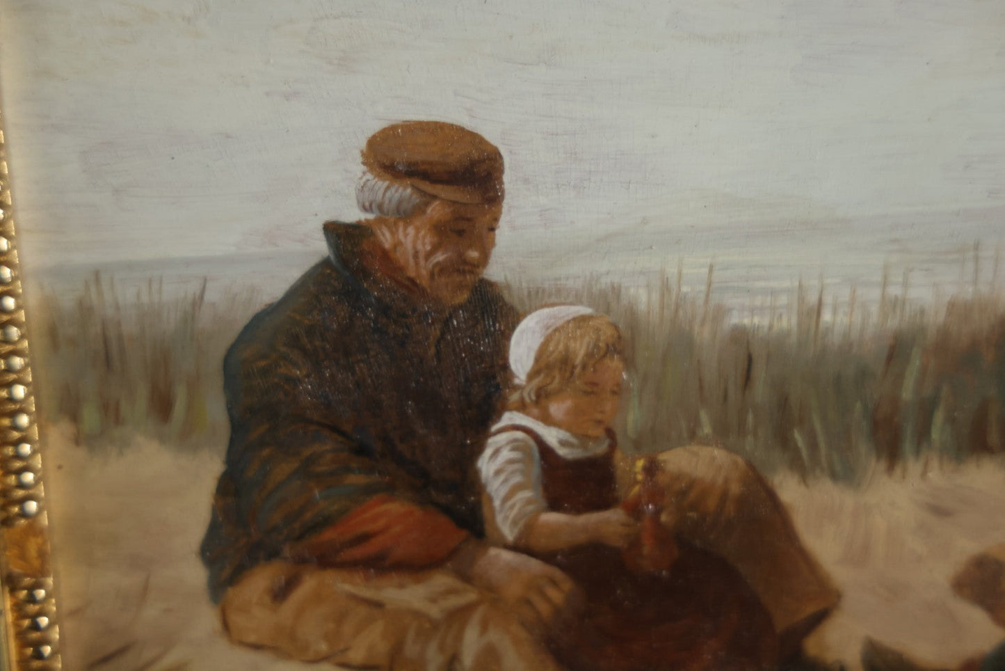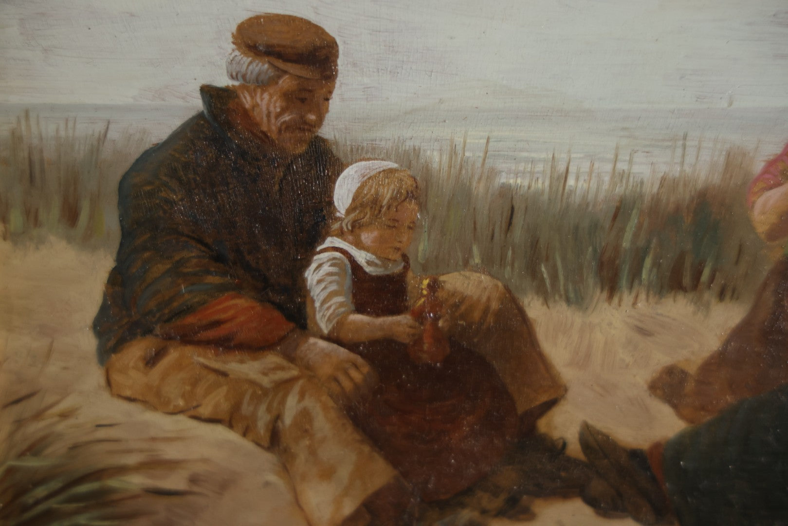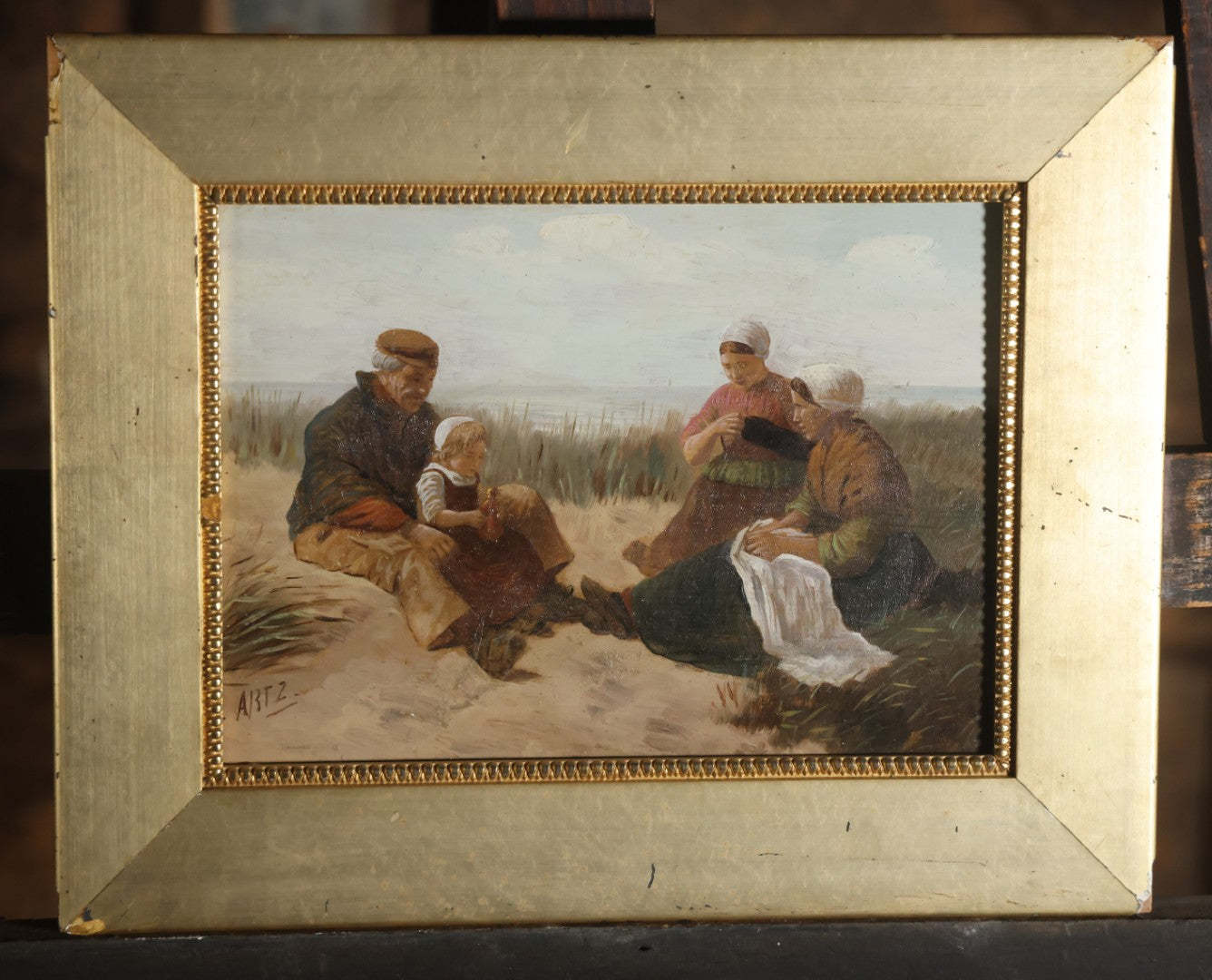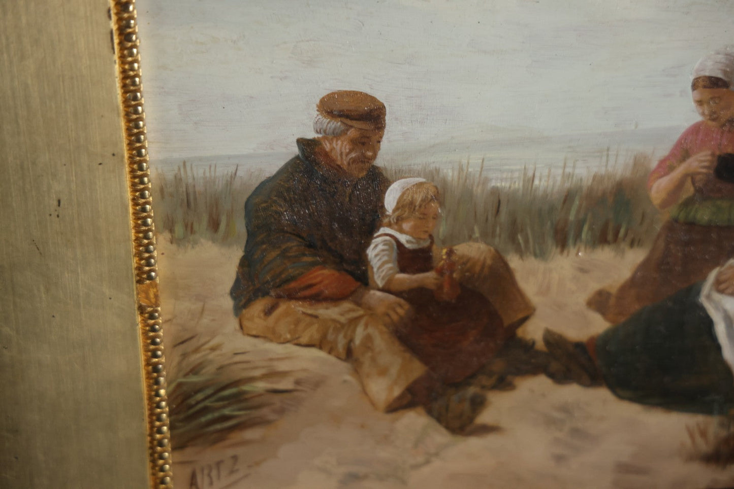 Antique Painting On Wood Panel, Family At The Beach, Artist Signed, David Adolph Constant Artz (1837–1890), Hague School, Dutch Realist, 13-3/4" x 11"