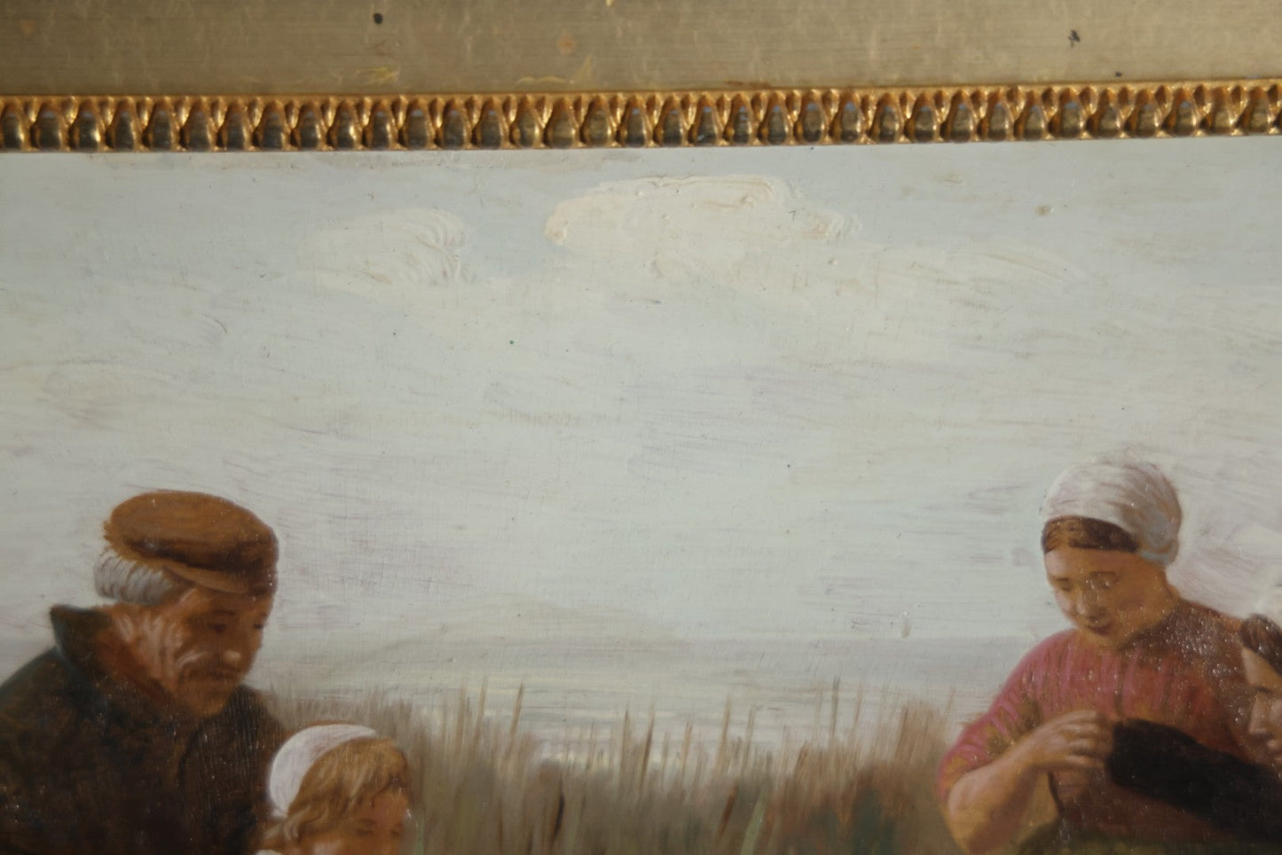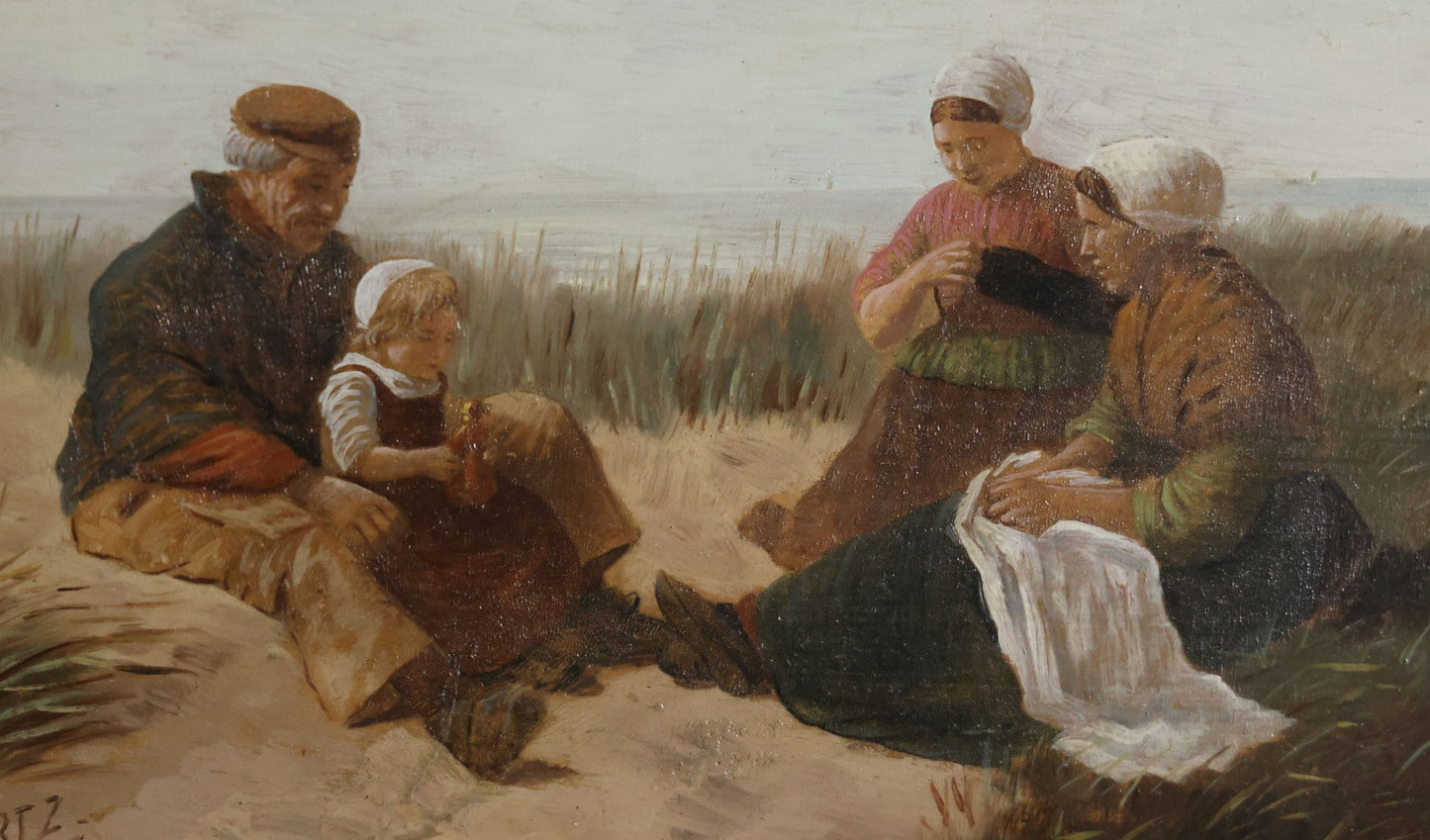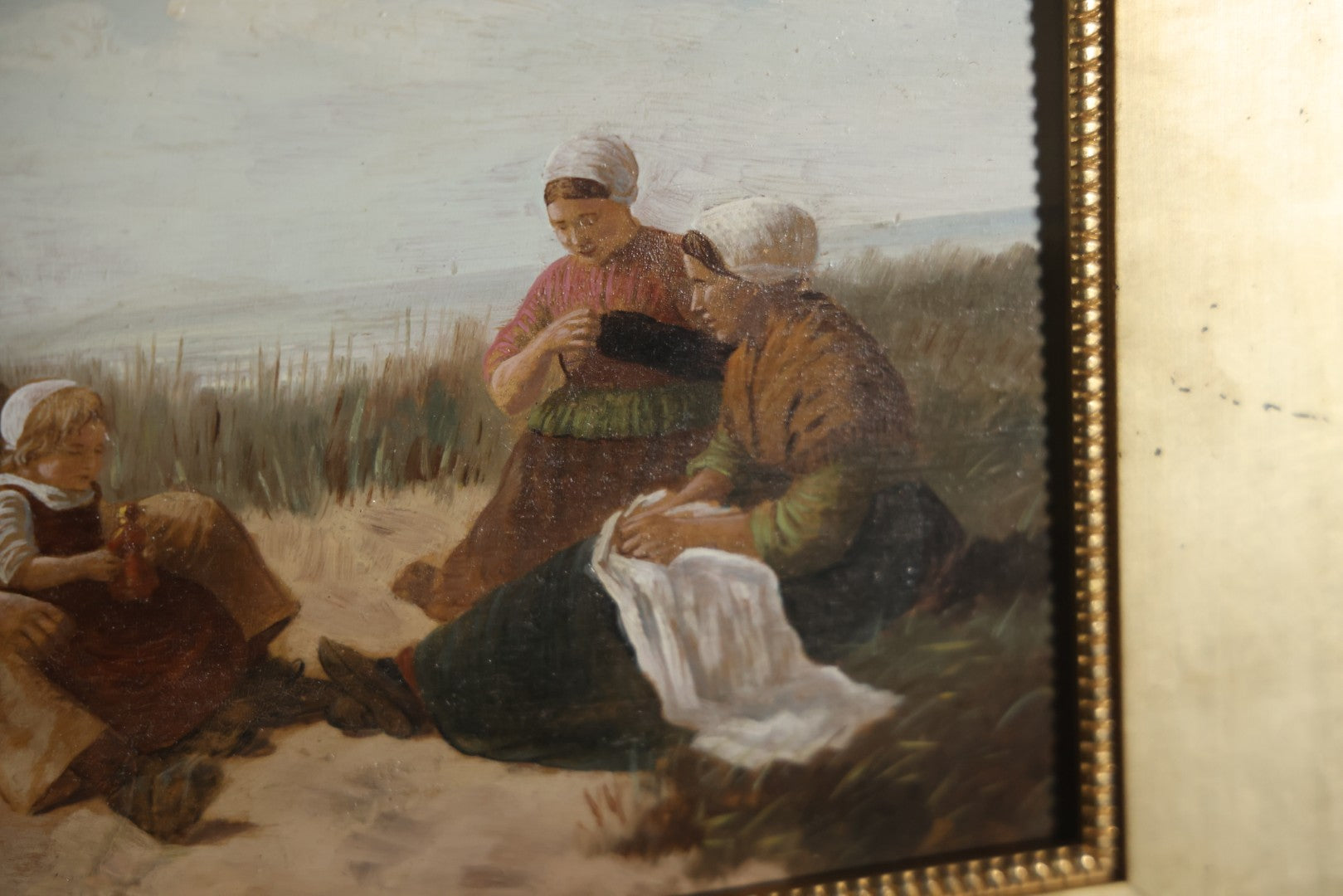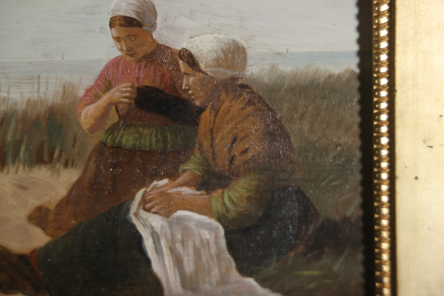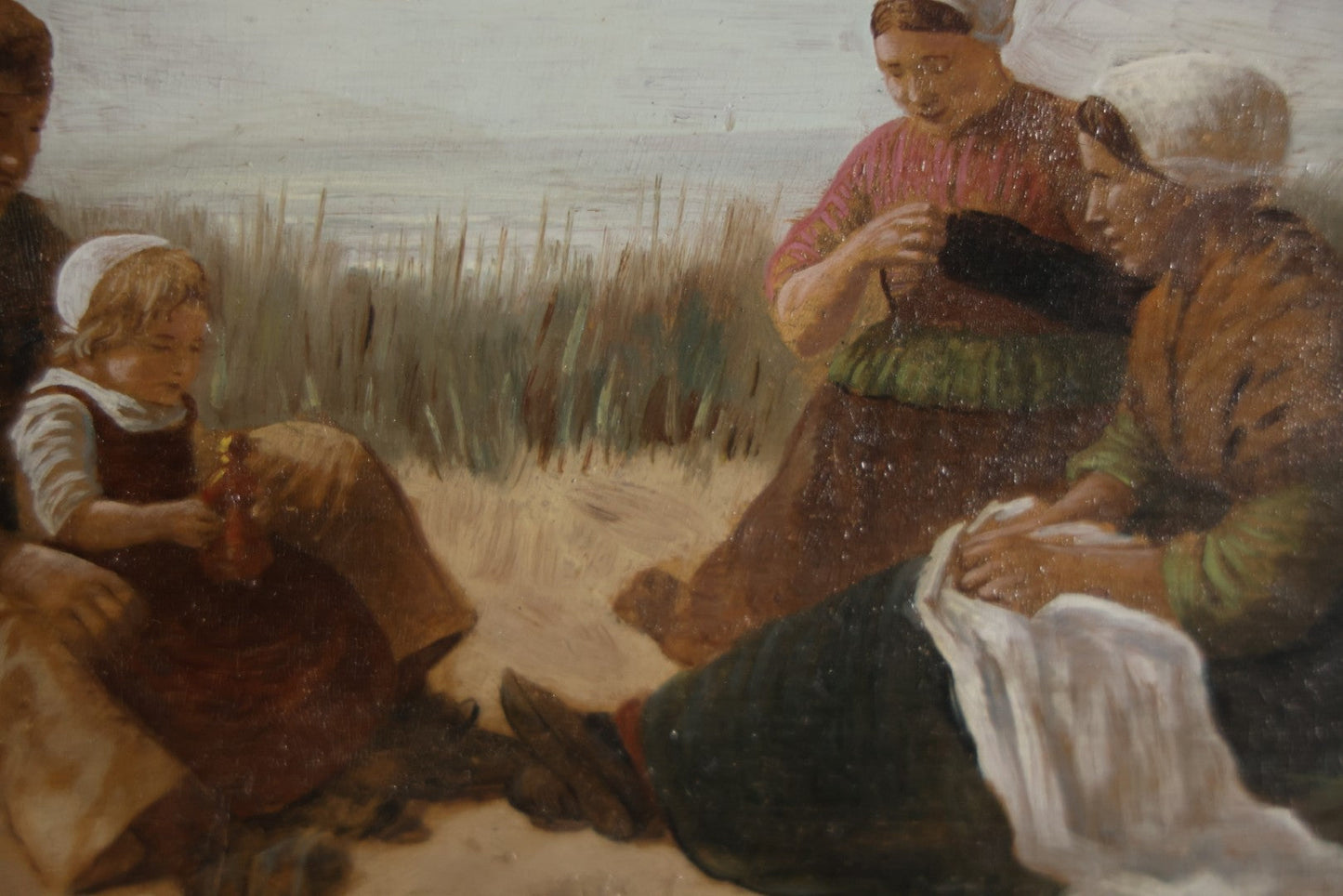 Antique Painting On Wood Panel, Family At The Beach, Artist Signed, David Adolph Constant Artz (1837–1890), Hague School, Dutch Realist, 13-3/4" x 11"