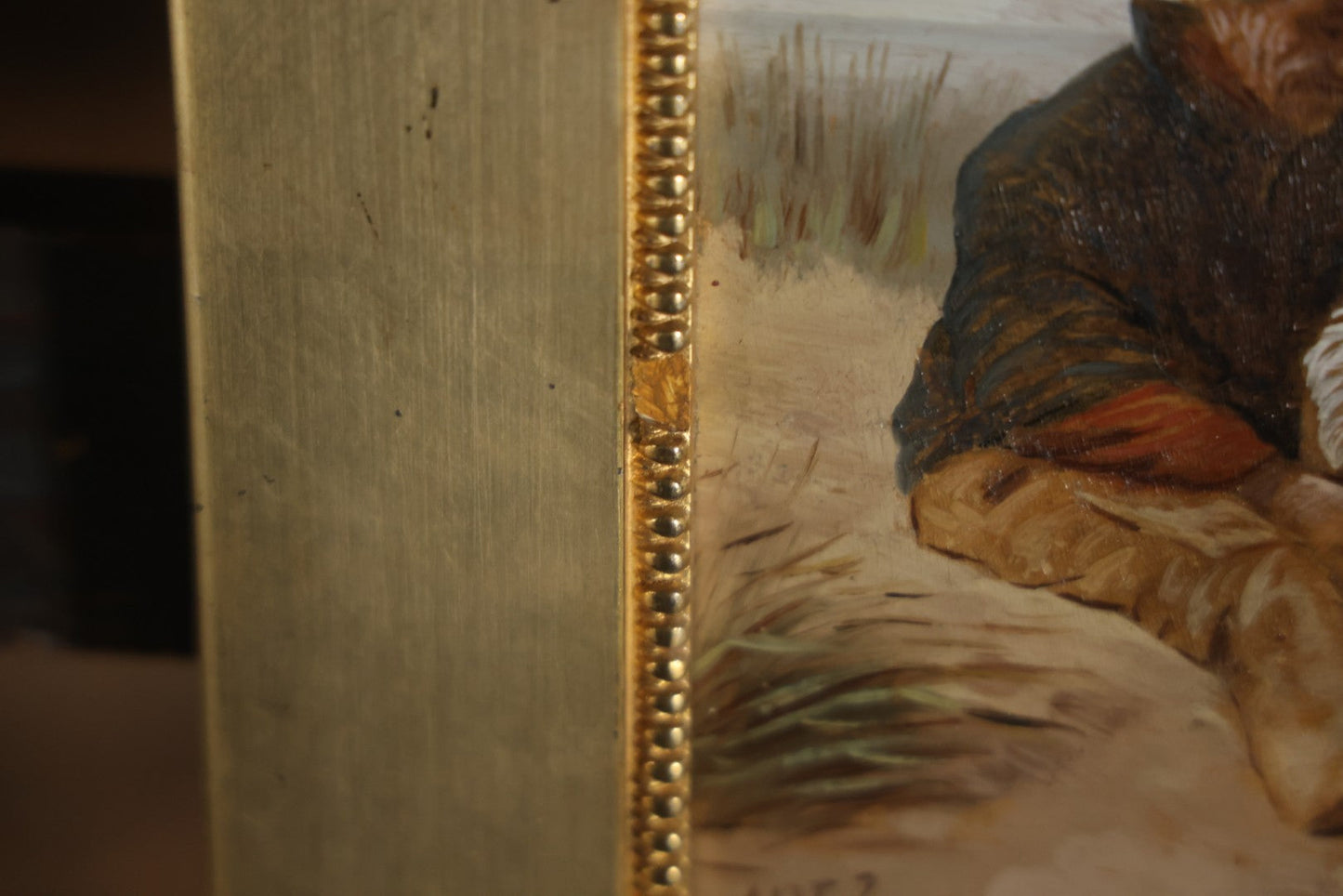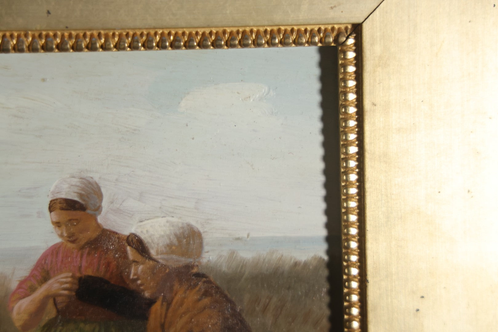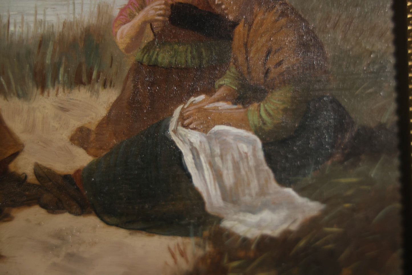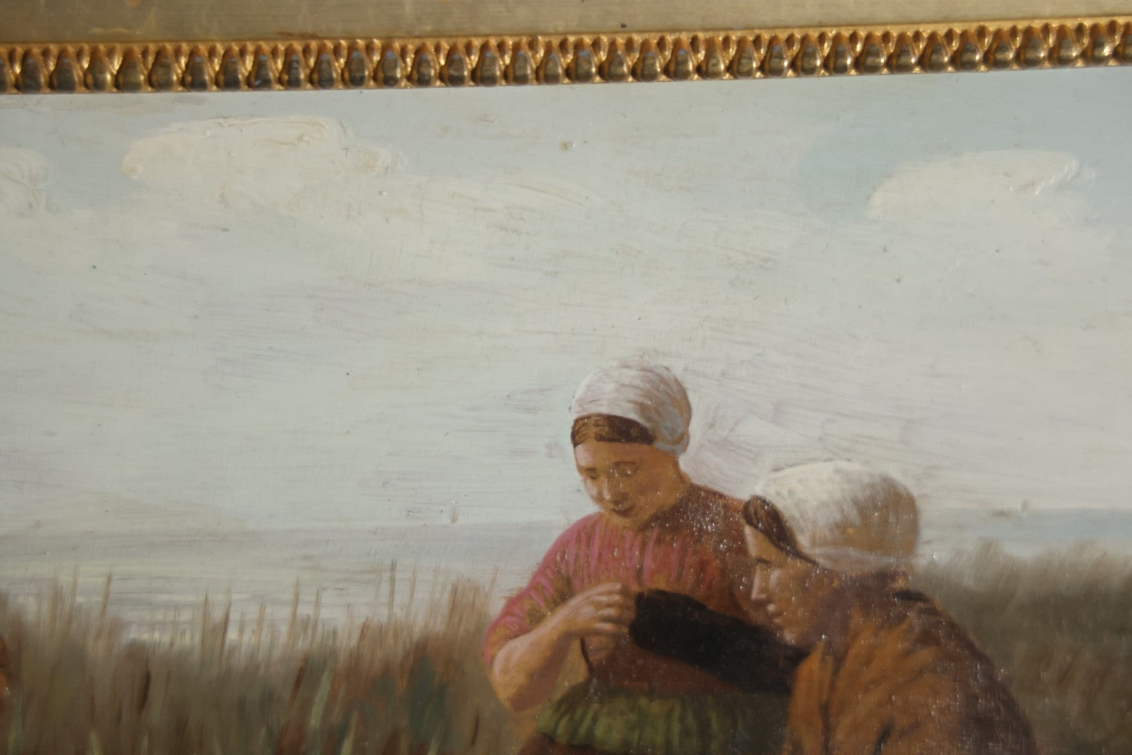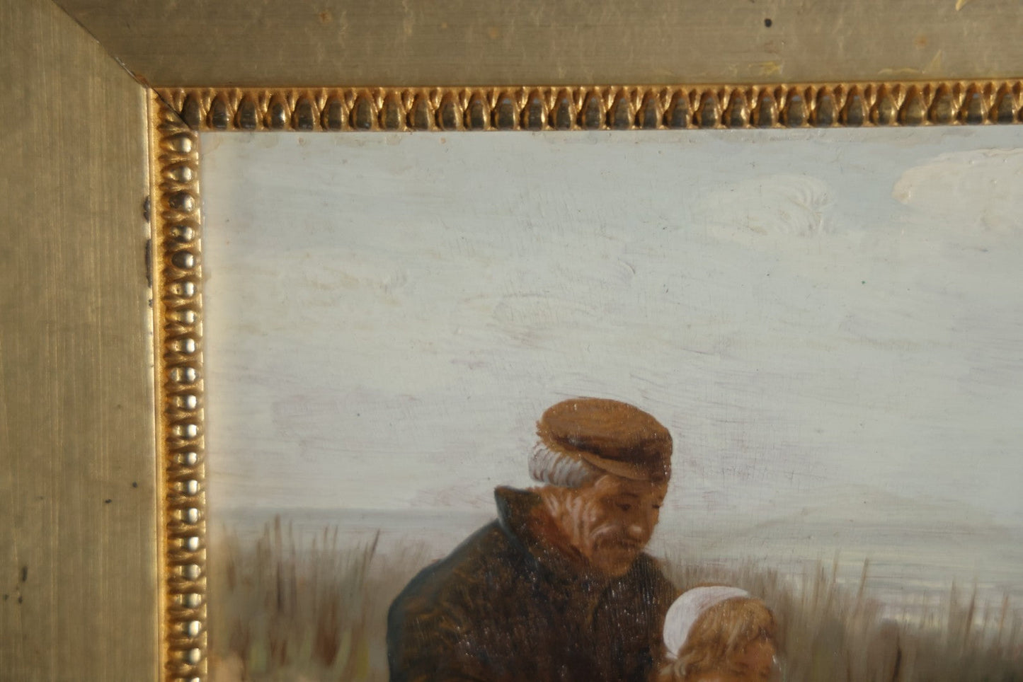 Antique Painting On Wood Panel, Family At The Beach, Artist Signed, David Adolph Constant Artz (1837–1890), Hague School, Dutch Realist, 13-3/4" x 11"