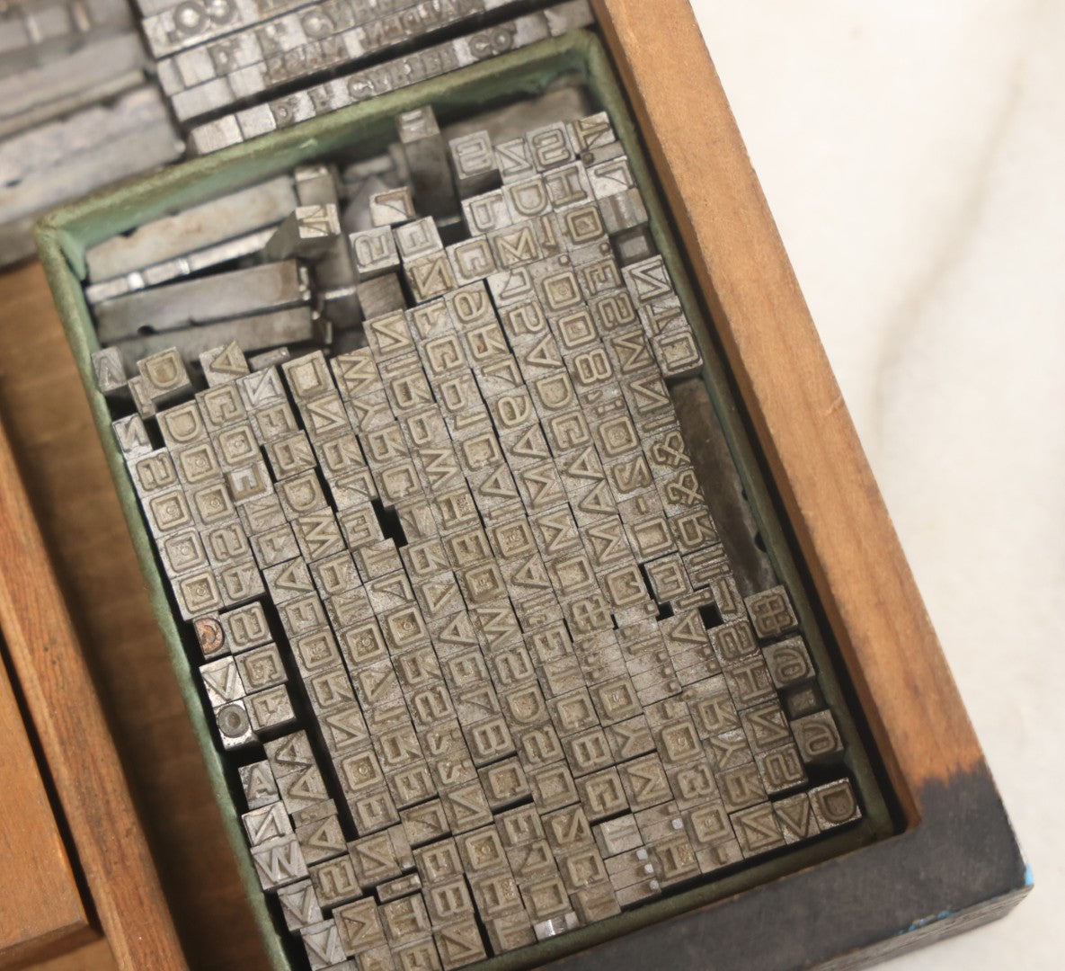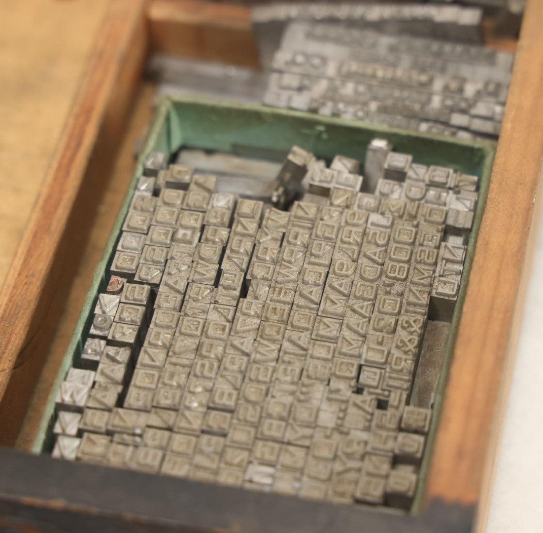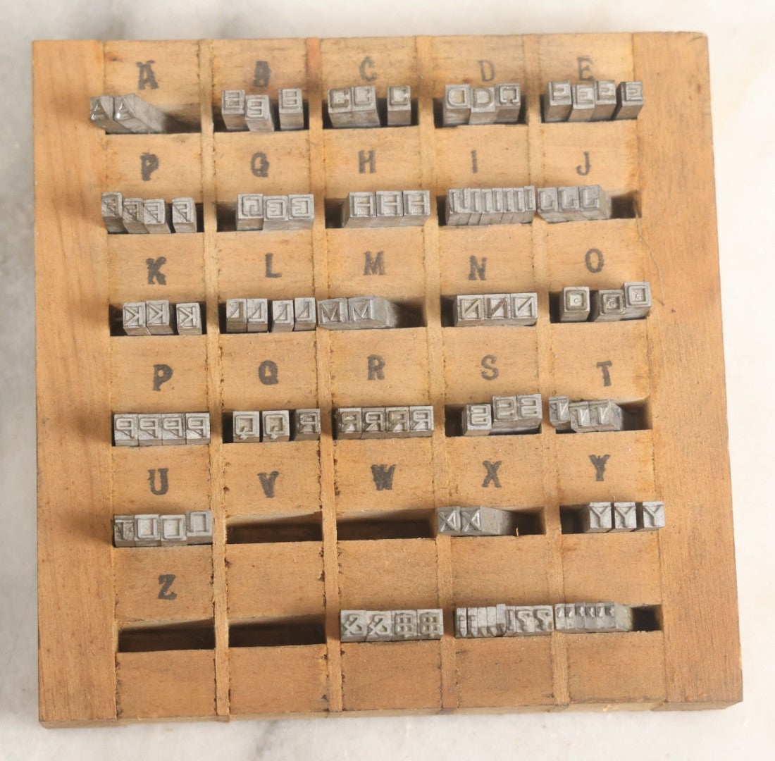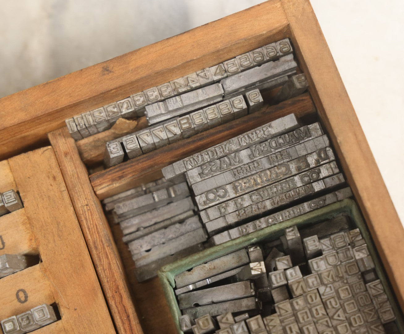 Lot 014 - Antique Printing Type Set With Hundreds Of Matching Letterpress Covering All Letters And Numbers In Custom Drawer Box With Internal Divider, From D.F. Carter, Co., Malden, Massachusetts, Base 9-1/2" x 6-3/4", Height 2-1/2"