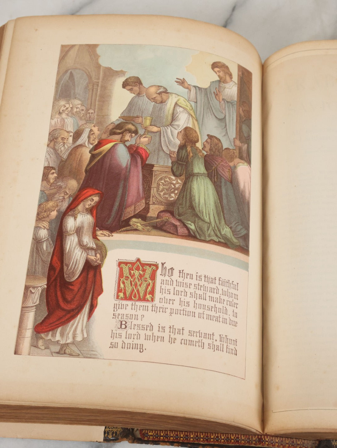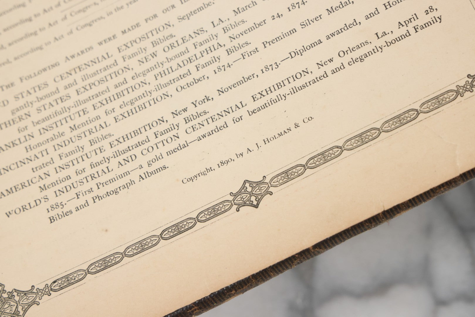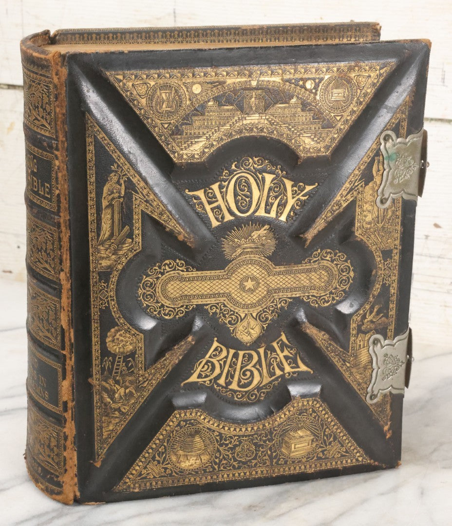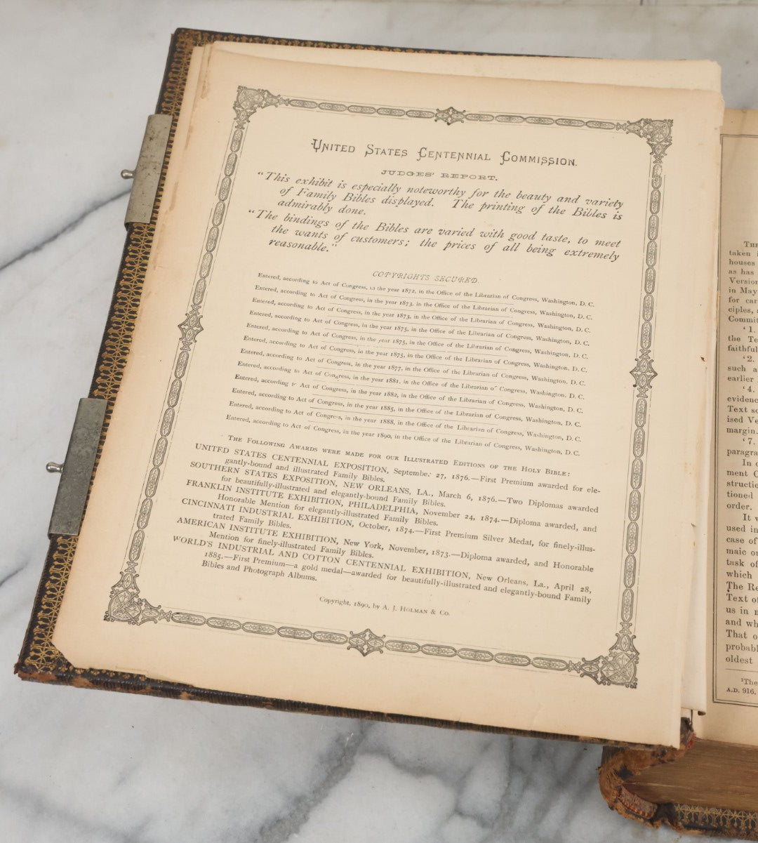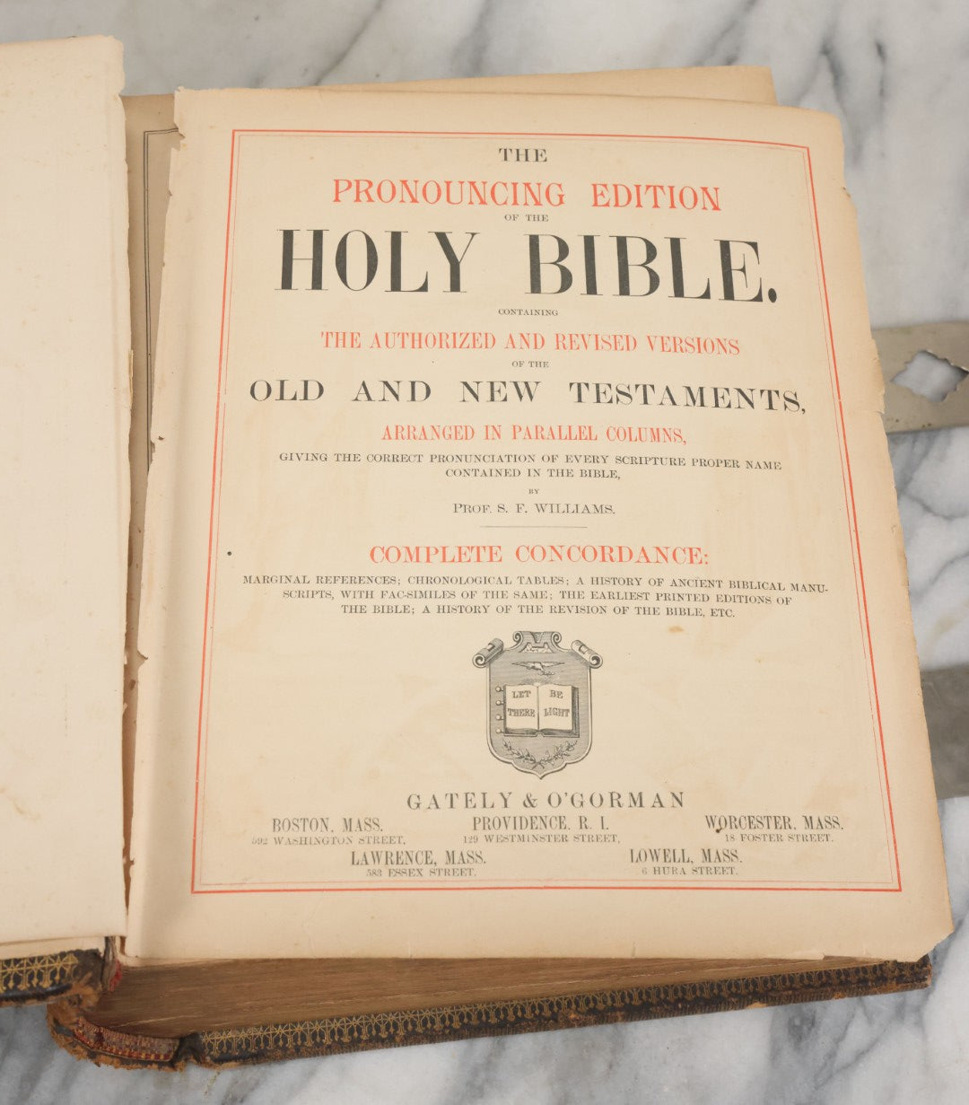 Lot 005 - Antique Pronouncing Parallel Holy Bible, Old And New Testaments, With Ornate Cover And Binding, Gately & O'Gorman, Publishers, Boston, Copyright 1890, By A.J. Holman & Co., Profusely Illustrated, Note Loose Pages