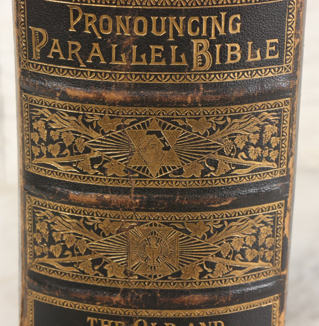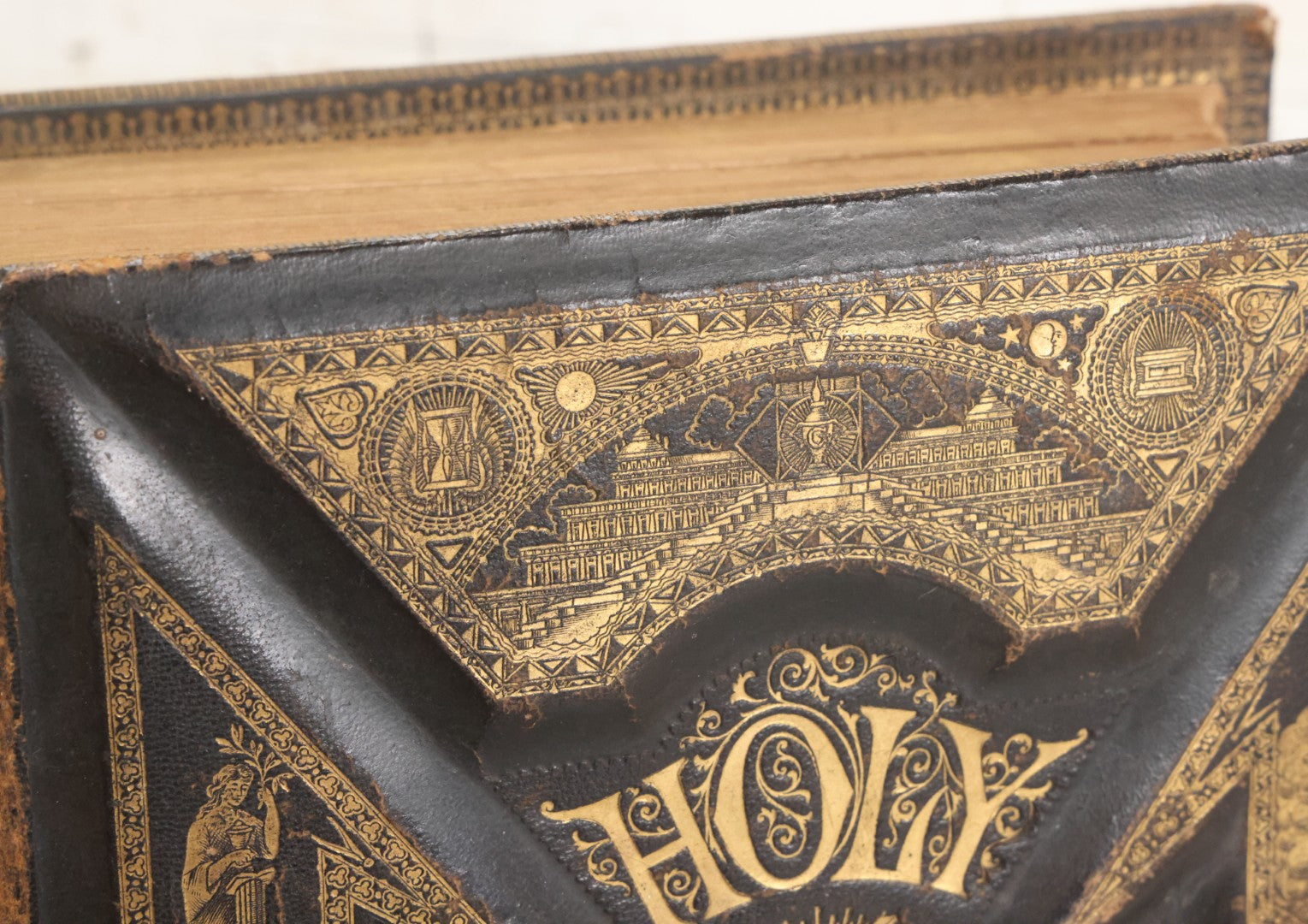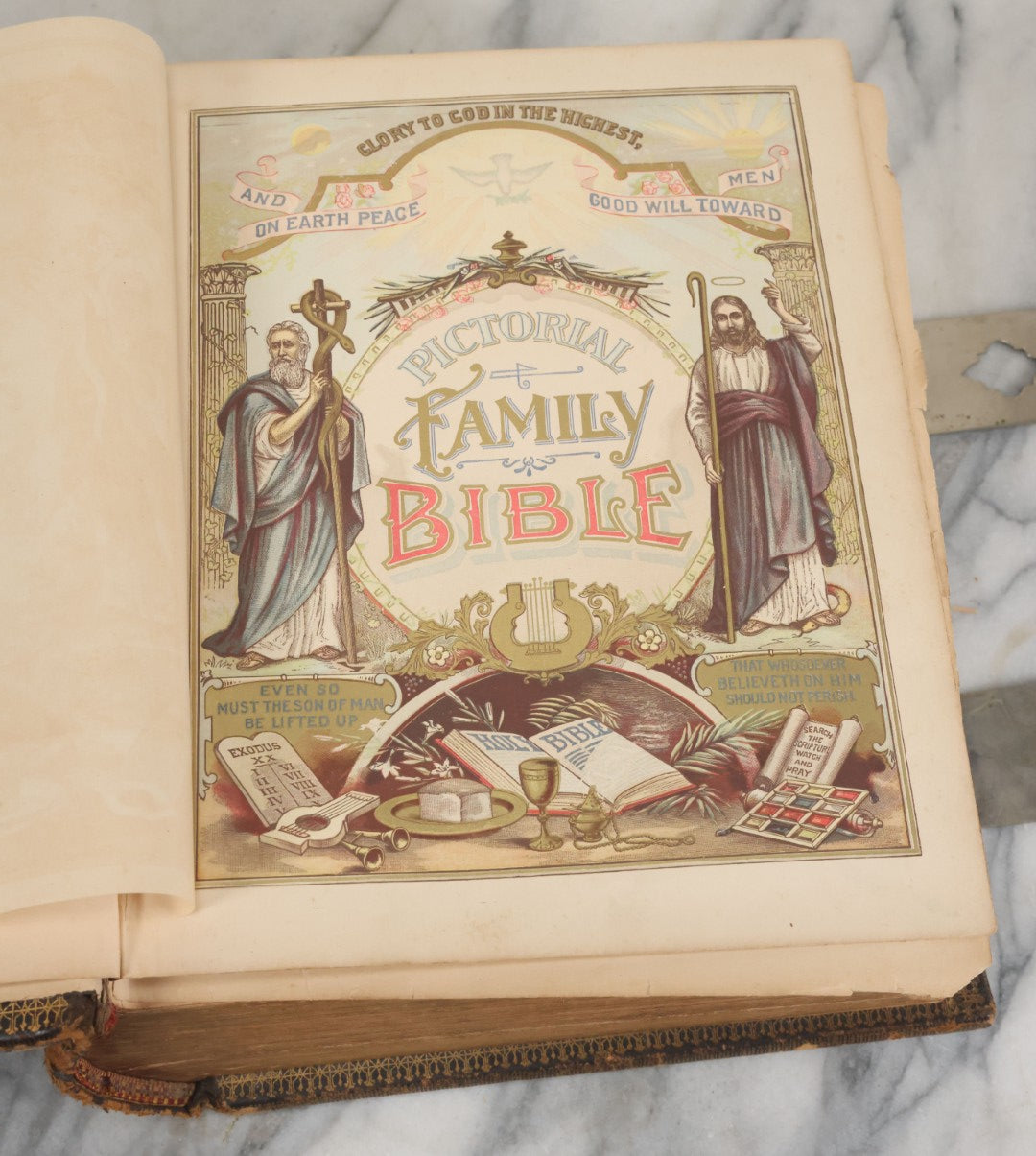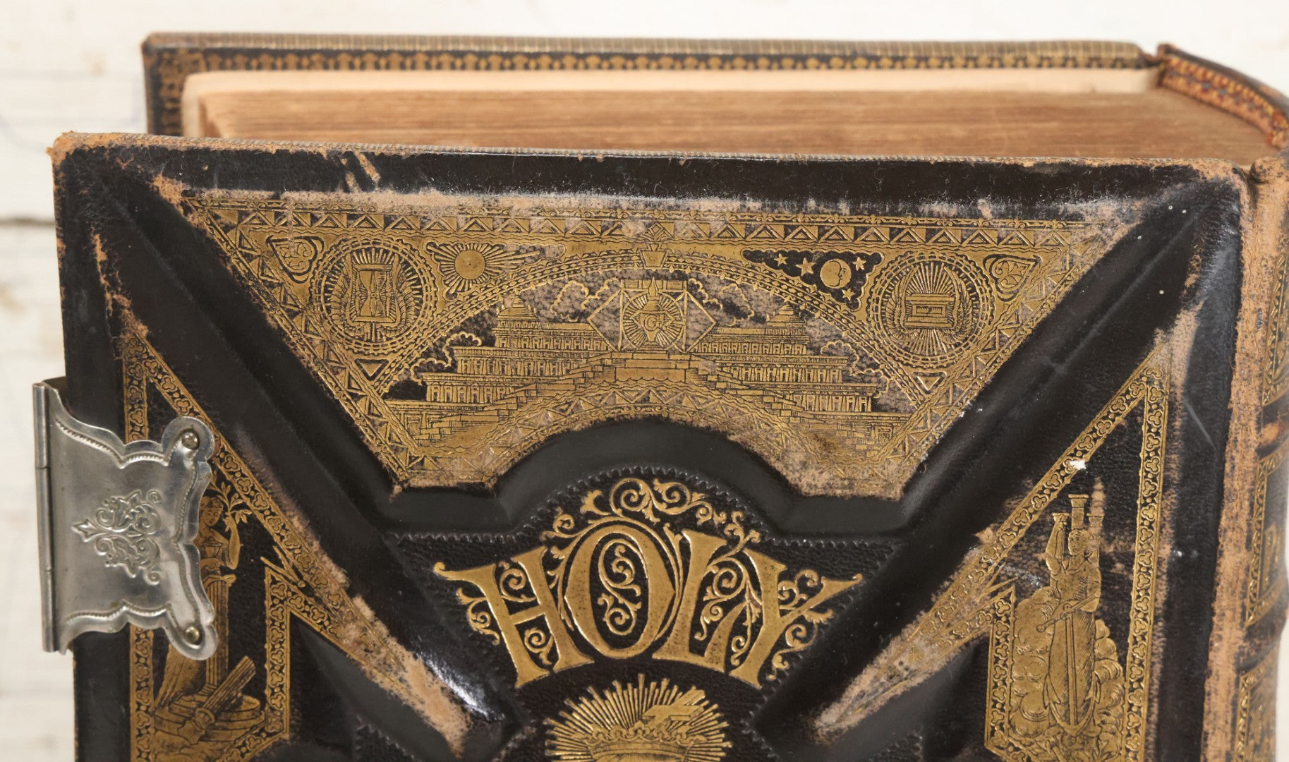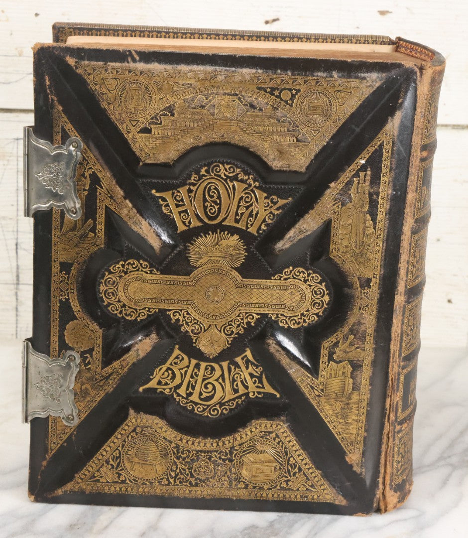 Lot 005 - Antique Pronouncing Parallel Holy Bible, Old And New Testaments, With Ornate Cover And Binding, Gately & O'Gorman, Publishers, Boston, Copyright 1890, By A.J. Holman & Co., Profusely Illustrated, Note Loose Pages