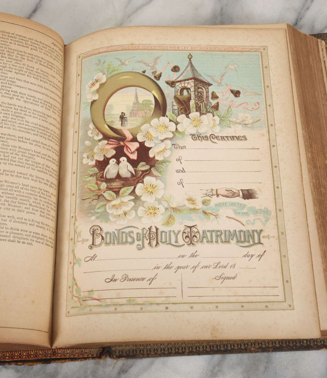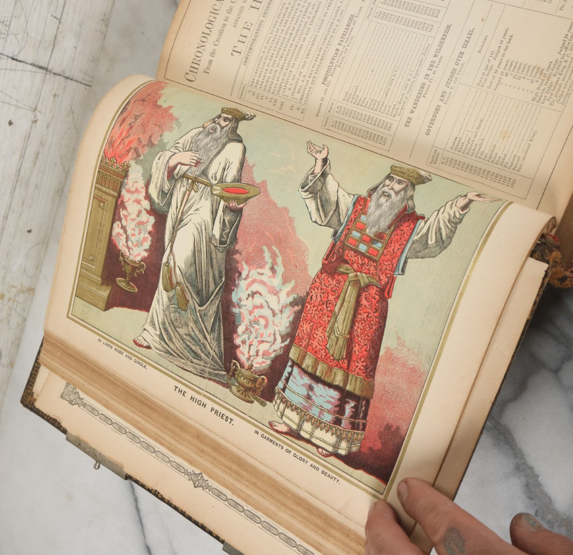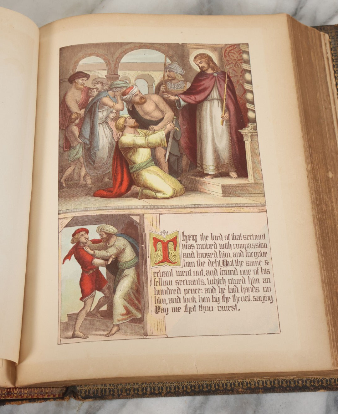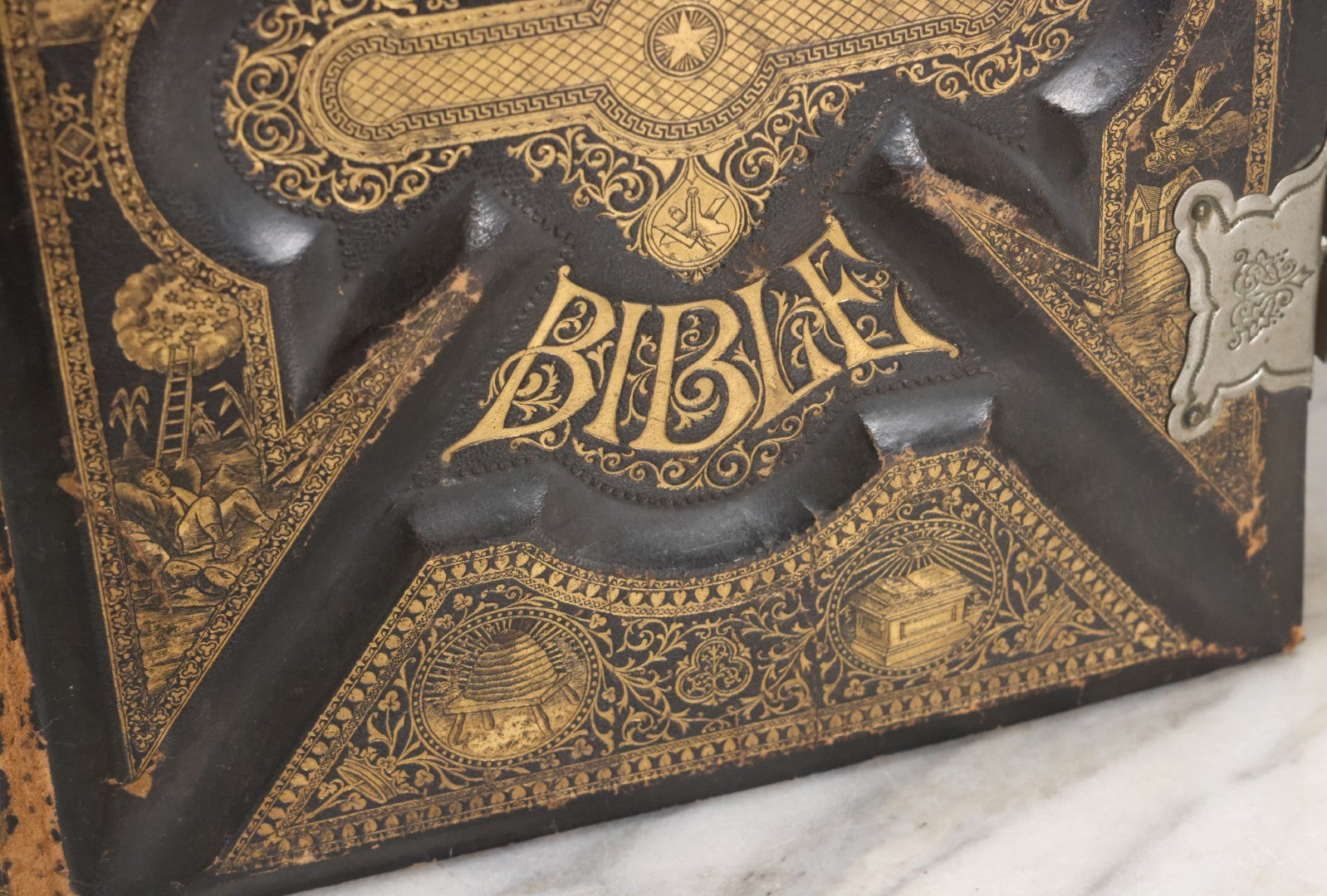 Lot 005 - Antique Pronouncing Parallel Holy Bible, Old And New Testaments, With Ornate Cover And Binding, Gately & O'Gorman, Publishers, Boston, Copyright 1890, By A.J. Holman & Co., Profusely Illustrated, Note Loose Pages