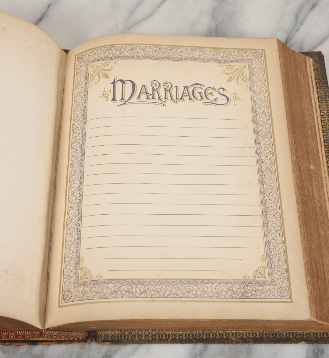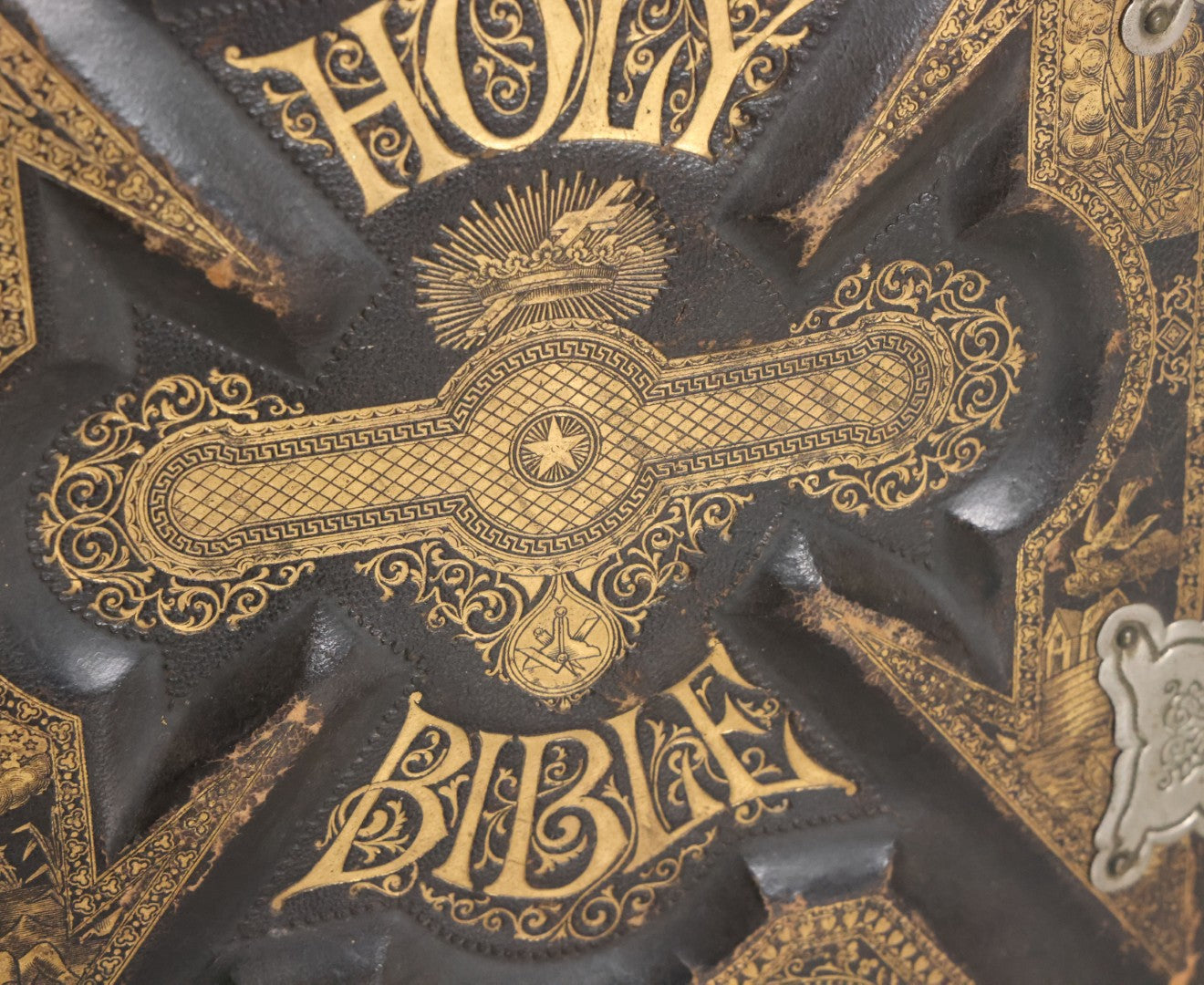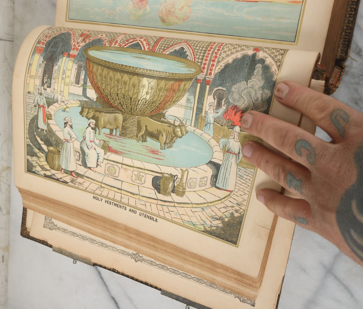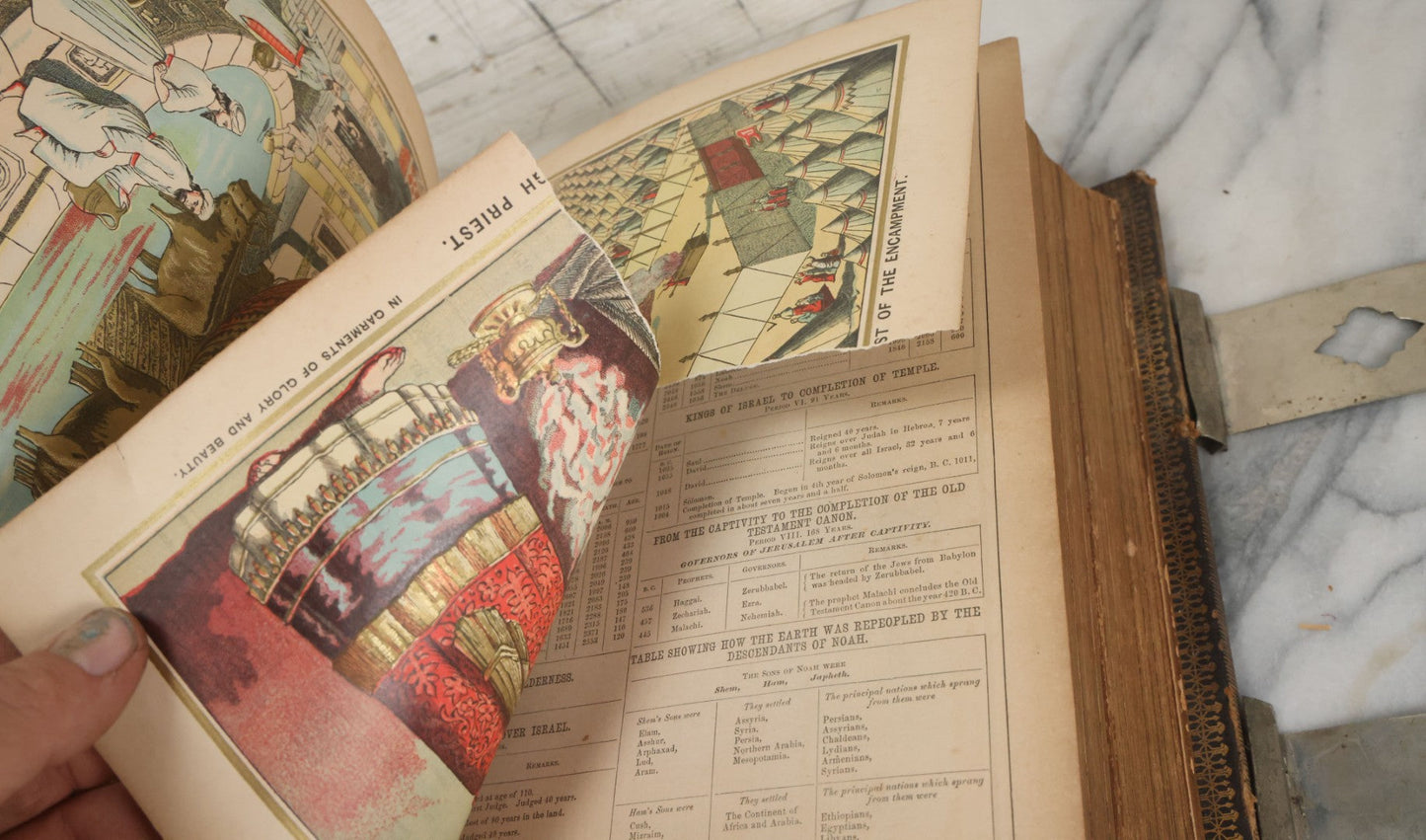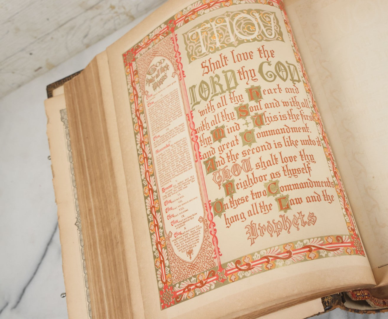 Lot 005 - Antique Pronouncing Parallel Holy Bible, Old And New Testaments, With Ornate Cover And Binding, Gately & O'Gorman, Publishers, Boston, Copyright 1890, By A.J. Holman & Co., Profusely Illustrated, Note Loose Pages