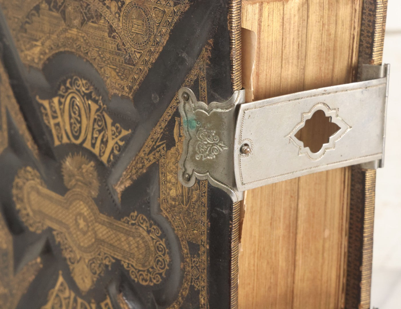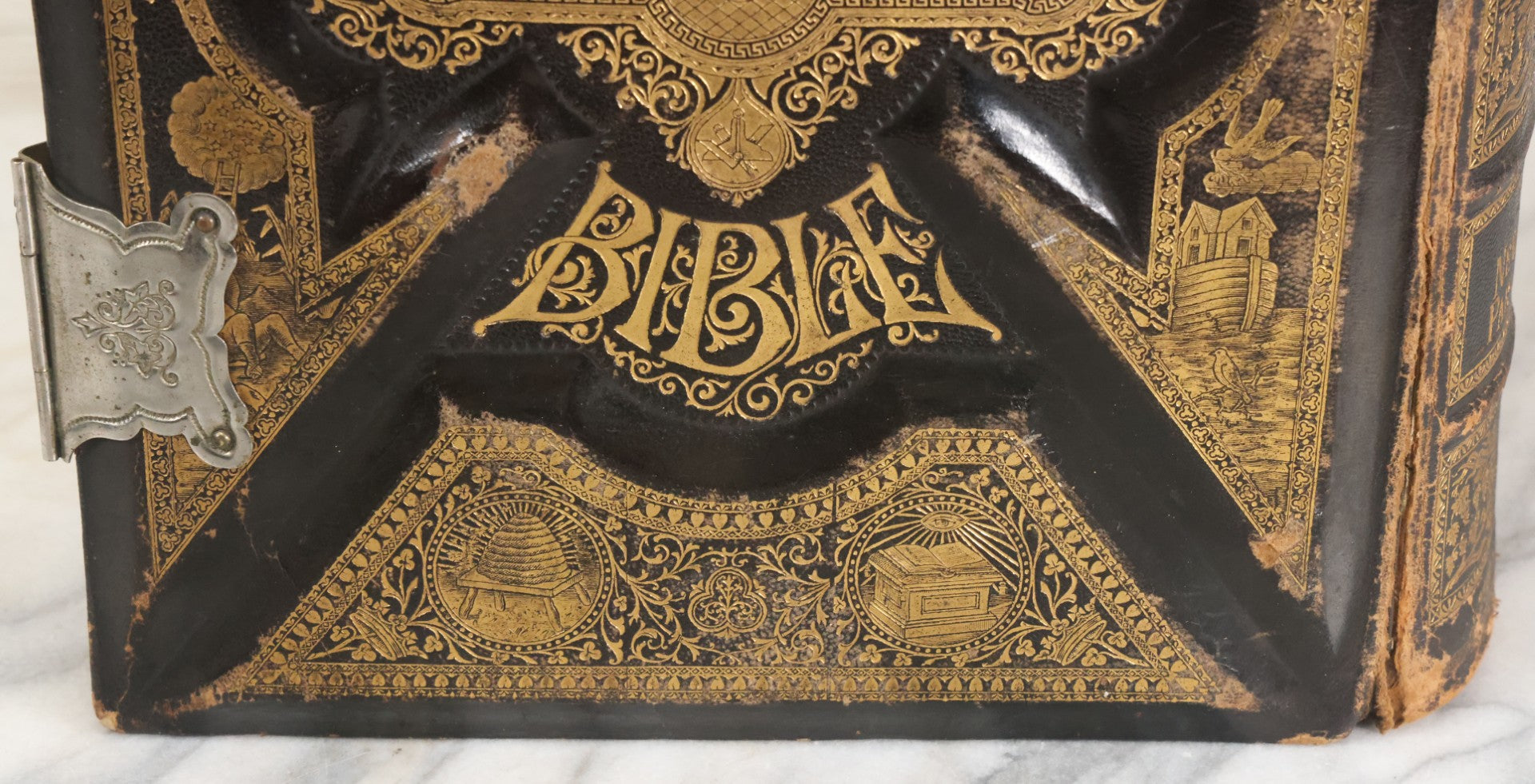 Your absentee bid for Lot 005 - Antique Pronouncing Parallel Holy Bible, Old And New Testaments, With Ornate Cover And Binding, Gately & O'Gorman, Publishers, Boston, Copyright 1890, By A.J. Holman & Co., Profusely Illustrated, Note Loose Pages was successfully submitted—thank you for bidding with us!
