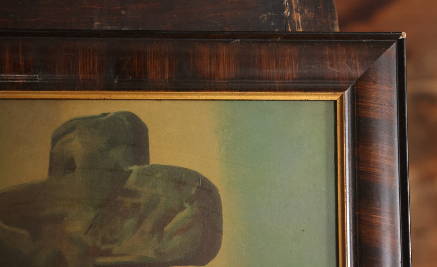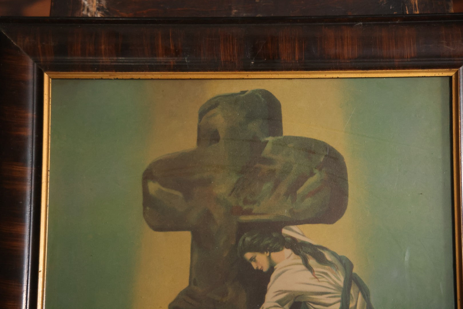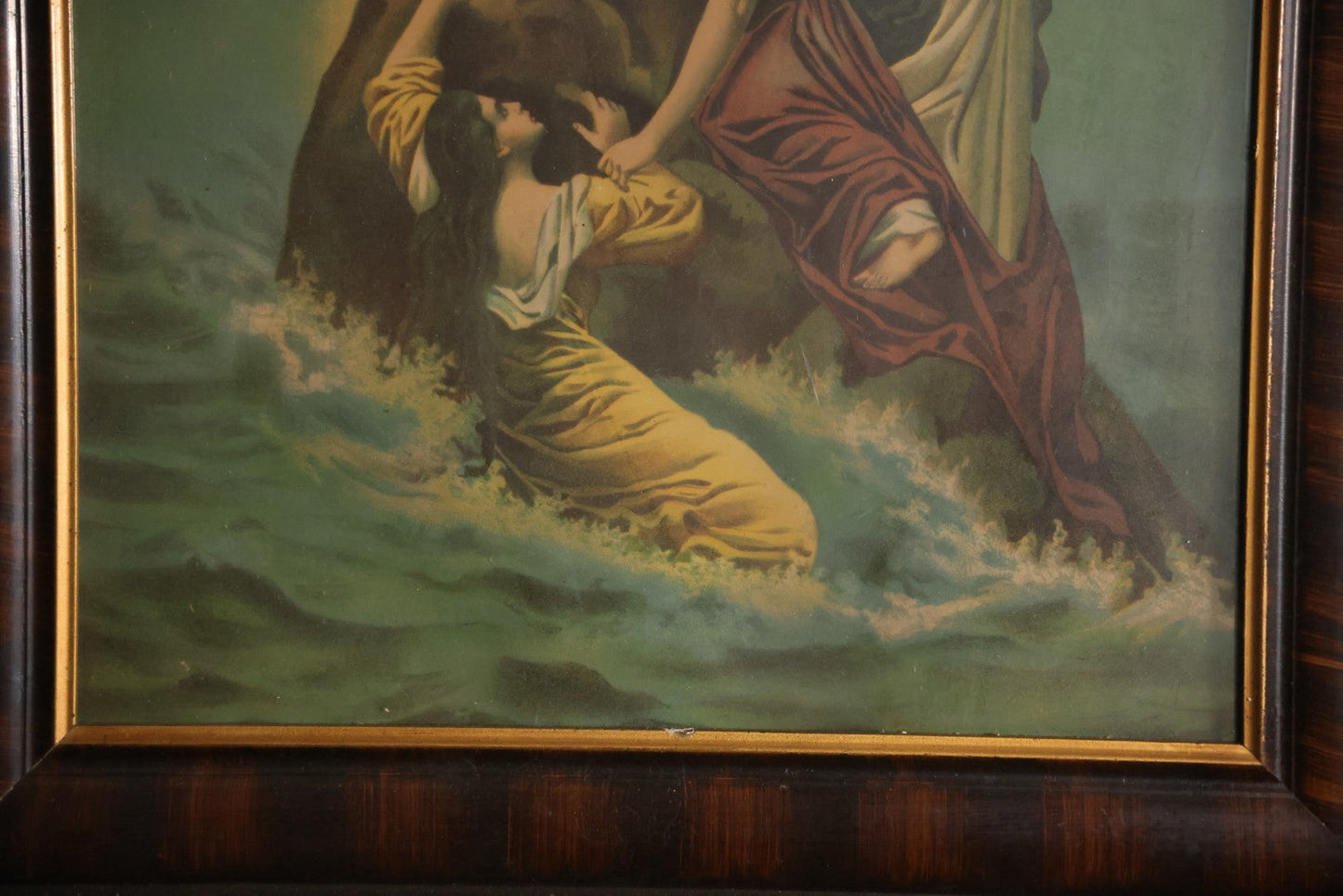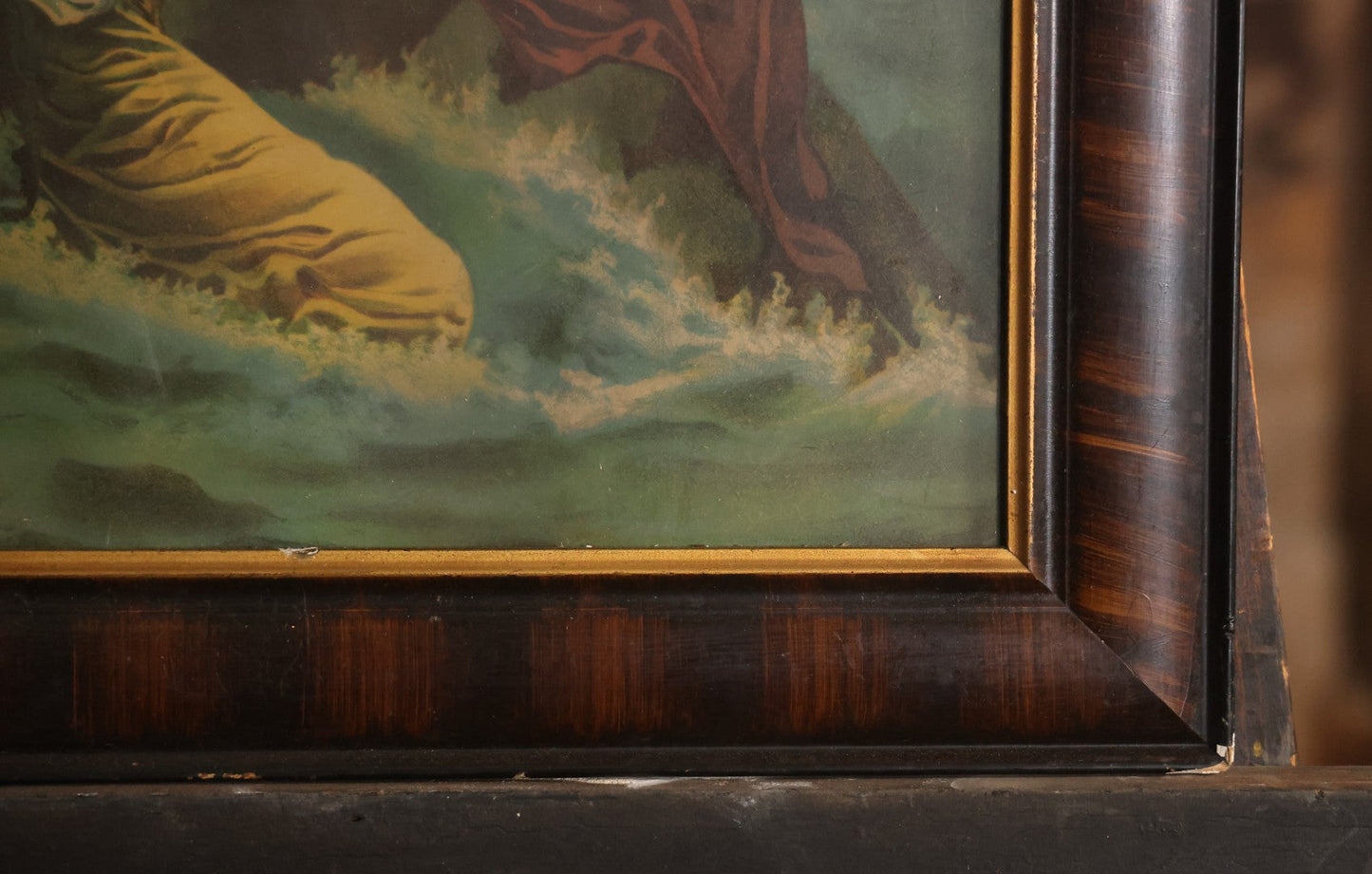 Antique "Rock Of Ages" Chromolithograph Religious Print In Wood Frame, 20-1/2" x 24-1/2"