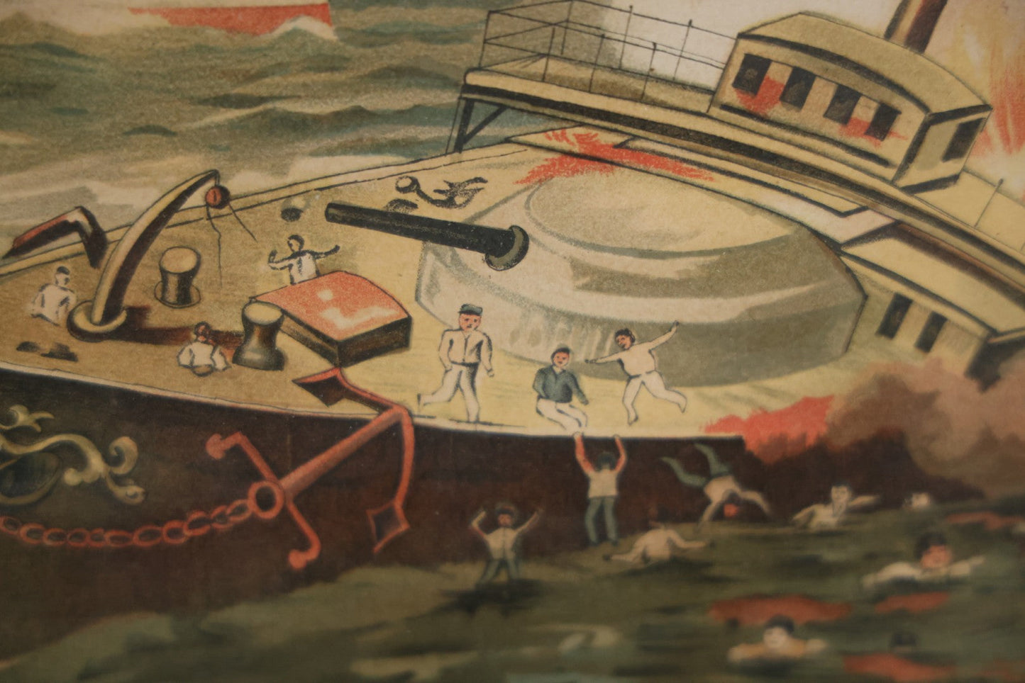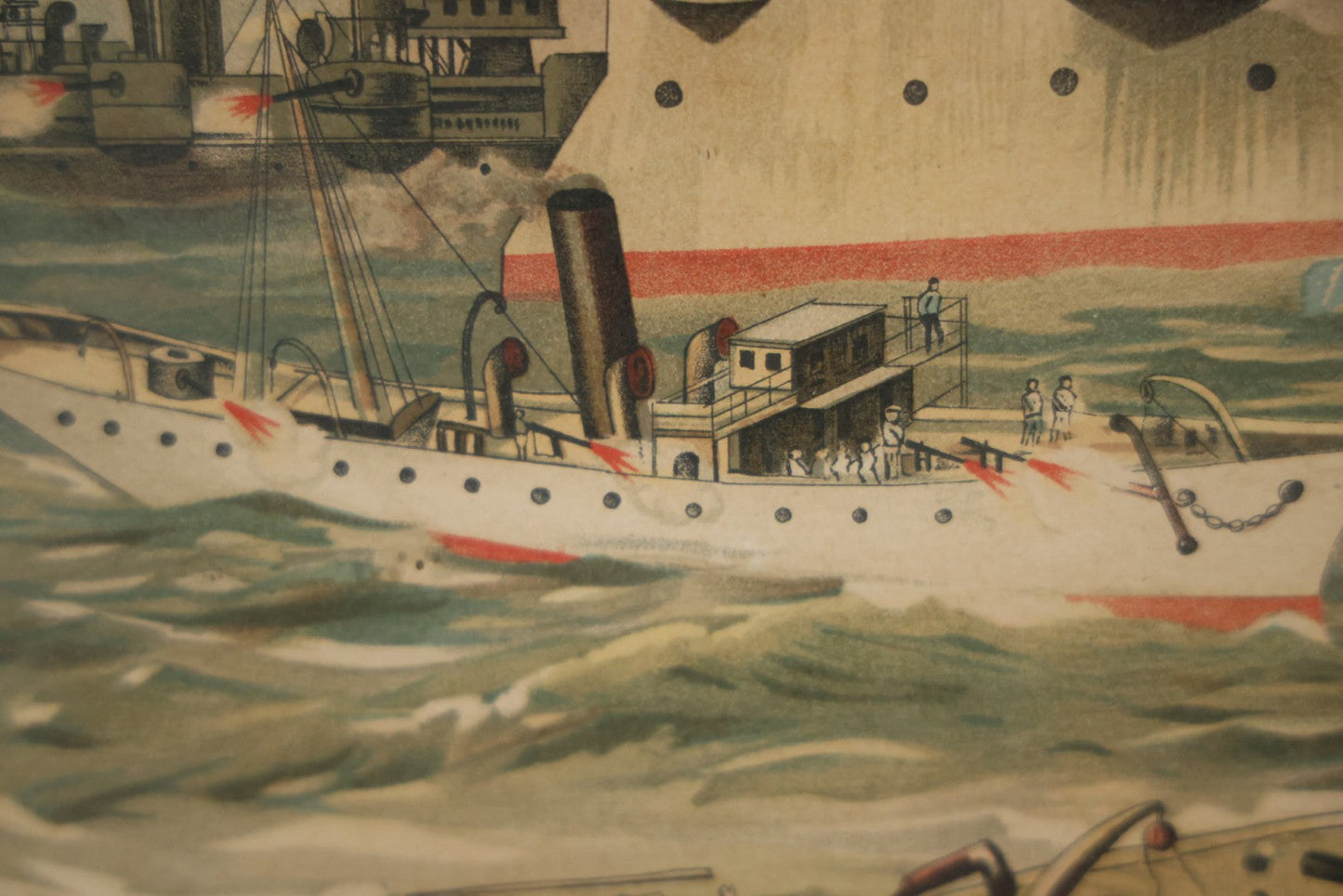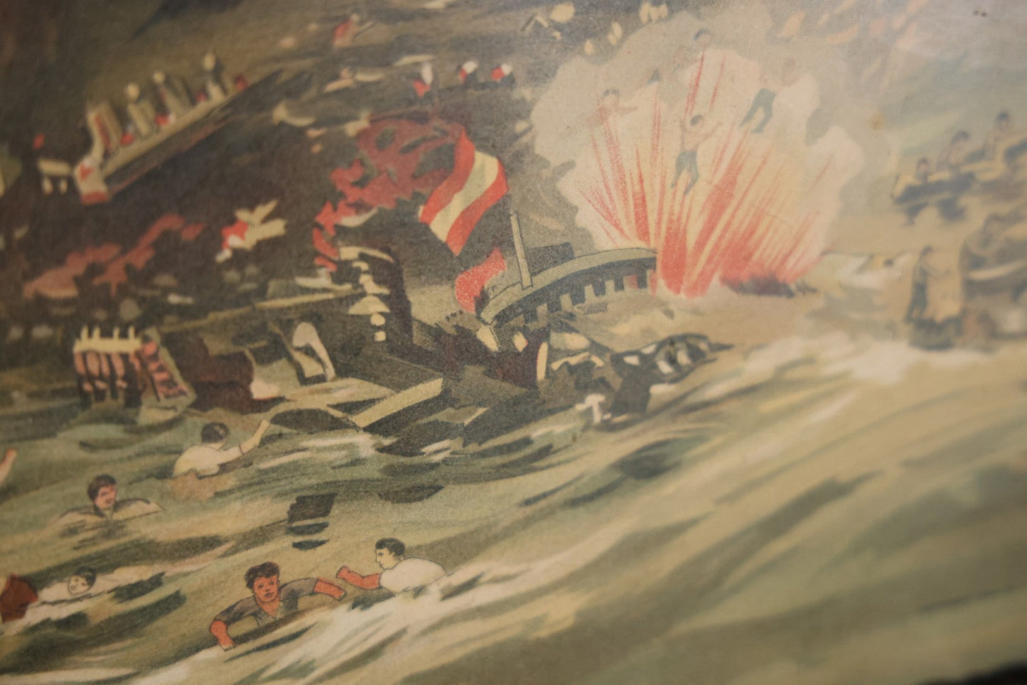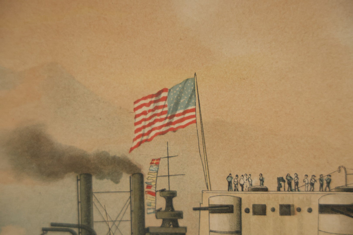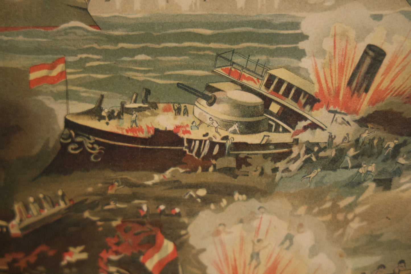 Antique Spanish American War Chromolithograph Print Depicting The Destruction Of Admiral Cervera's Fleet At Santiago De Cuba, July 3rd, 1898, In Large Ornate Frame, After Xanthus Russell Smith, Copyright 1898 By J. Hoover & Son, Philadelphia, 39" x 31"