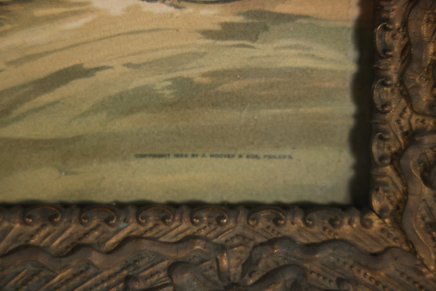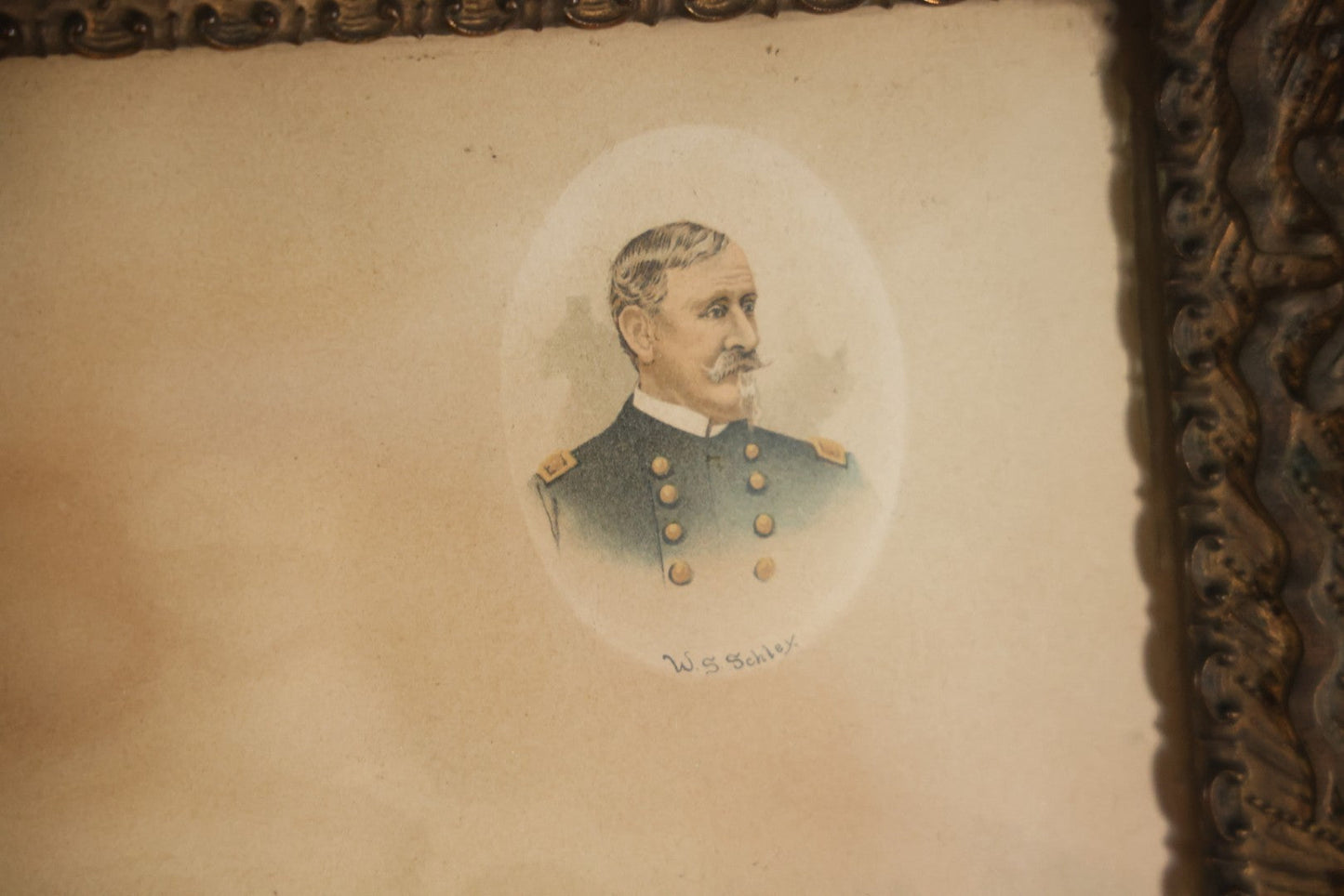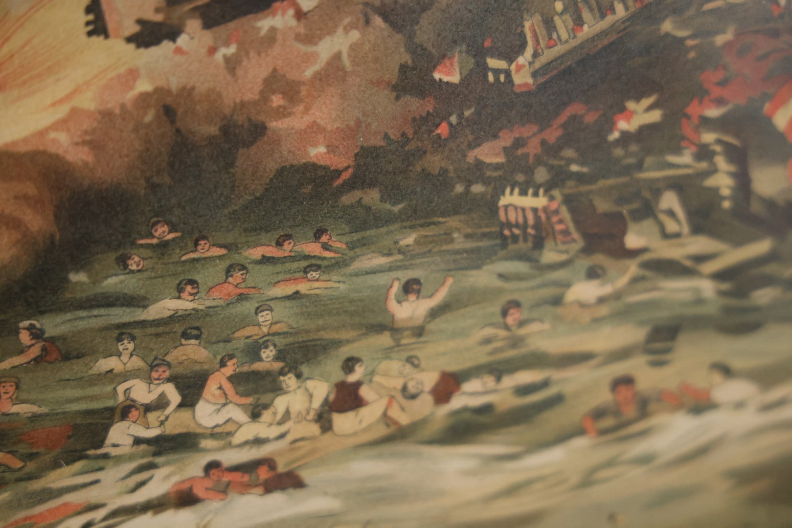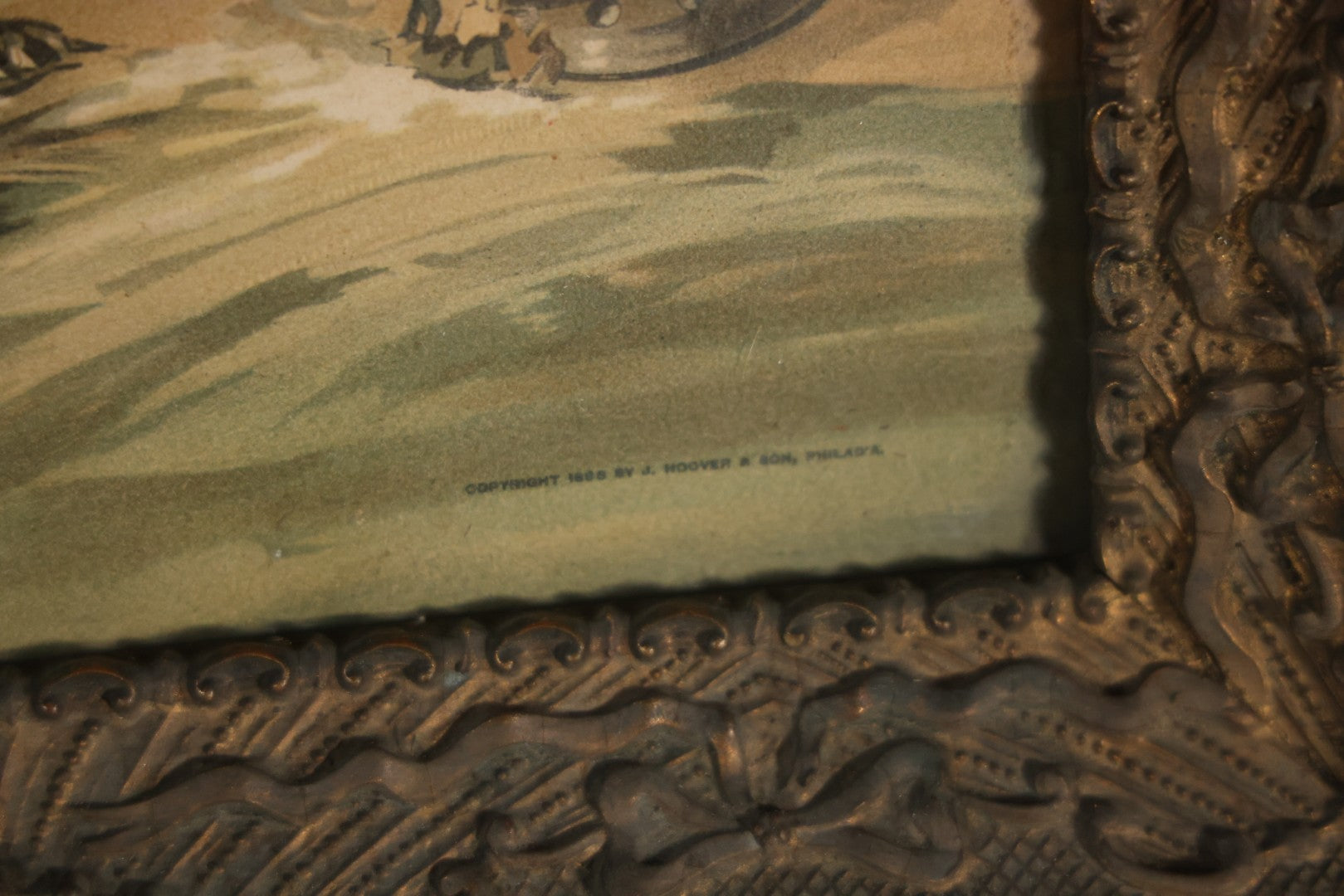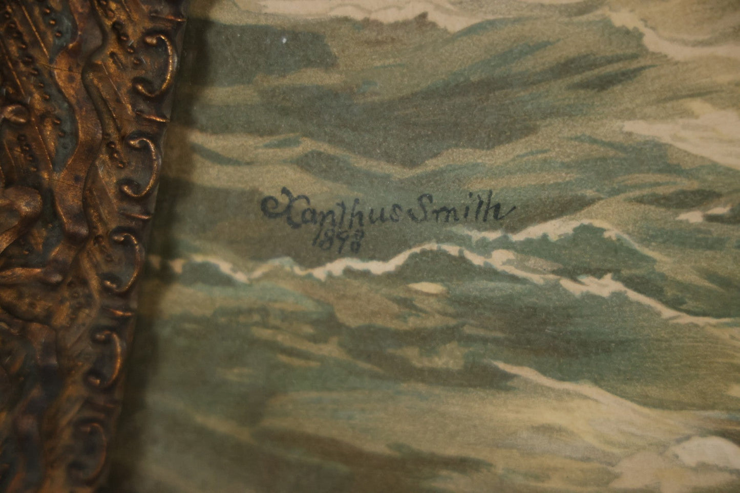 Antique Spanish American War Chromolithograph Print Depicting The Destruction Of Admiral Cervera's Fleet At Santiago De Cuba, July 3rd, 1898, In Large Ornate Frame, After Xanthus Russell Smith, Copyright 1898 By J. Hoover & Son, Philadelphia, 39" x 31"