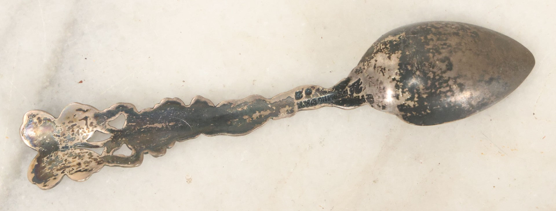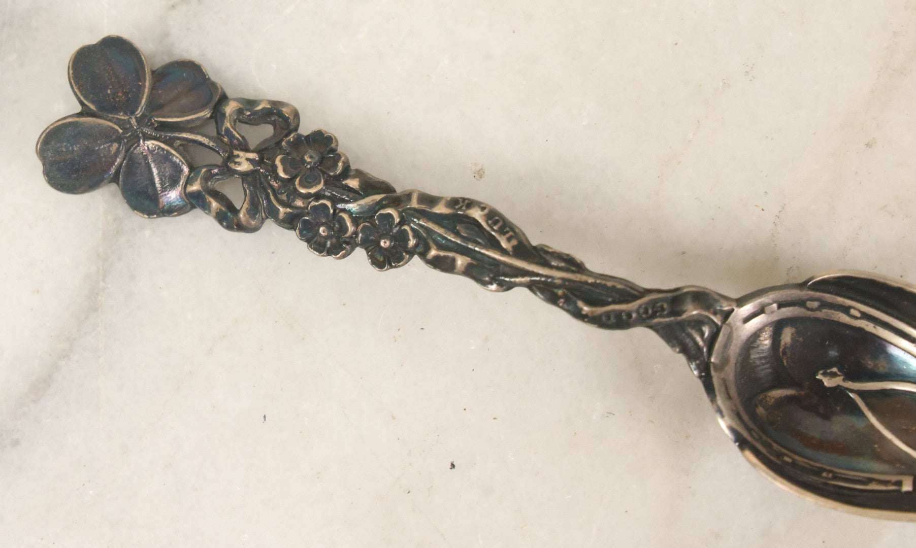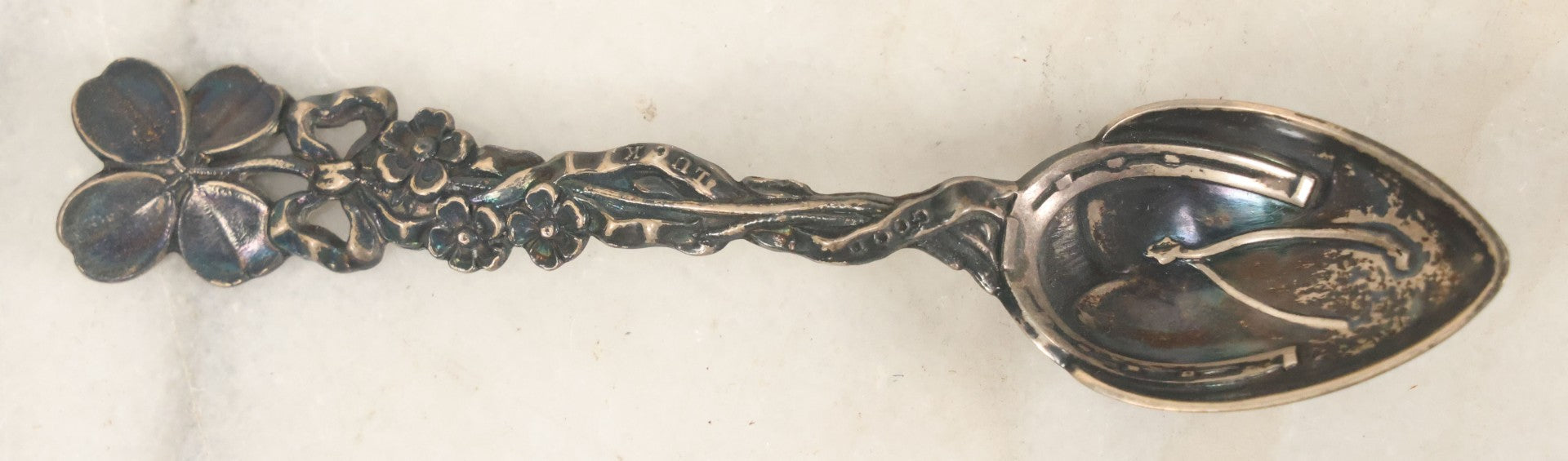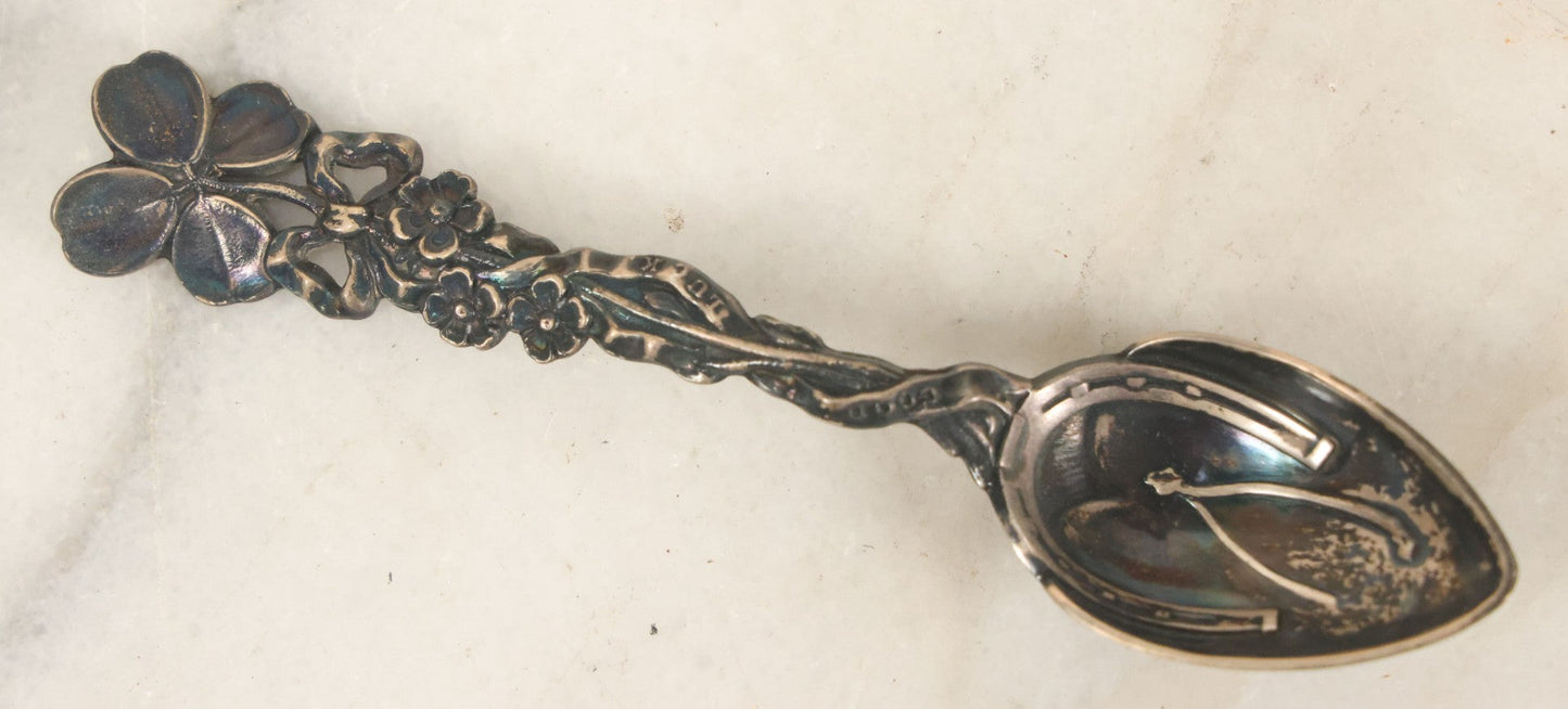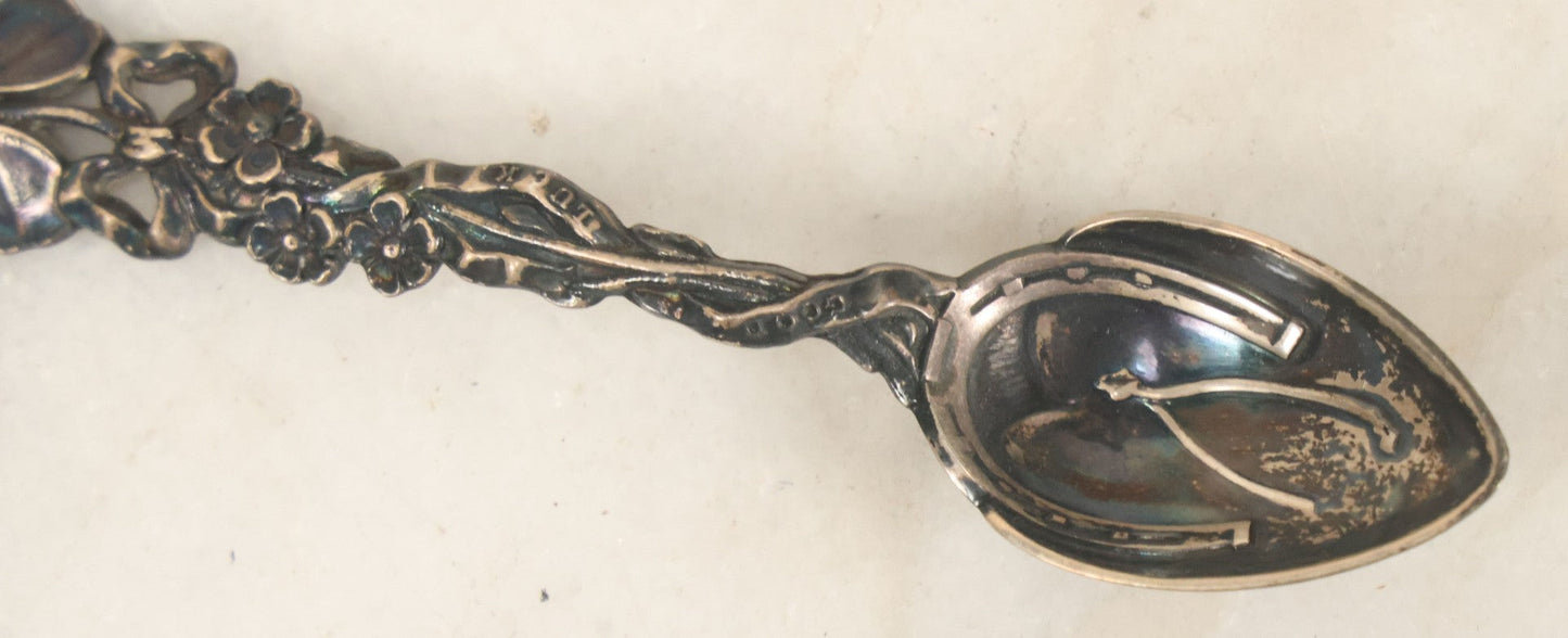 Lot 071 - Antique Sterling Silver "Good Luck" Spoon With Horseshoe And Clover Handle, Equestrian Motif
