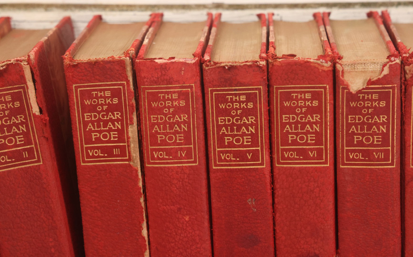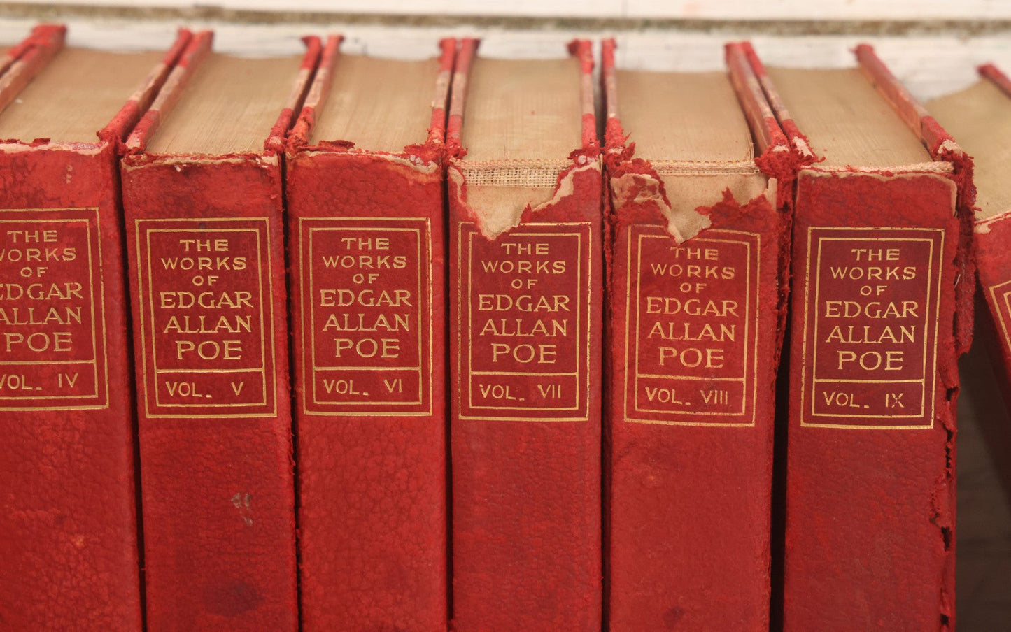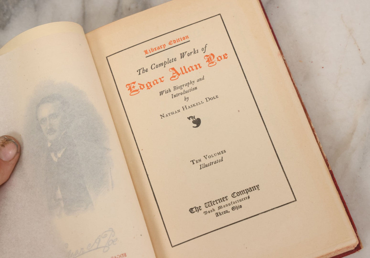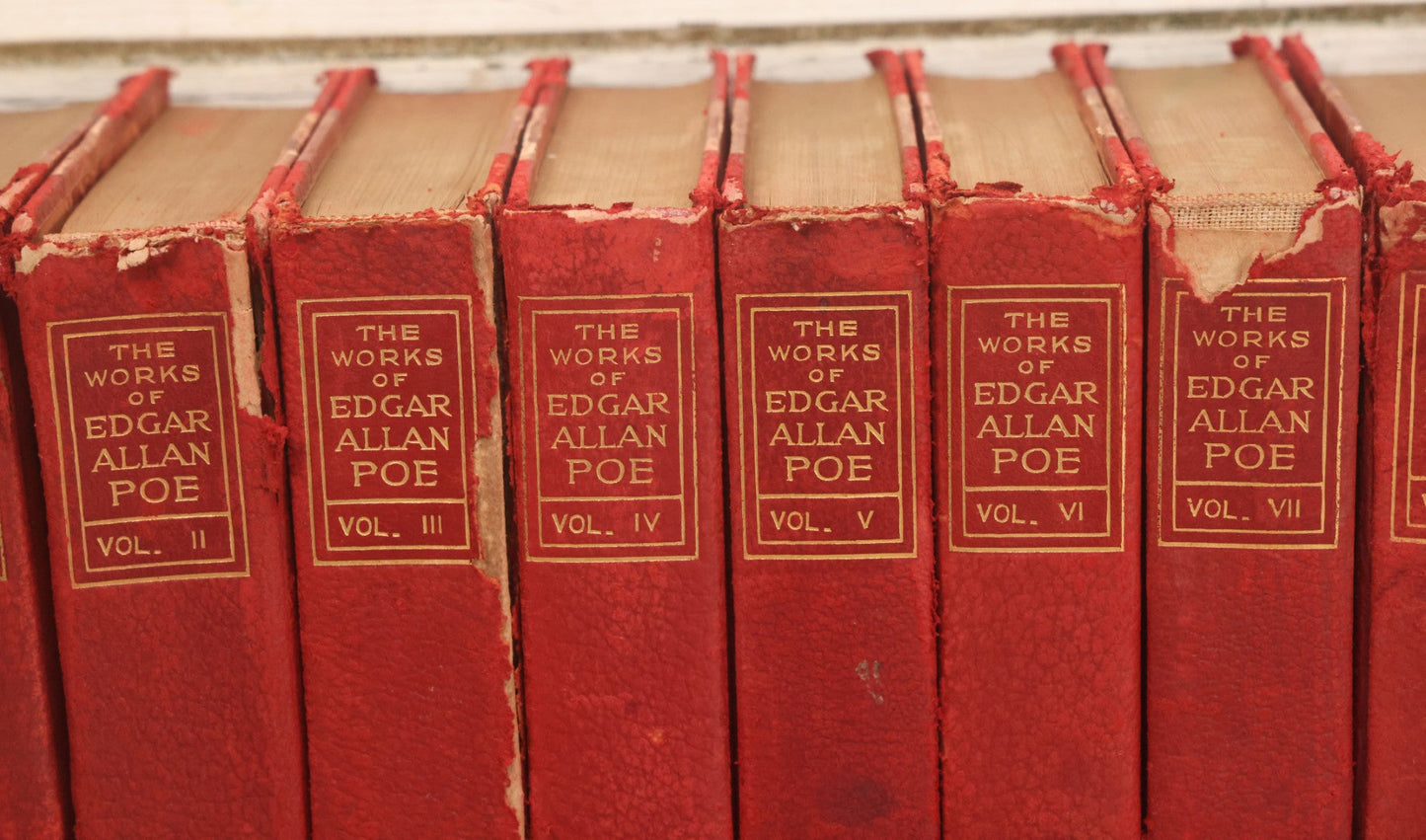 Lot 011 - Antique Ten Volume Book Set, The Complete Works Of Edgar Allan Poe, Illustrated, Copyright 1908, By The Werner Company, Akron, Ohio, Library Edition