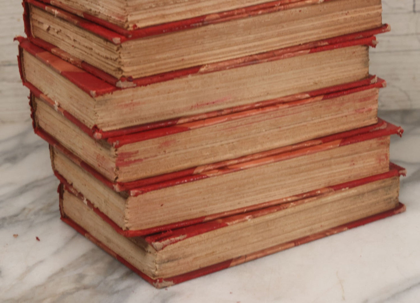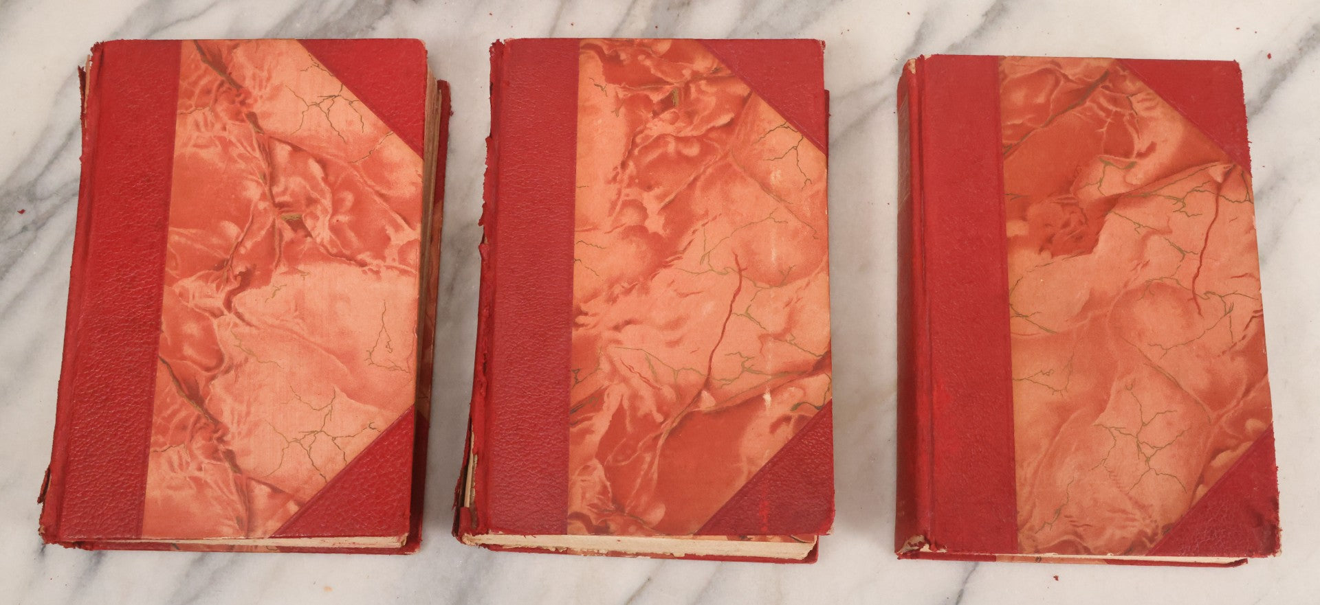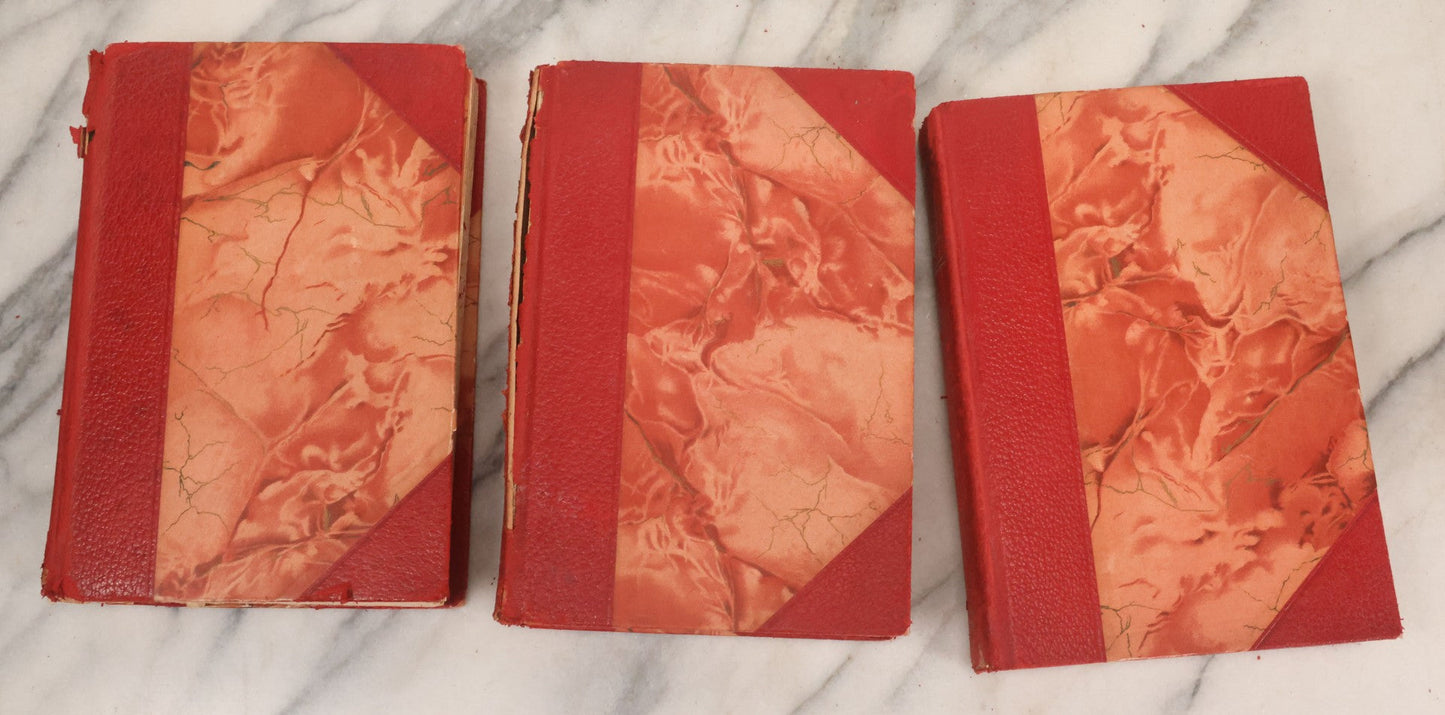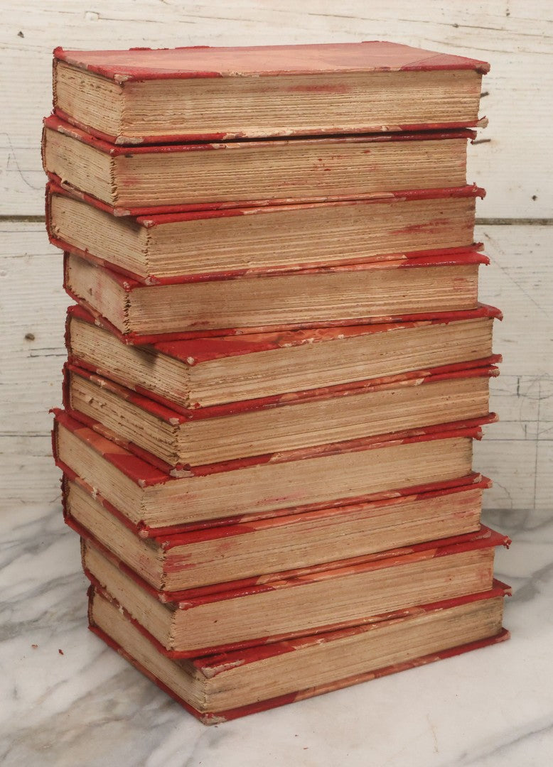 Pre-Auction Notes: Complete ten volume book set with varying degrees of wear and tear, condition issues include spine wear, binding wear, red dyes in book covers may cause staining due to age, handle with caution