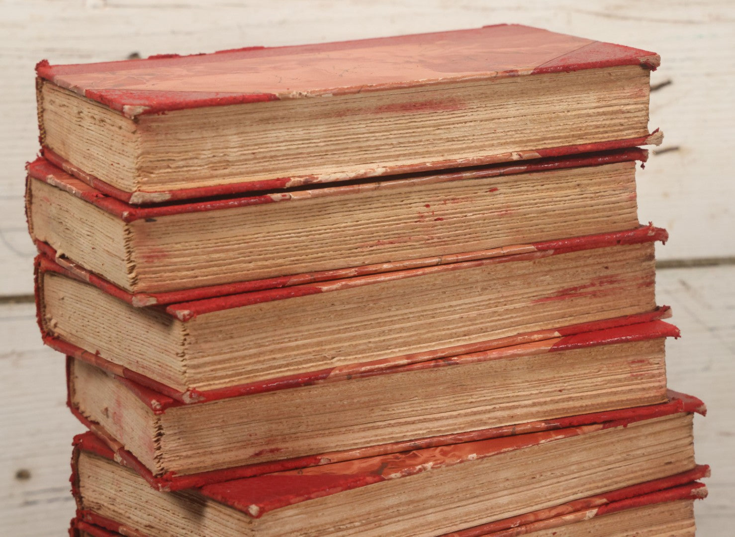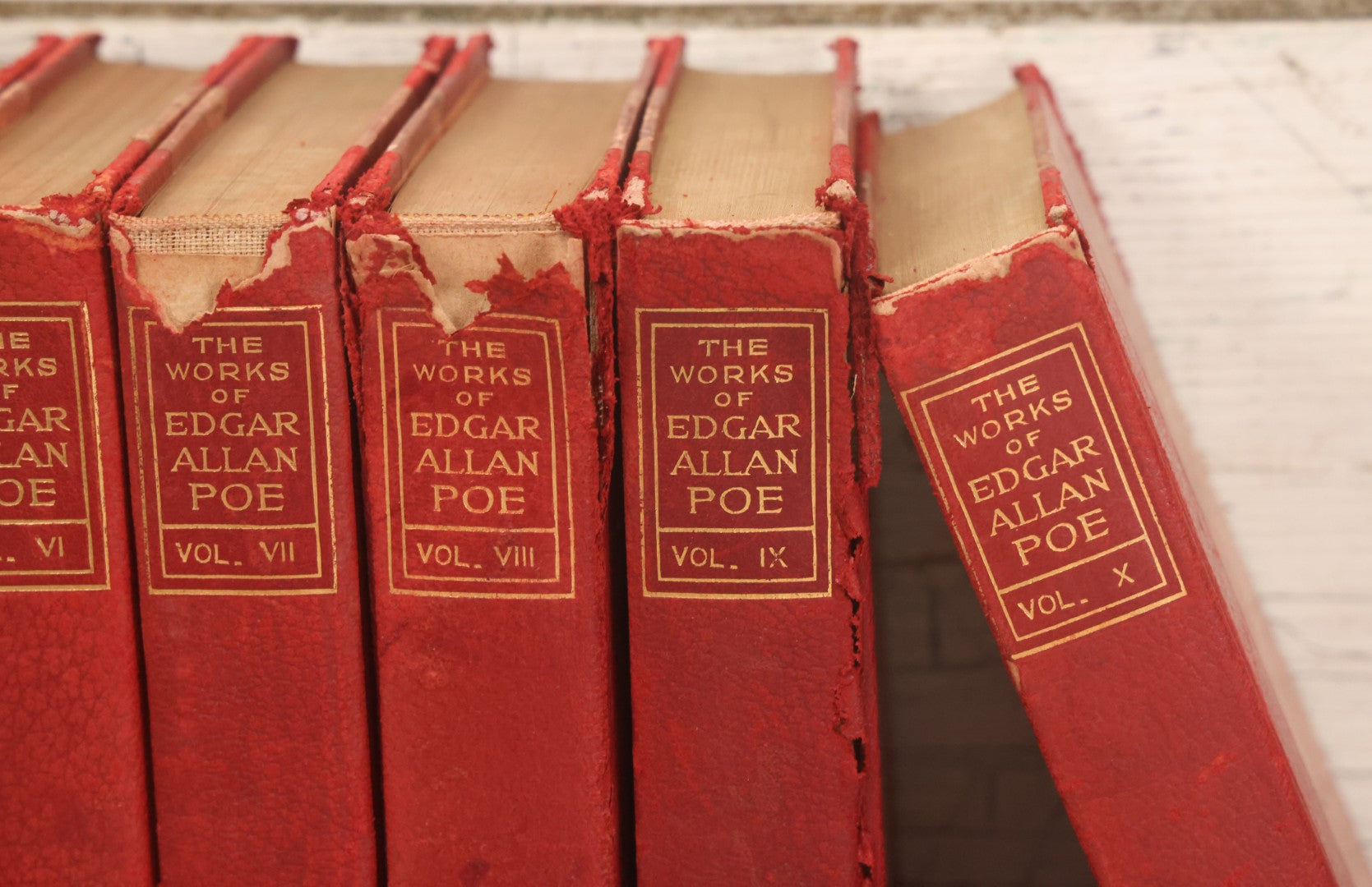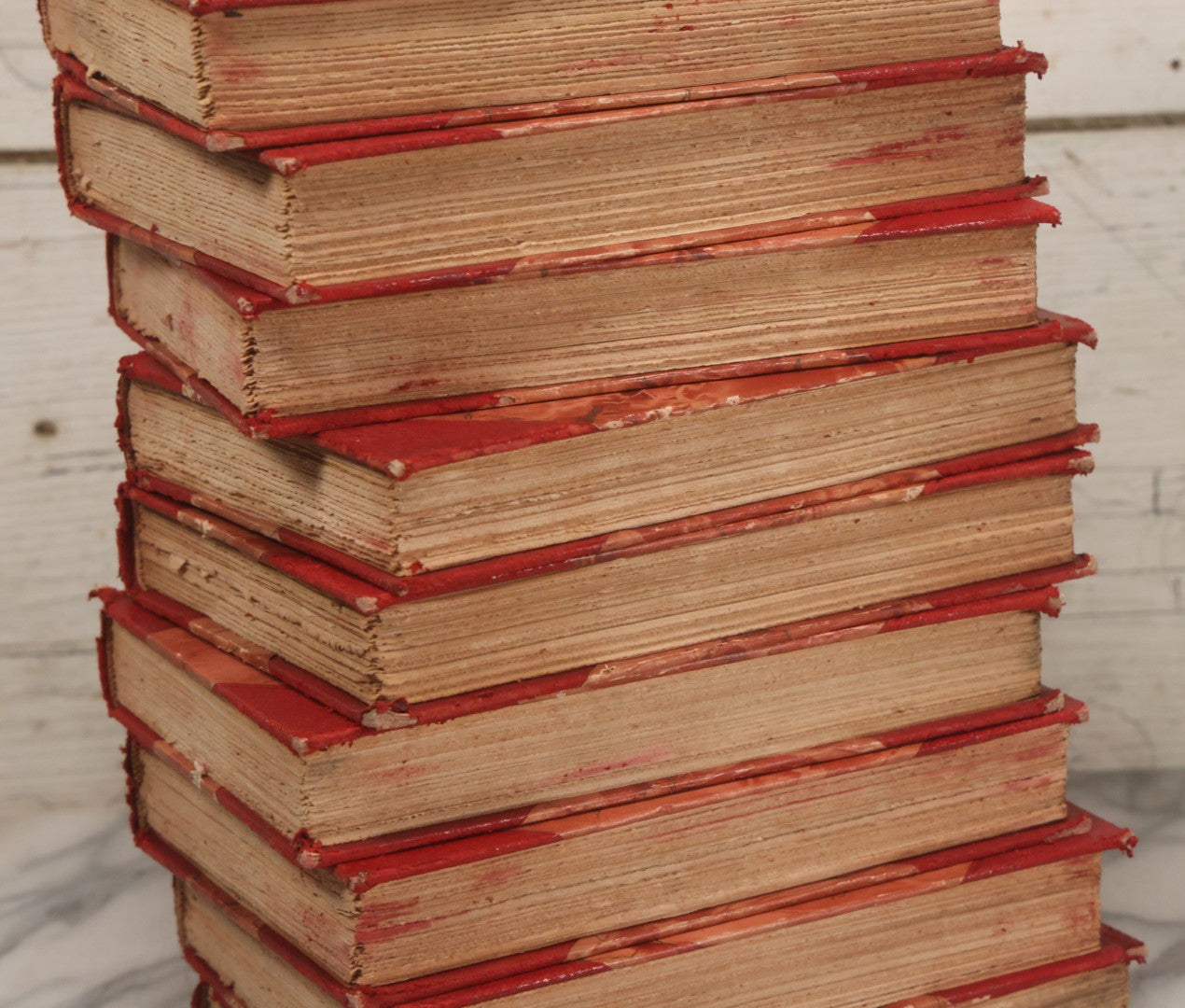 Pre-Auction Notes: Complete ten volume book set with varying degrees of wear and tear, condition issues include spine wear, binding wear, red dyes in book covers may cause staining due to age, handle with caution