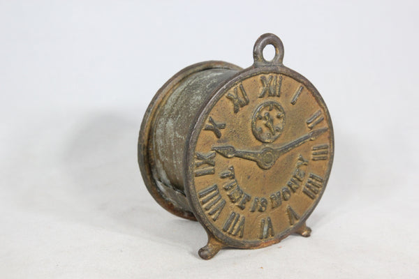 Antique "Time is Money" Clock Shaped Cast Iron Coin Bank