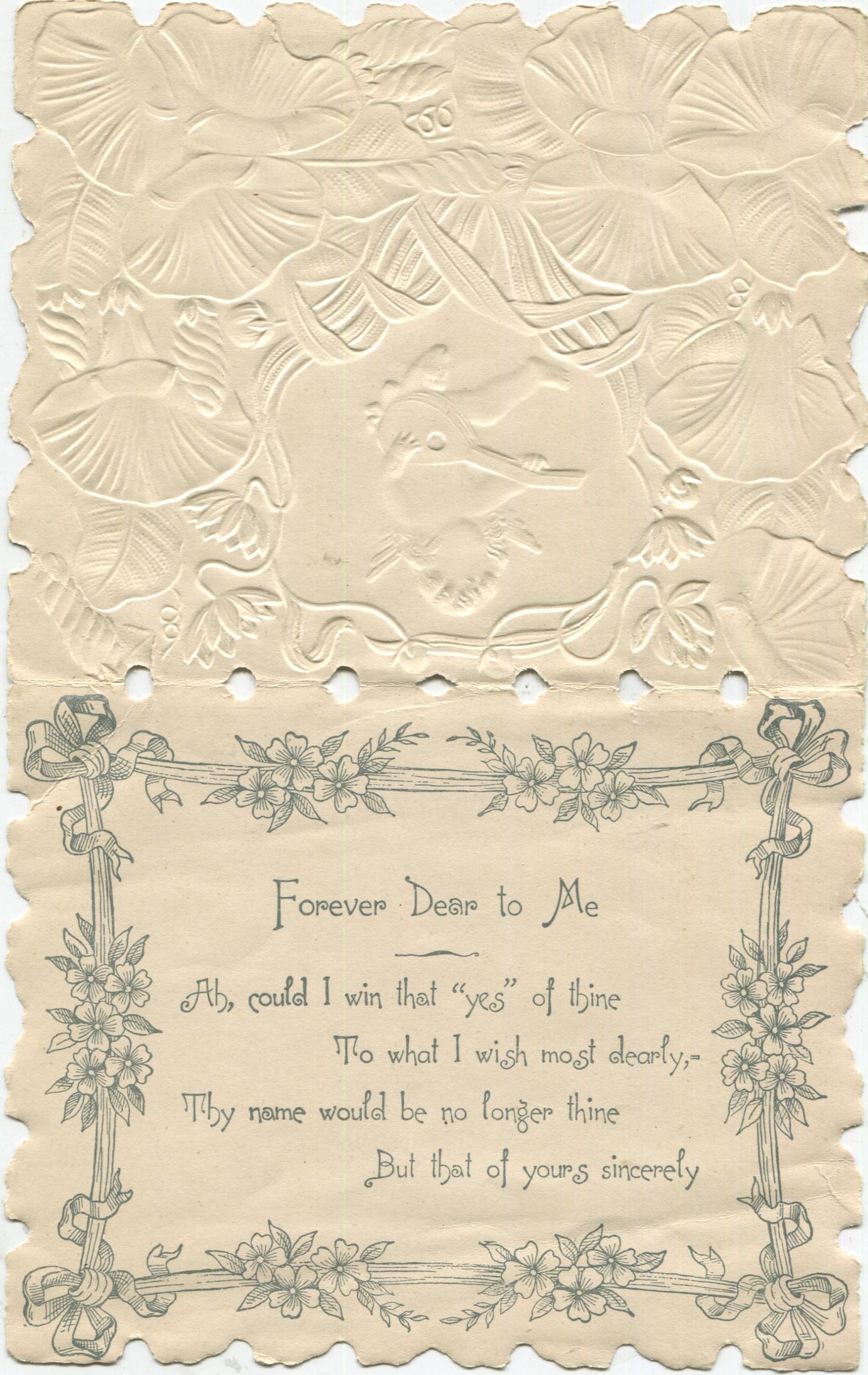 Antique Valentine Greeting Card, Dated 1907 - "Forever Dear to Me" - 5" x 4"