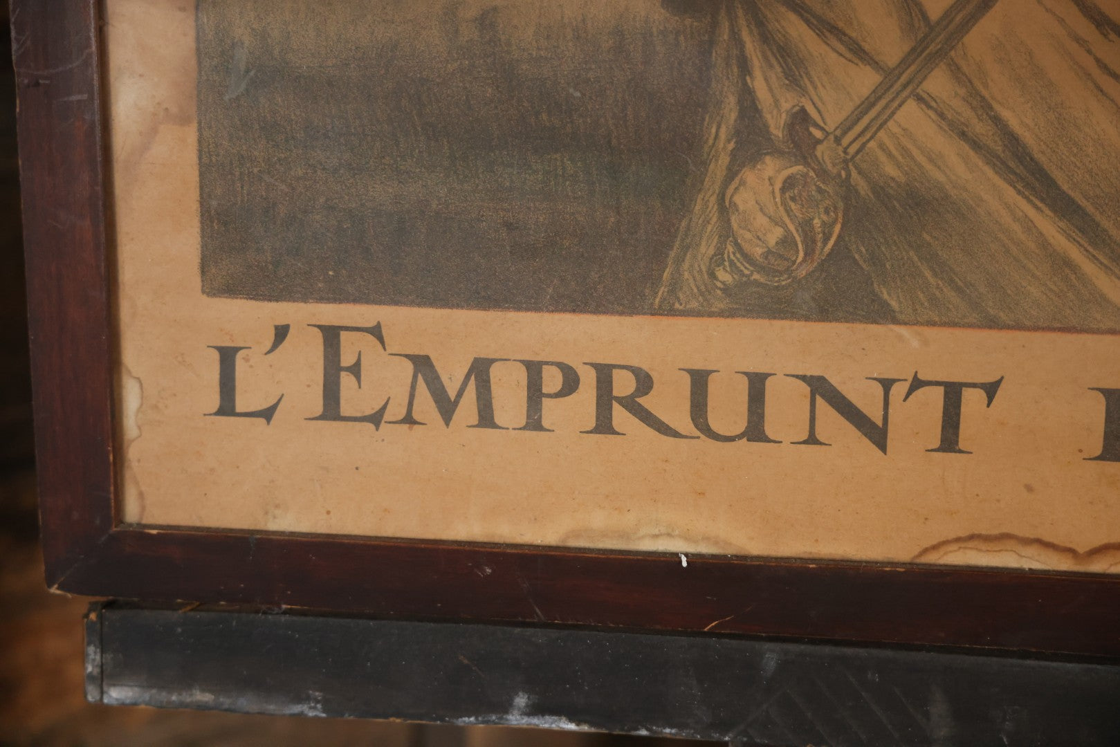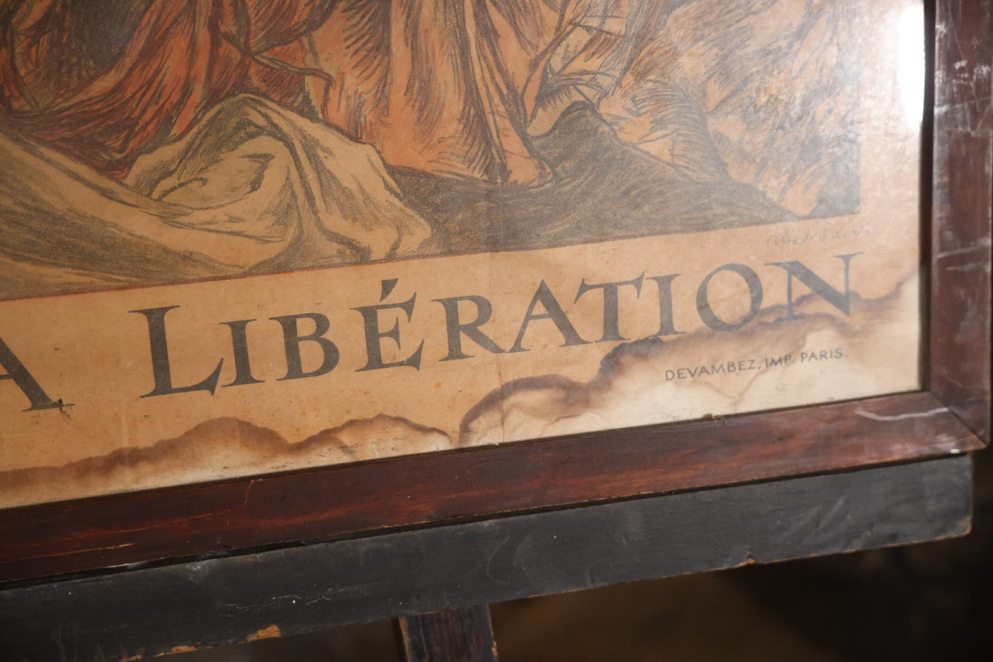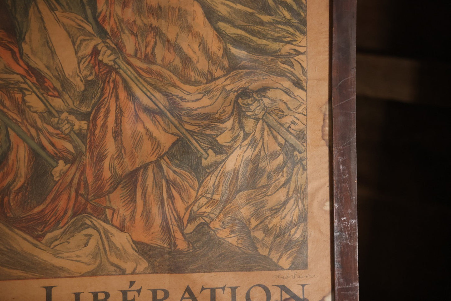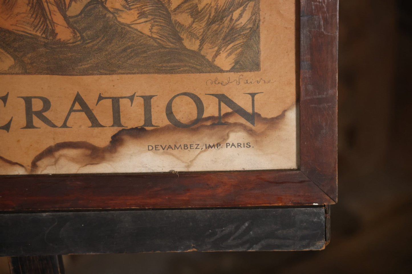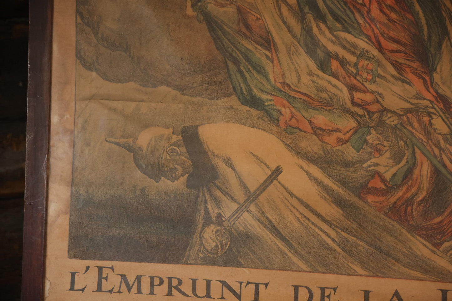 Antique World War I French Propaganda Lithograph Poster, "L'Emprunt De La Liberation" (The Liberation Loan), Art By Abel Faivre, In Frame, Note Heavy Wear And Tear, 45-1/2" x 33-1/4"