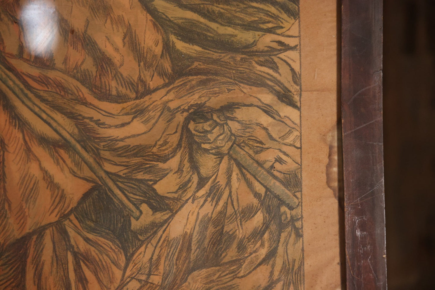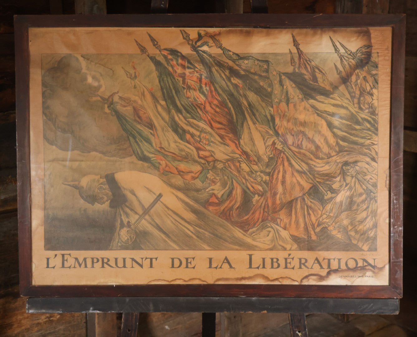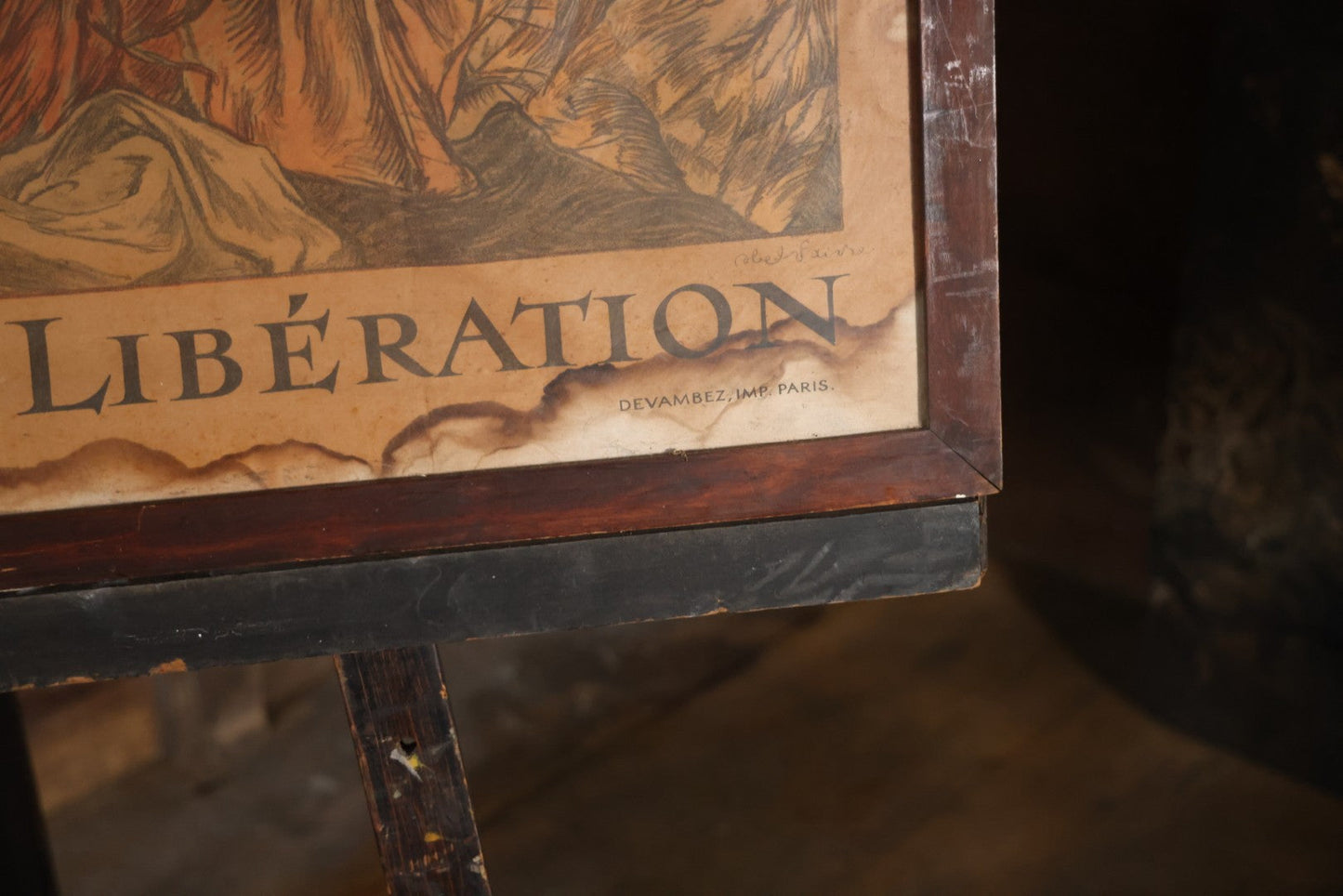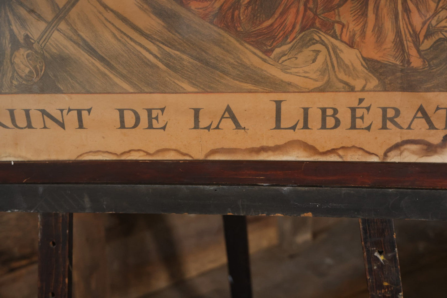 Antique World War I French Propaganda Lithograph Poster, "L'Emprunt De La Liberation" (The Liberation Loan), Art By Abel Faivre, In Frame, Note Heavy Wear And Tear, 45-1/2" x 33-1/4"