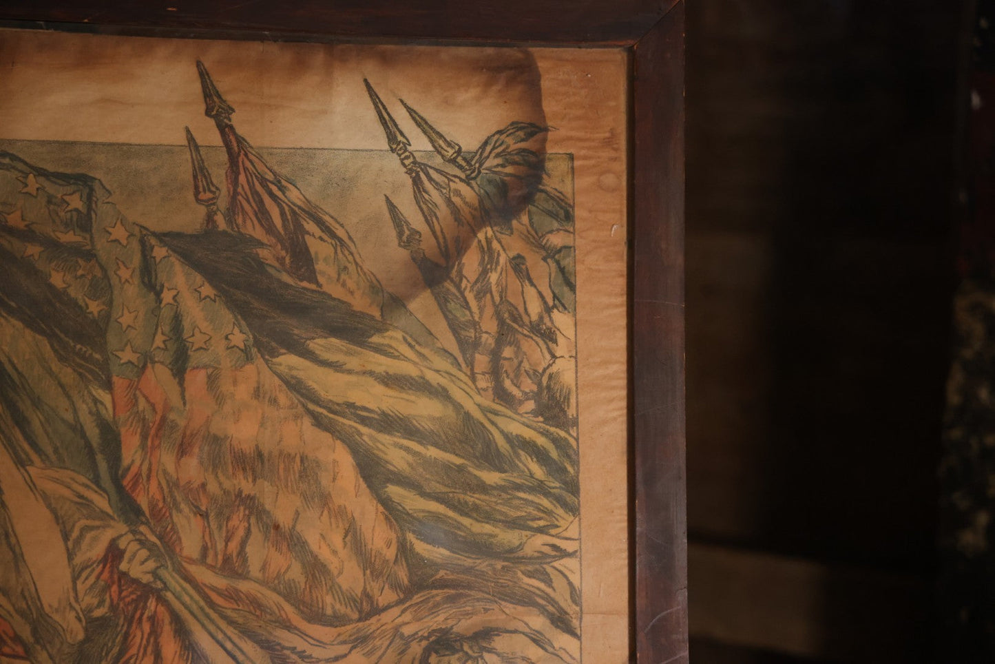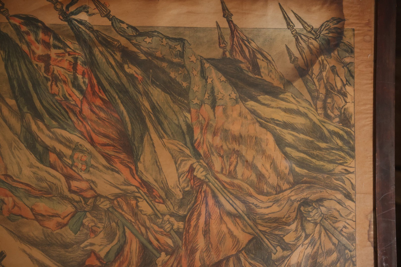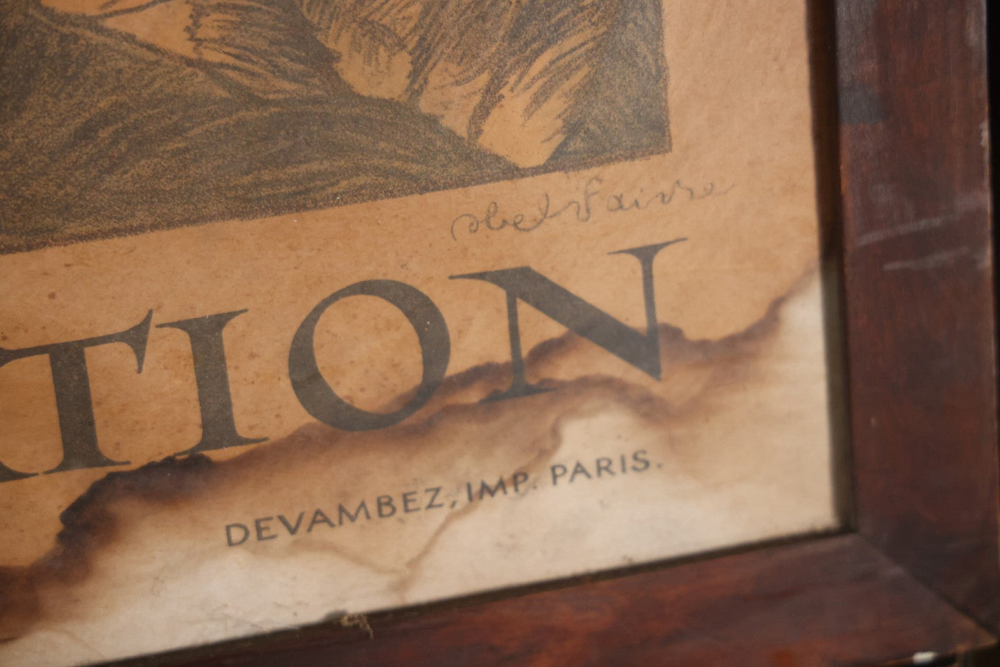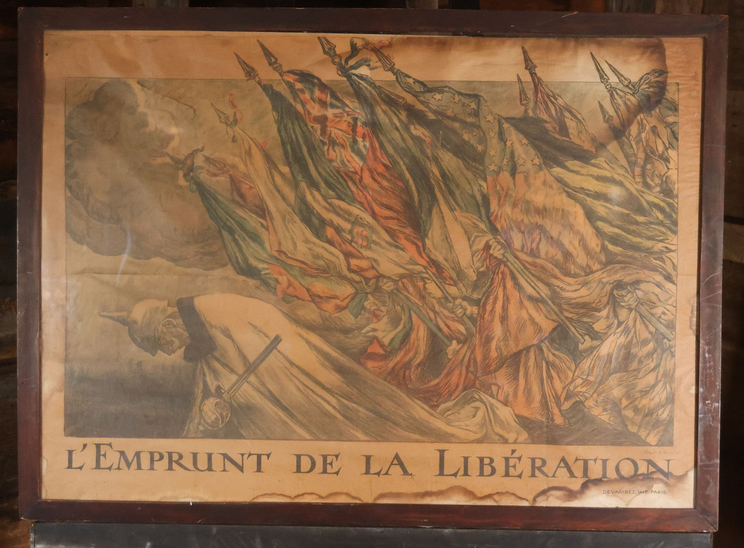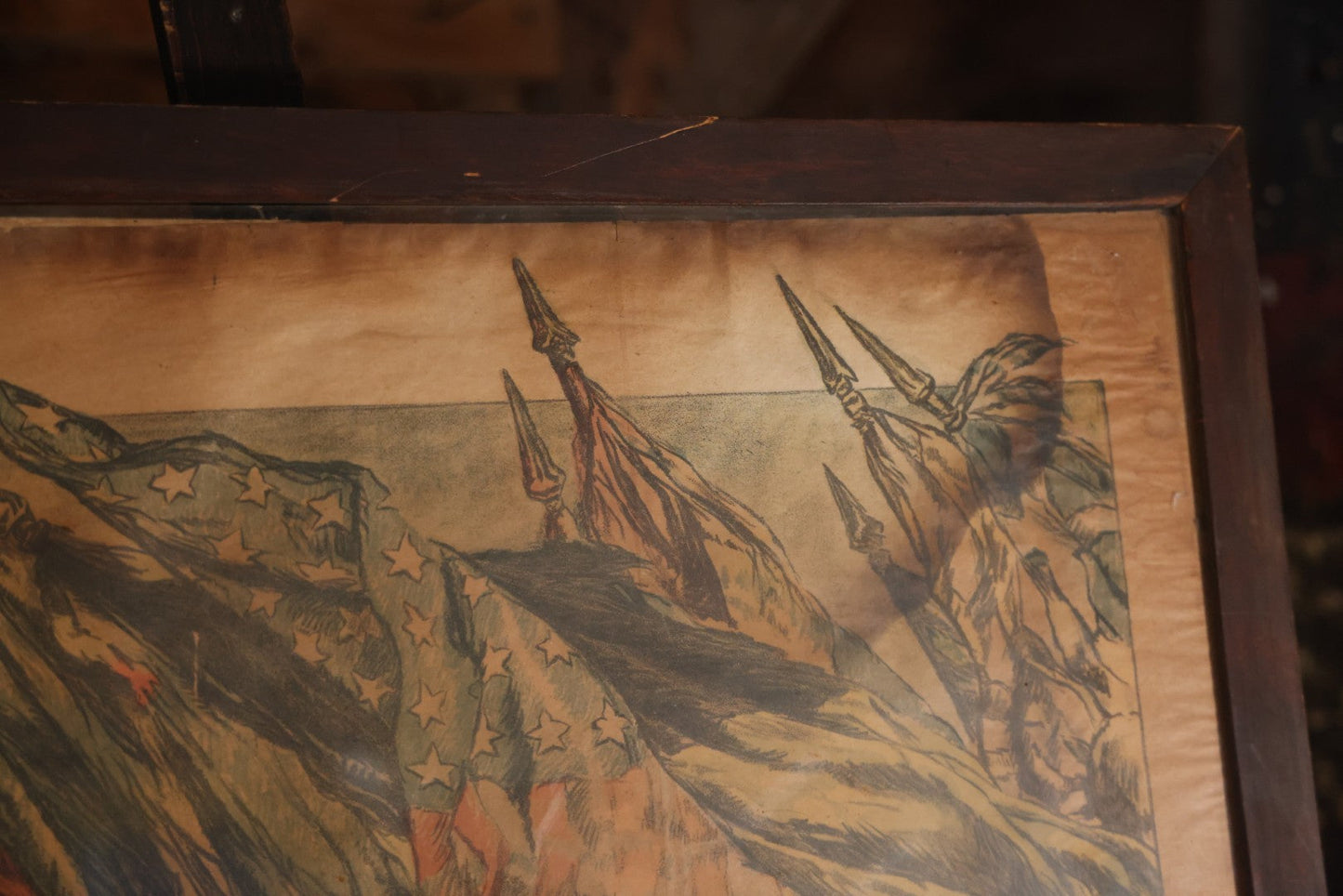 Antique World War I French Propaganda Lithograph Poster, "L'Emprunt De La Liberation" (The Liberation Loan), Art By Abel Faivre, In Frame, Note Heavy Wear And Tear, 45-1/2" x 33-1/4"