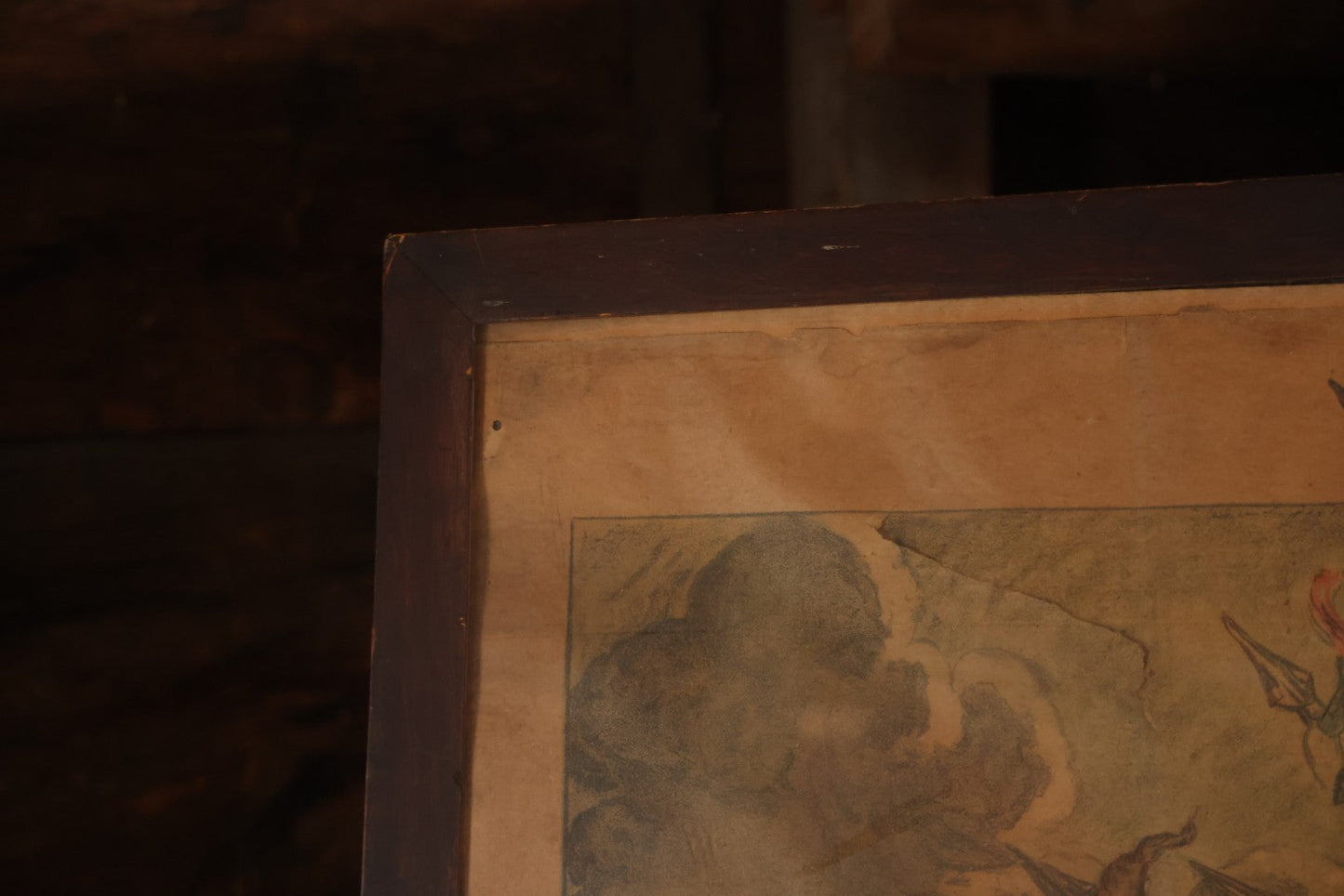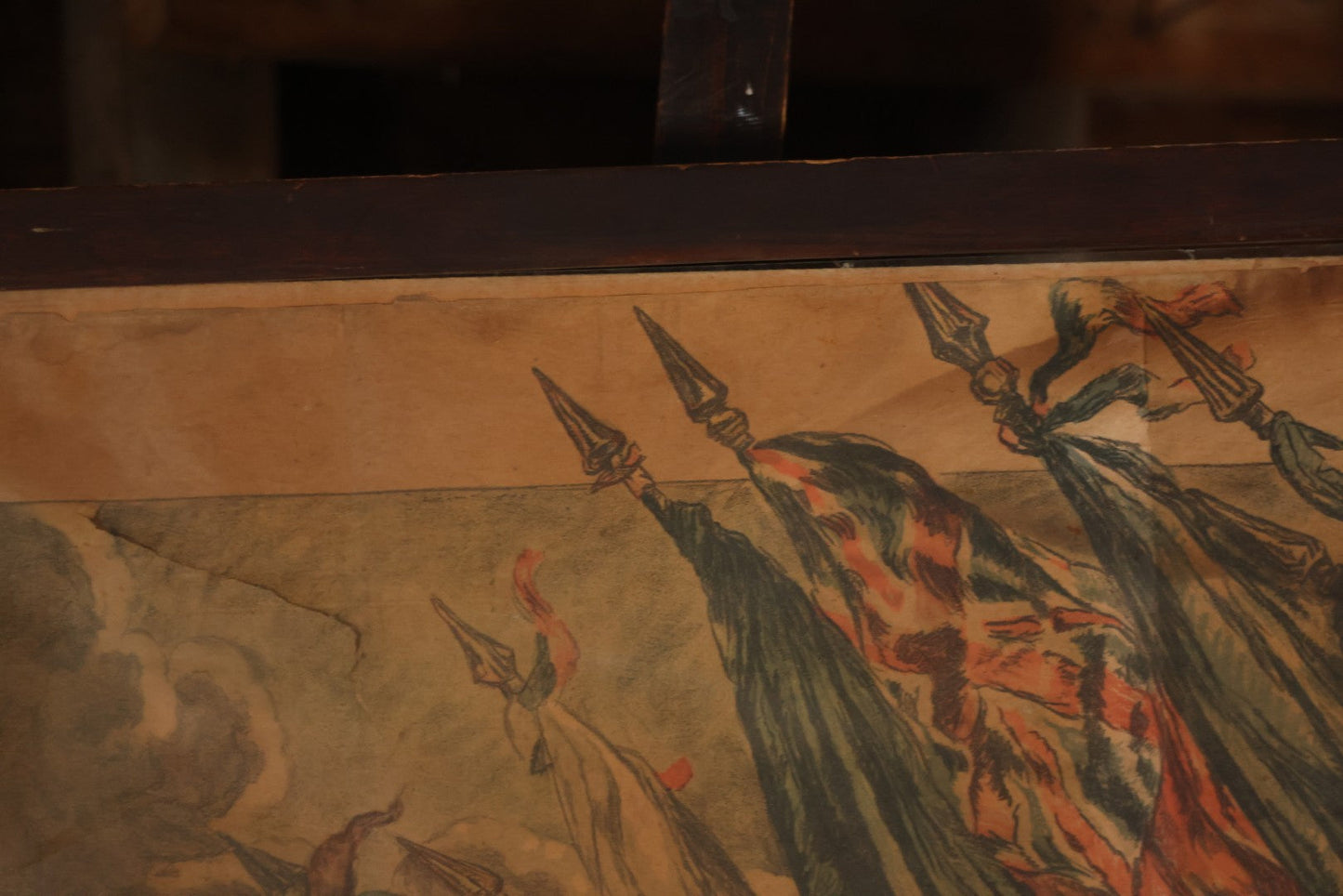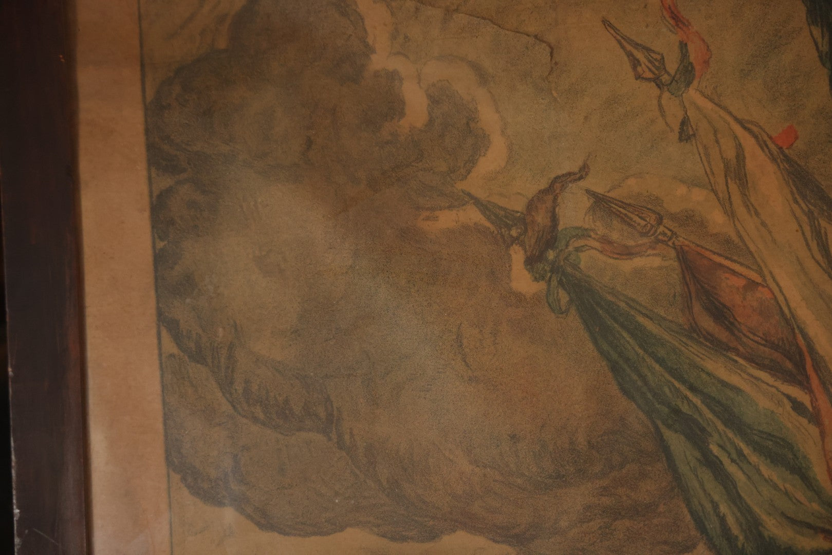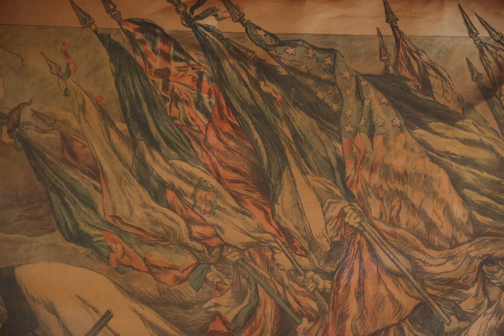 Antique World War I French Propaganda Lithograph Poster, "L'Emprunt De La Liberation" (The Liberation Loan), Art By Abel Faivre, In Frame, Note Heavy Wear And Tear, 45-1/2" x 33-1/4"